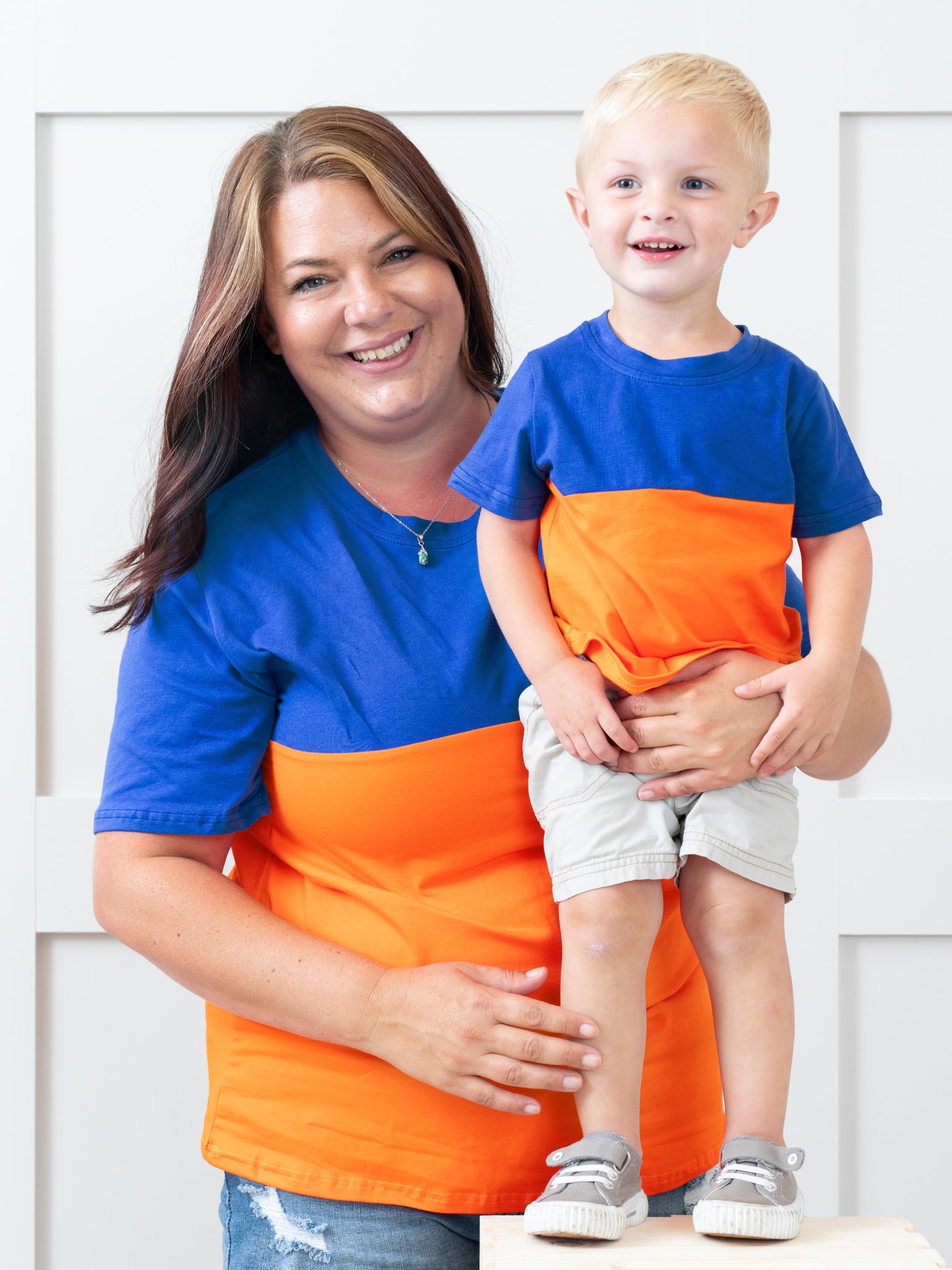 Unisex Blue & Orange Color Block Shirt