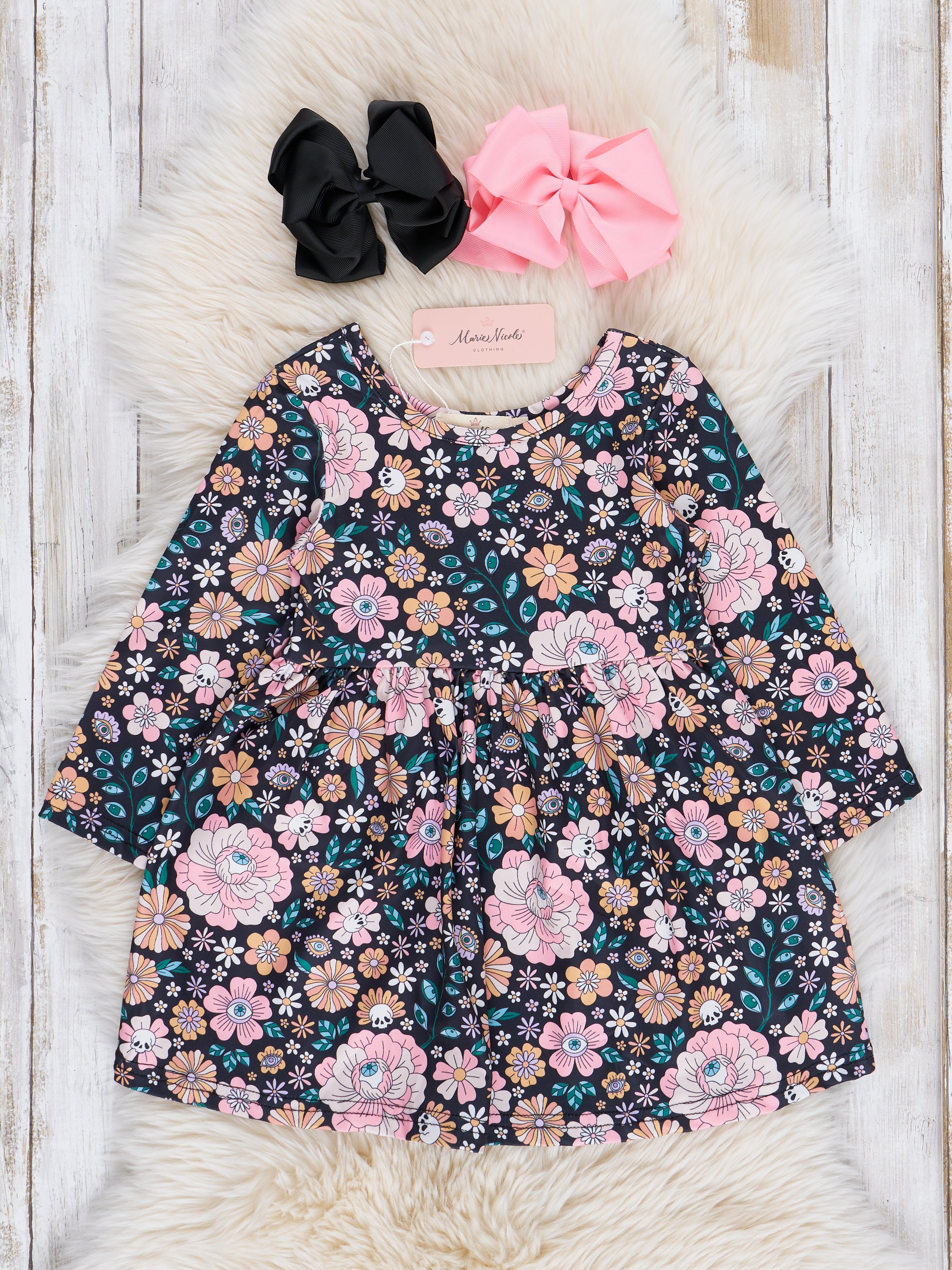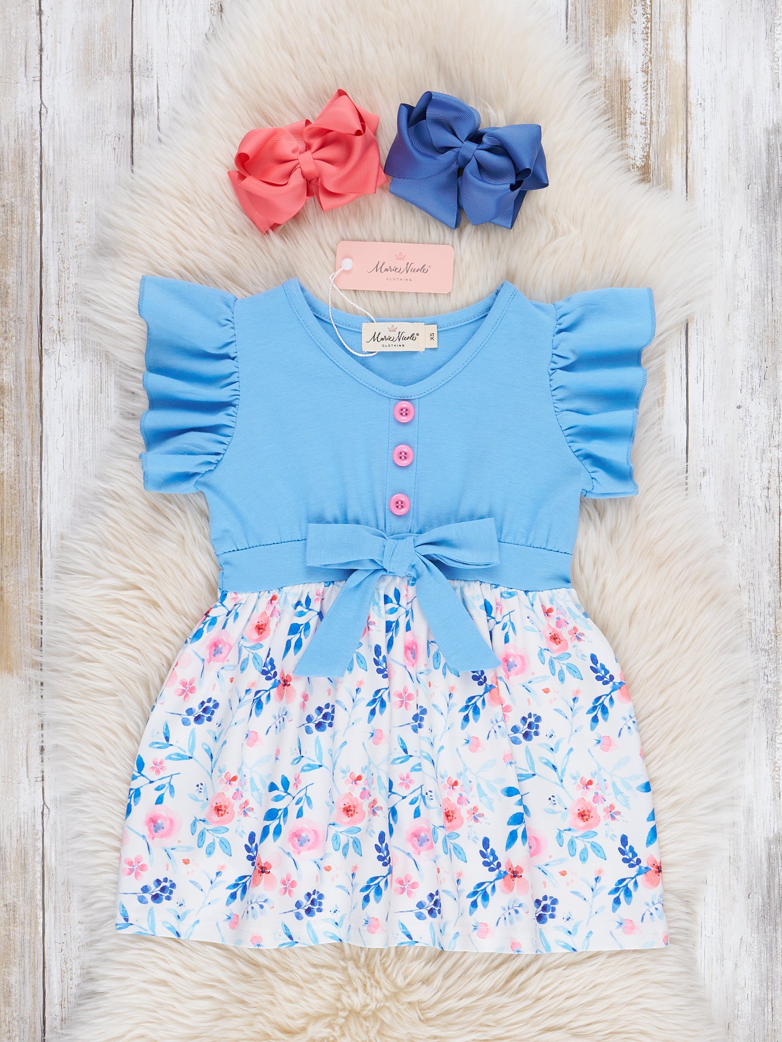Sweet Embroidered Pencil Bows Ruffle Dress