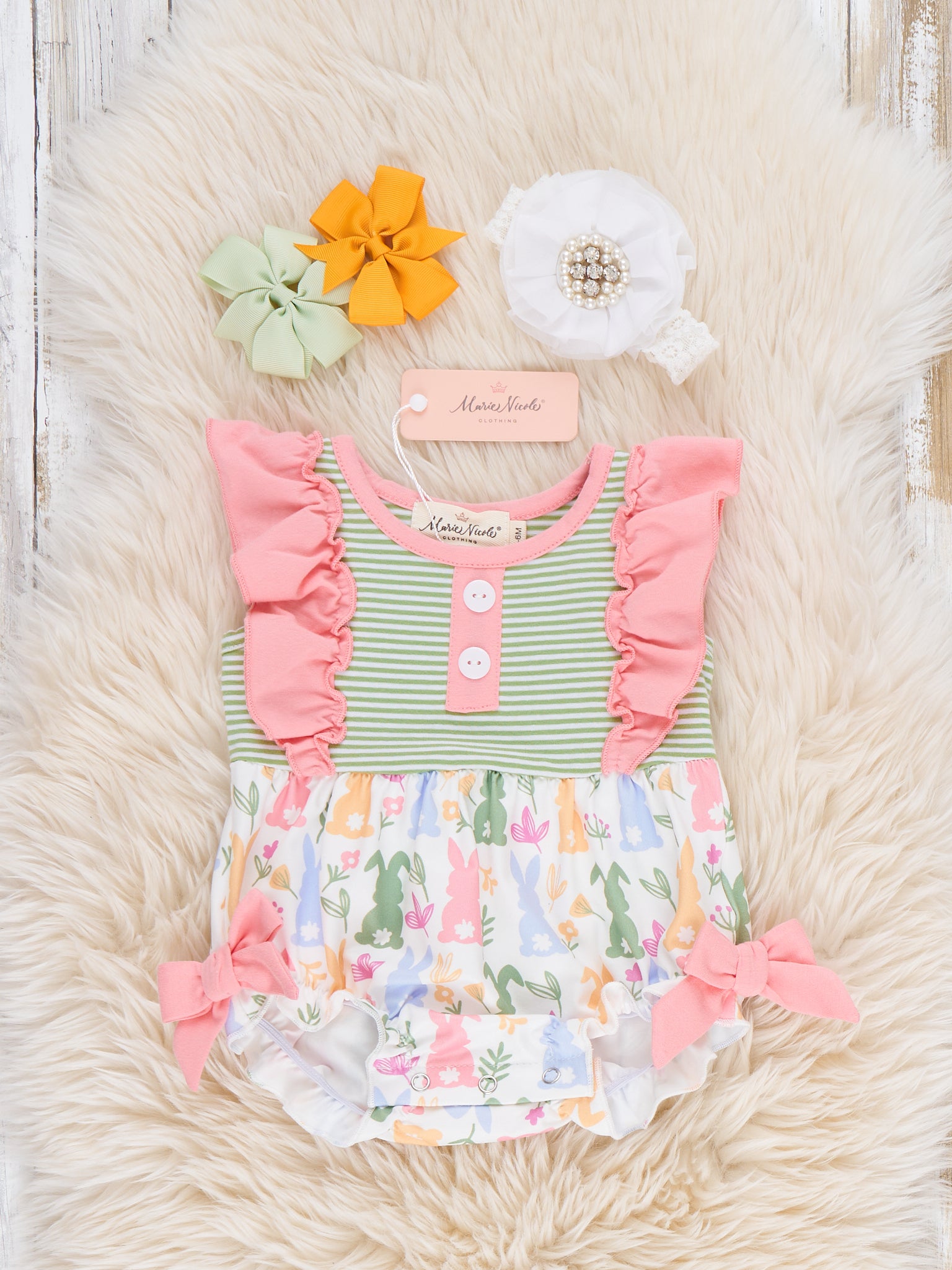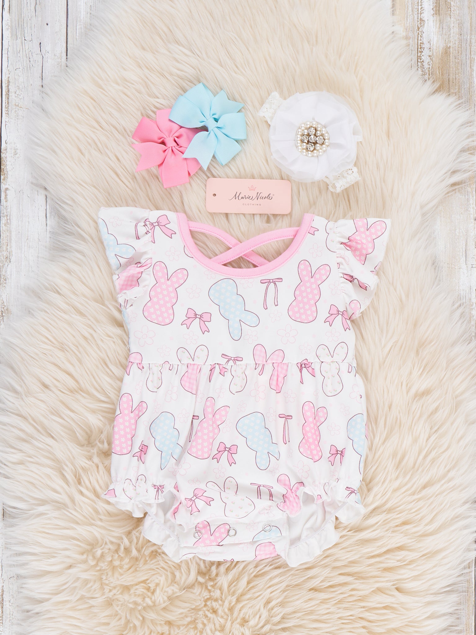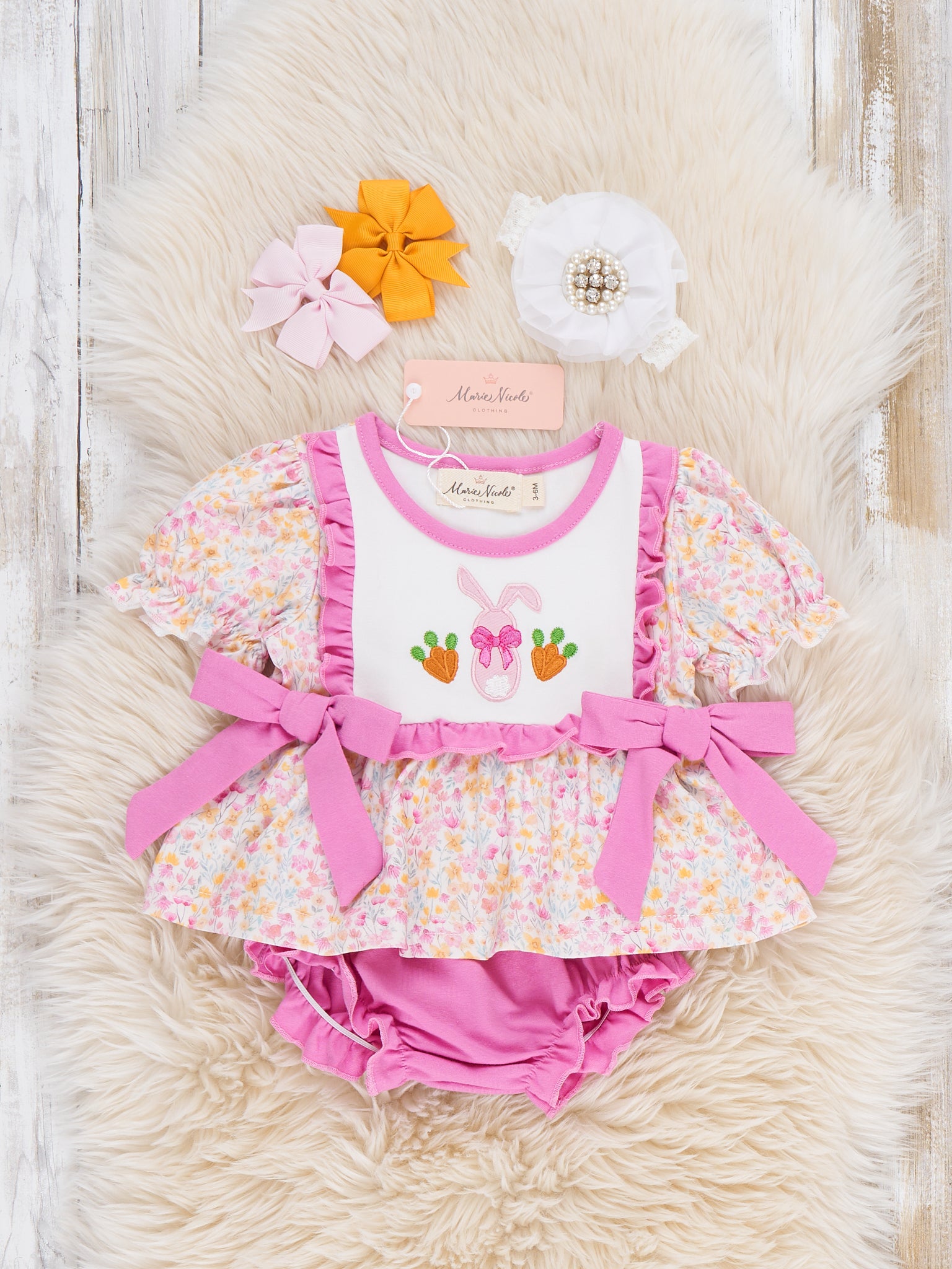 Bow Bunny Blossom Embroidered Ruffle Outfit