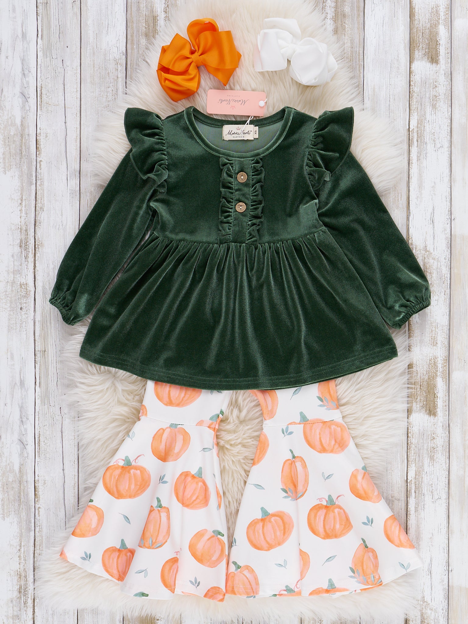 Chilly Pumpkin Picnic Embroidered Bell Bottom Ruffle Outfit