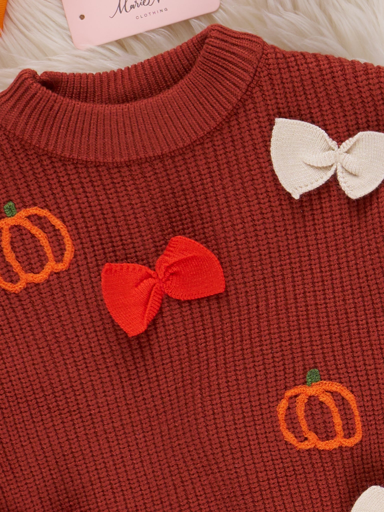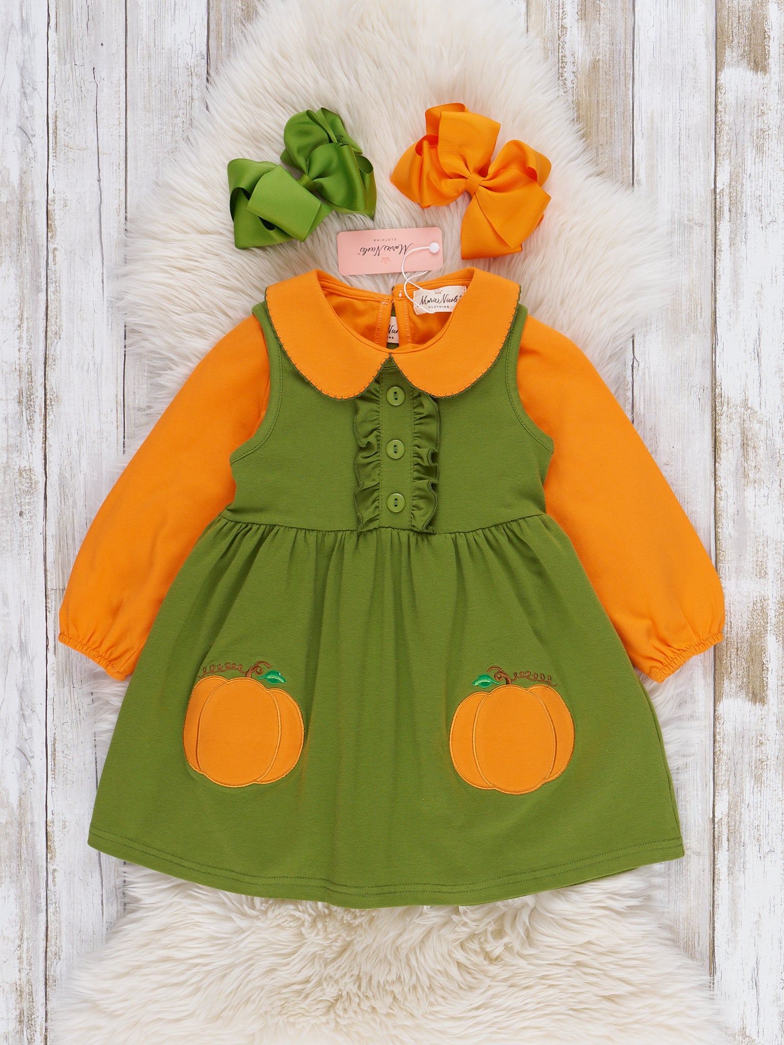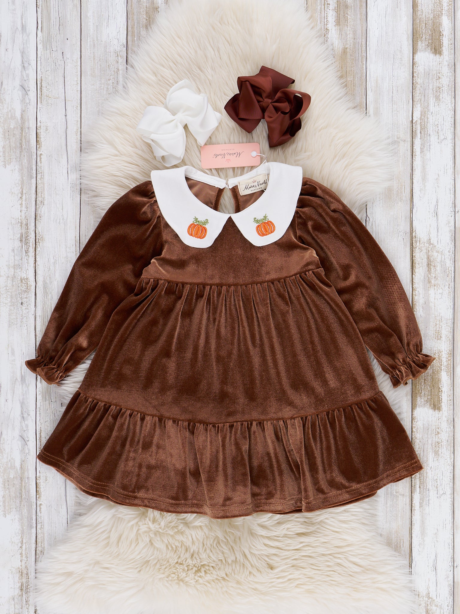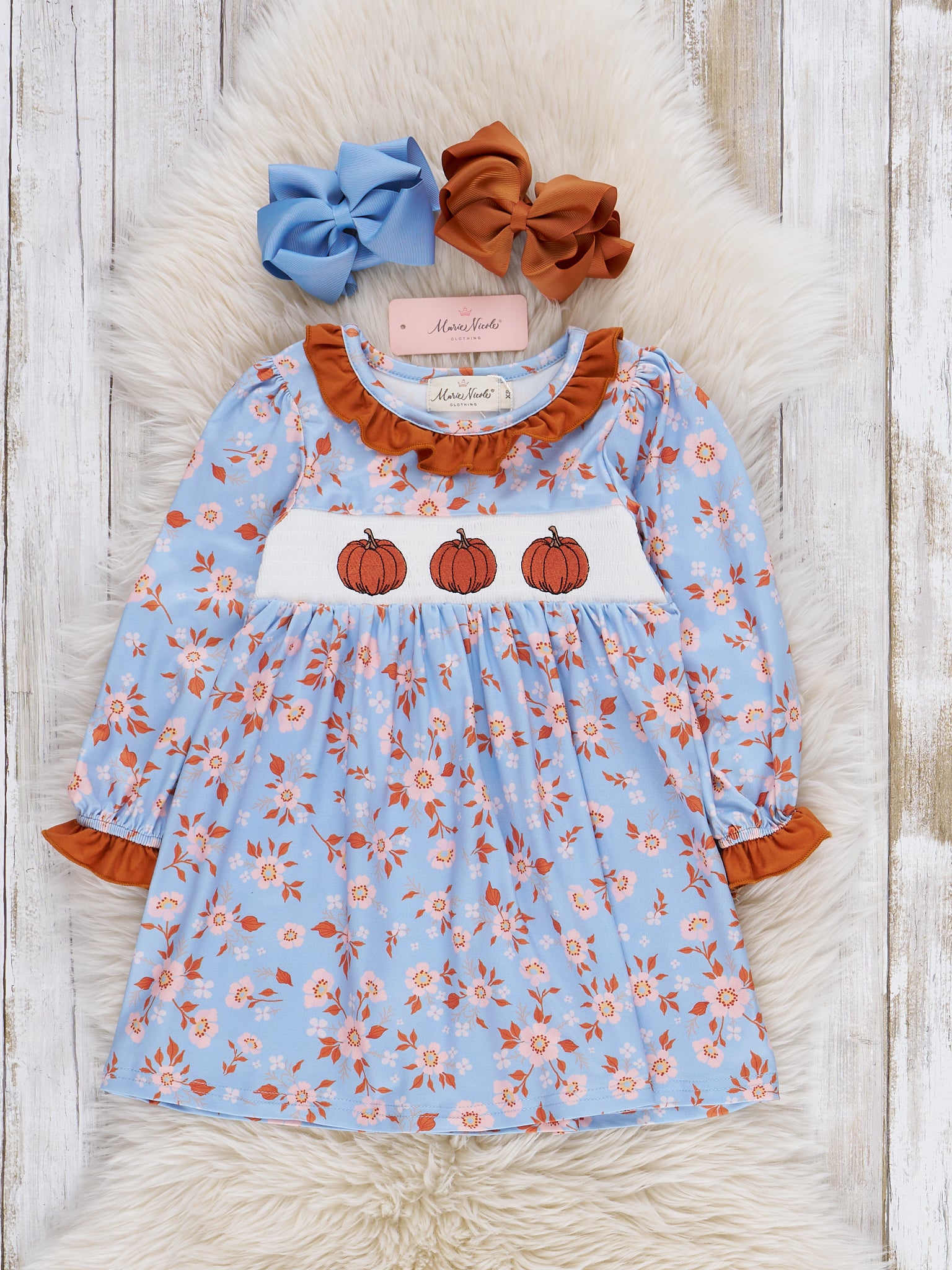Pumpkin Botanicals Embroidered Bow Ruffle Dress