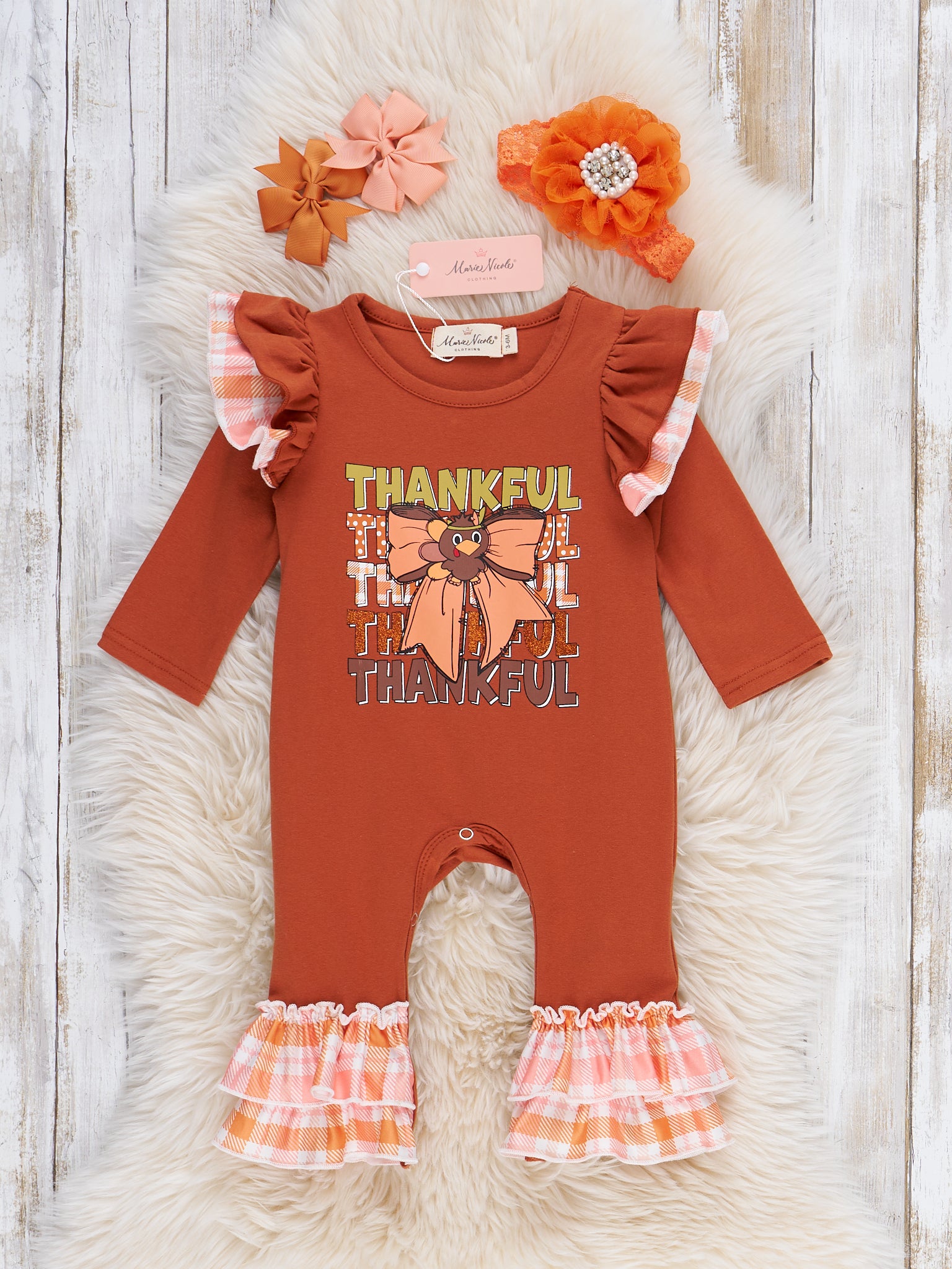 Picnic in the Pumpkin Patch Embroidered Plaid Ruffle Romper