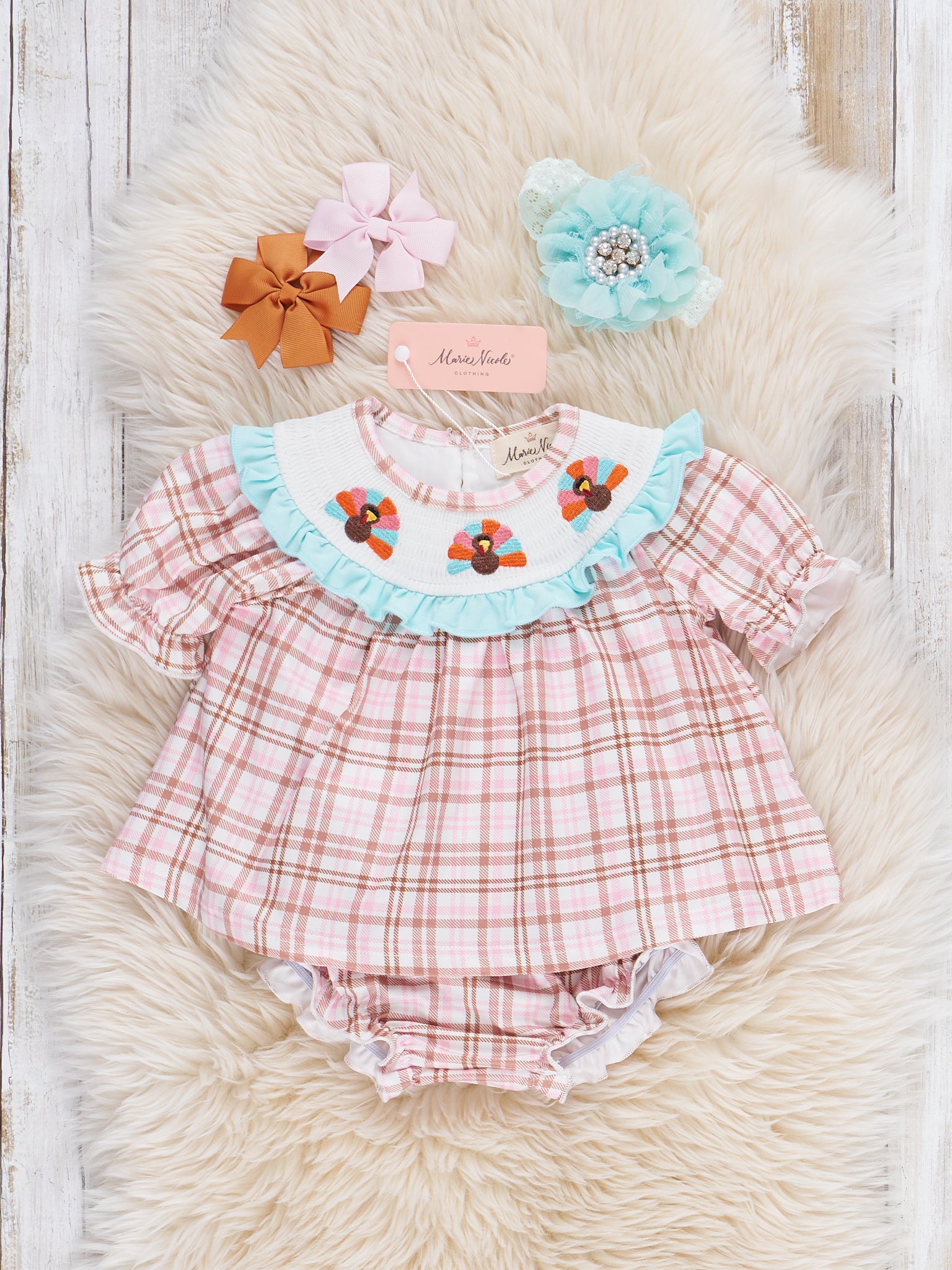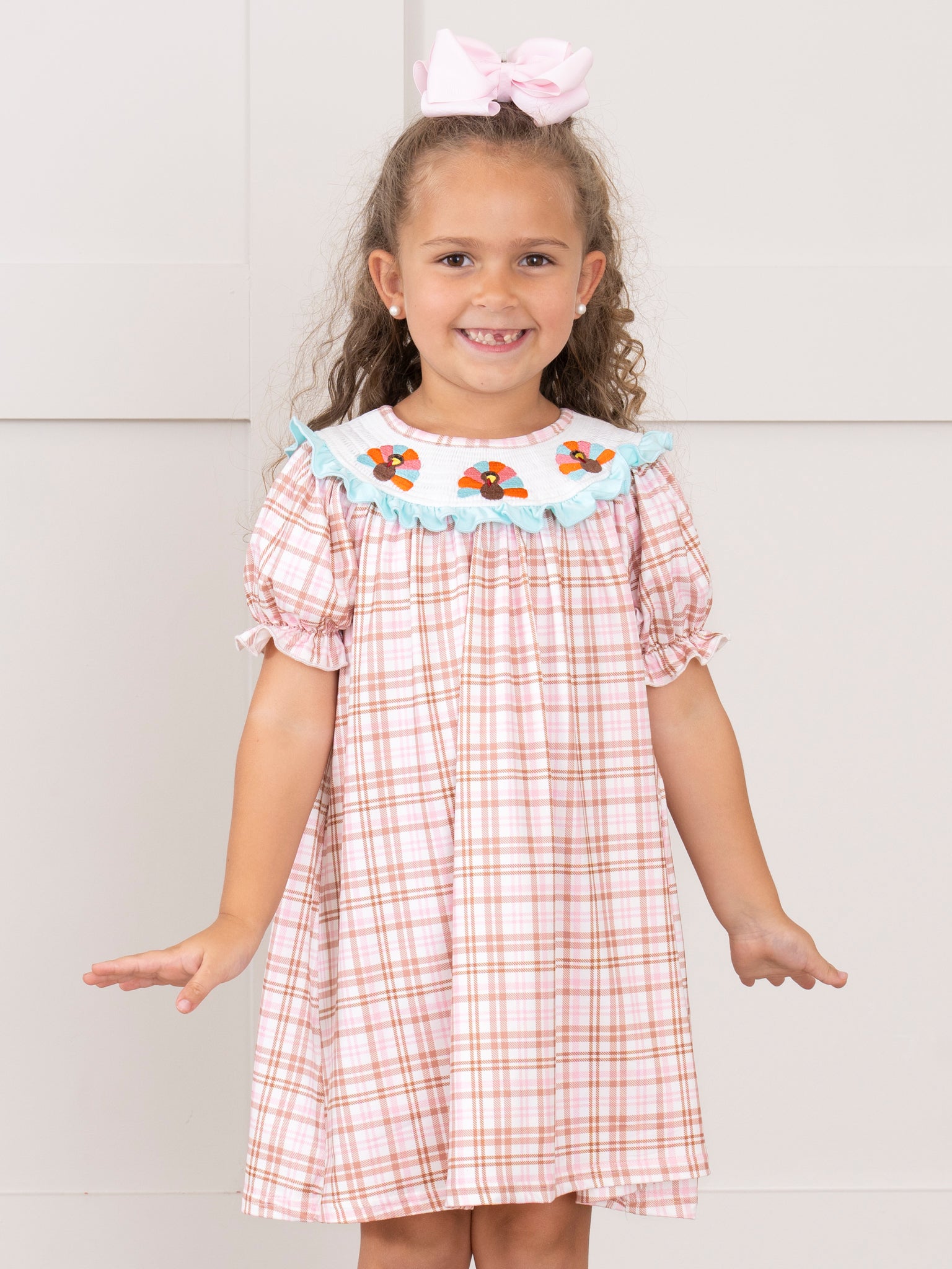 Picnic in the Pumpkin Patch Embroidered Plaid Ruffle Dress