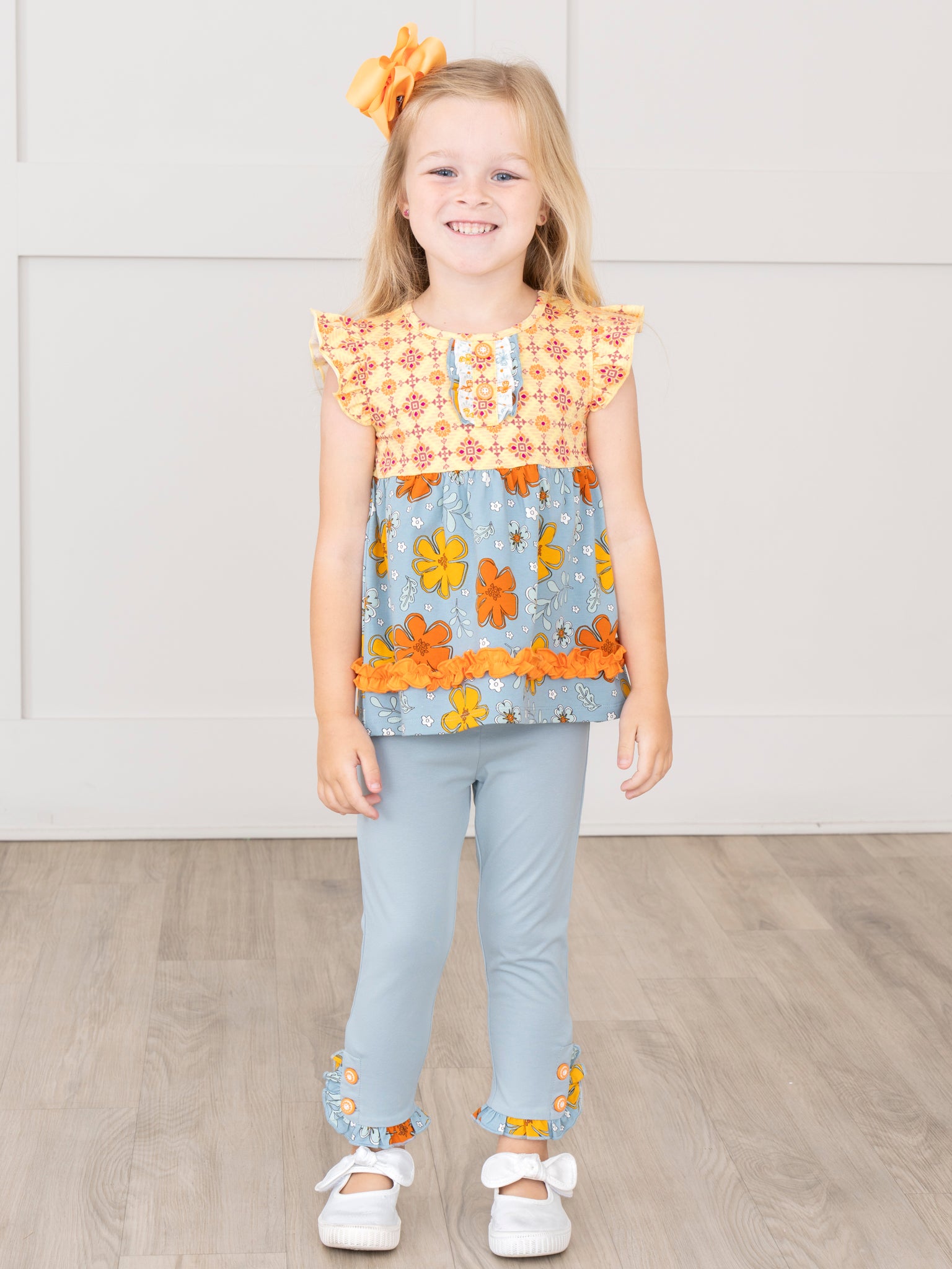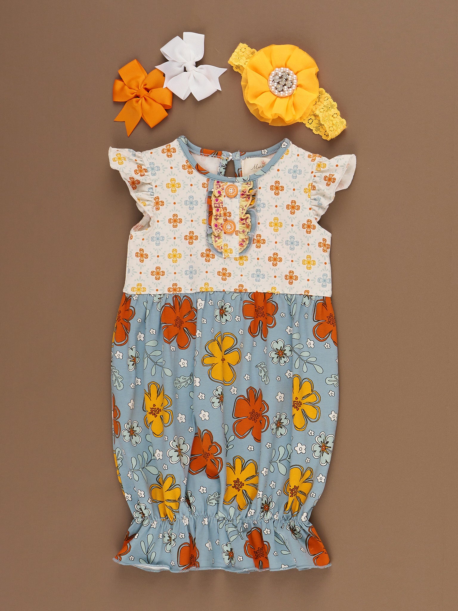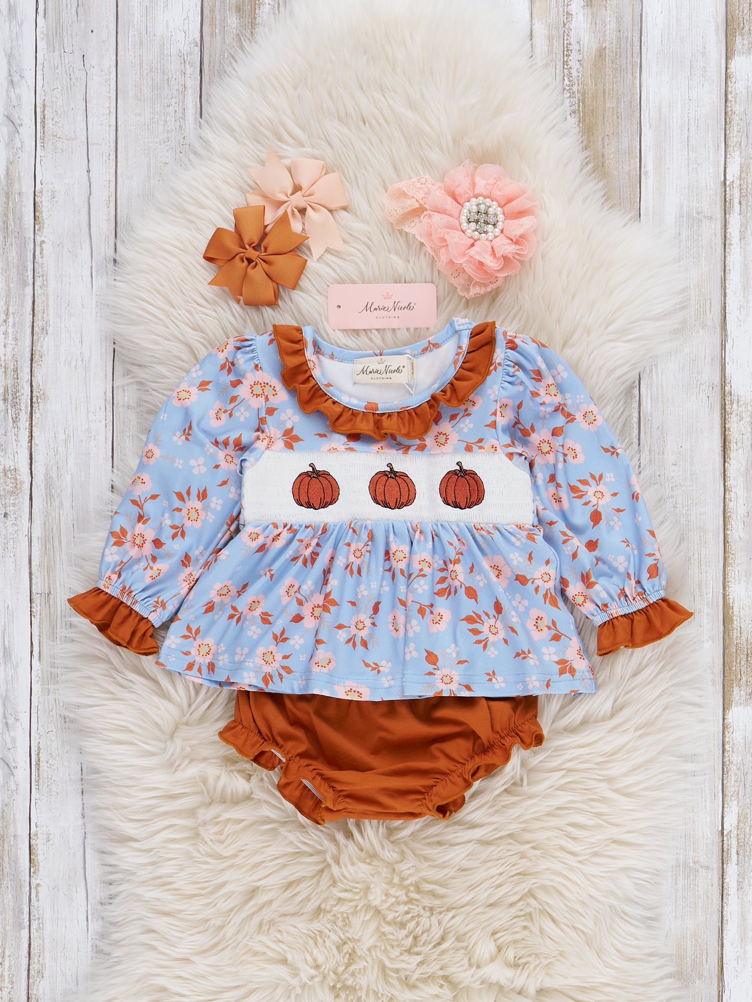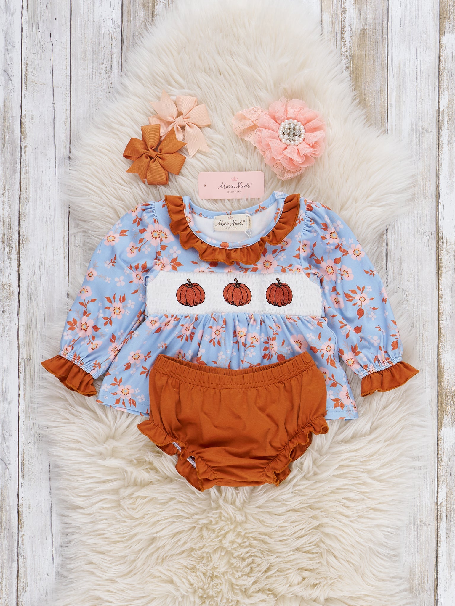 Pumpkin Floral Breeze Smocked Ruffle Bloomers Outfit