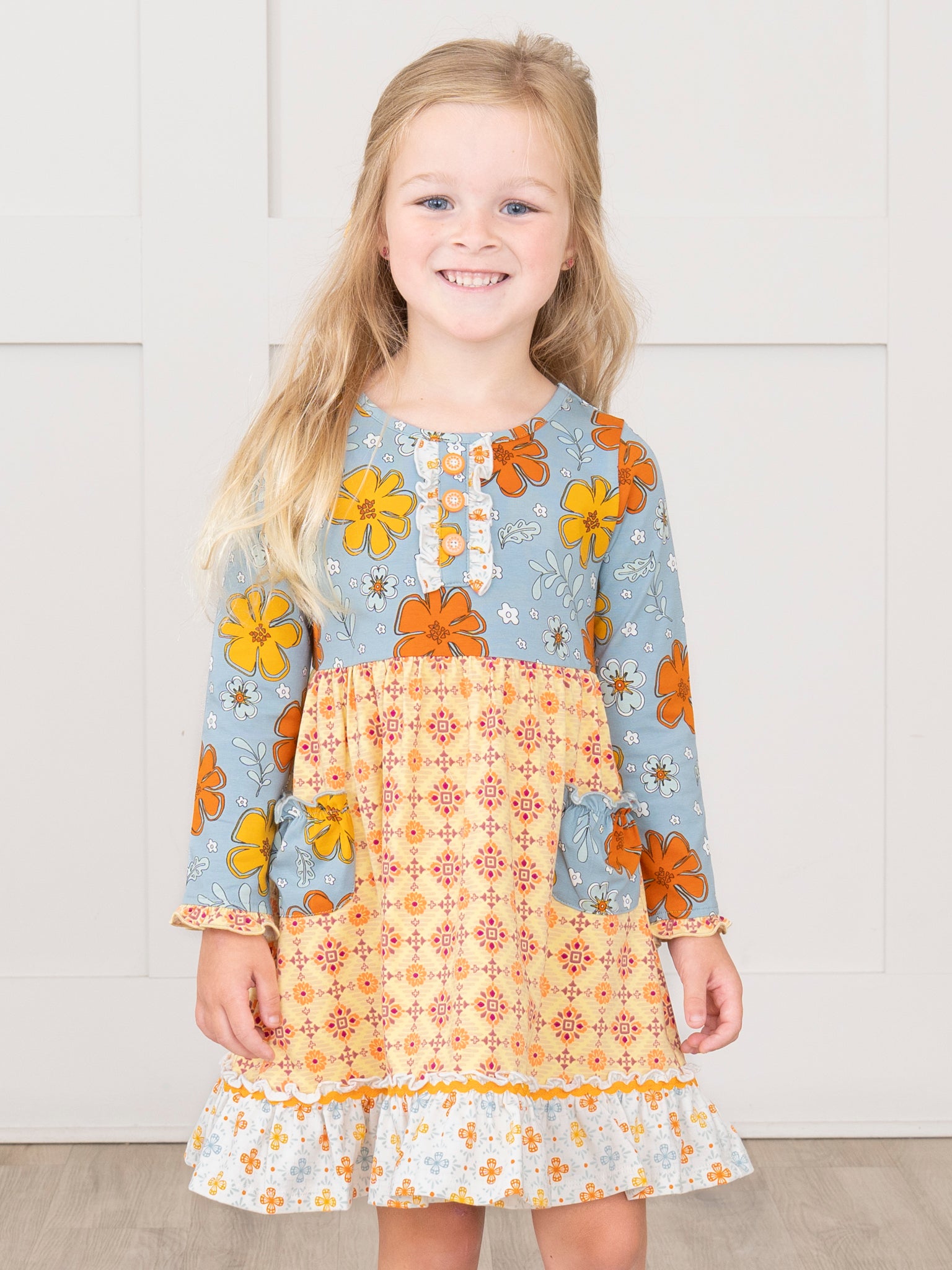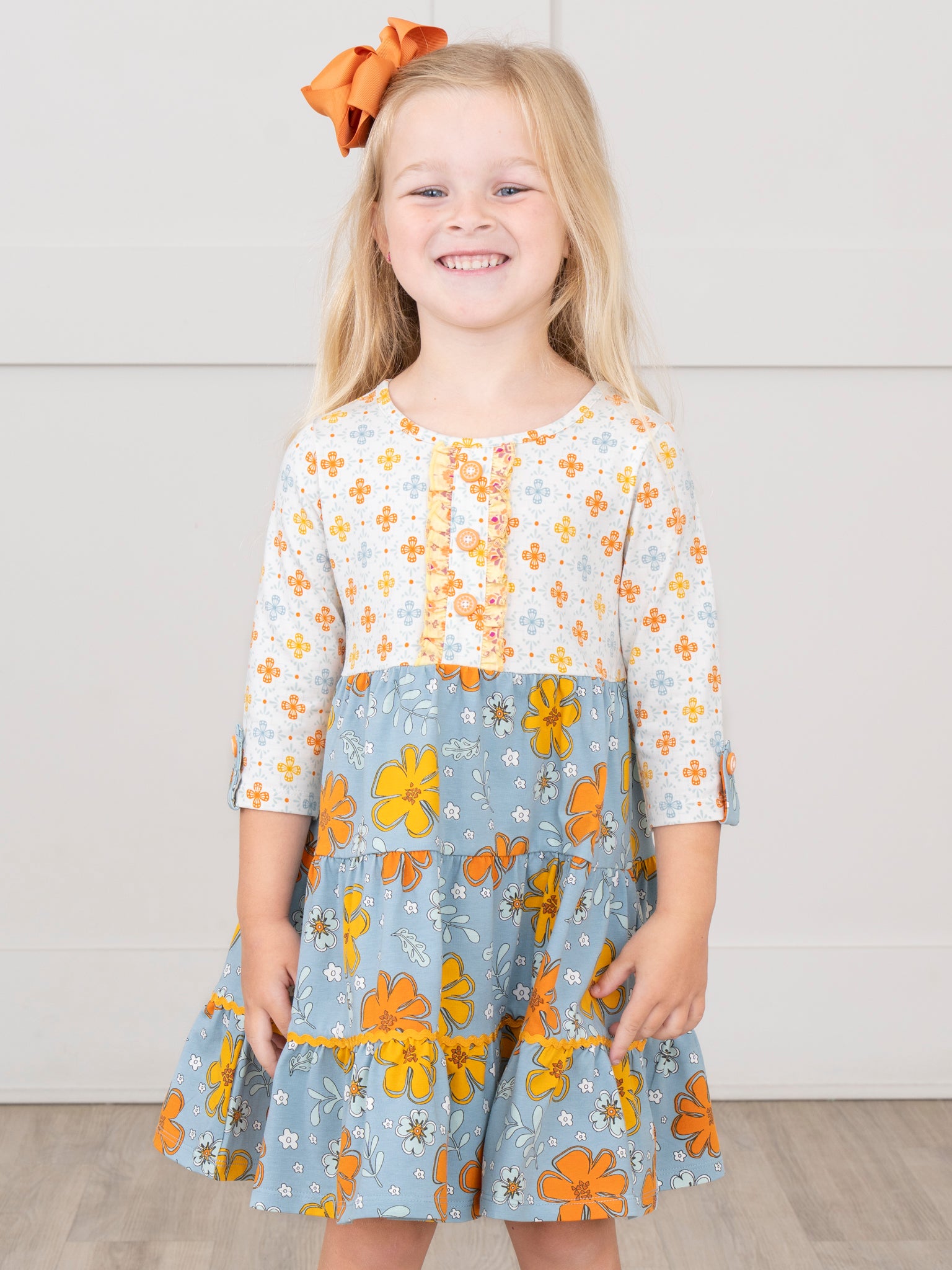 Pumpkin Floral Breeze Smocked Ruffle Dress