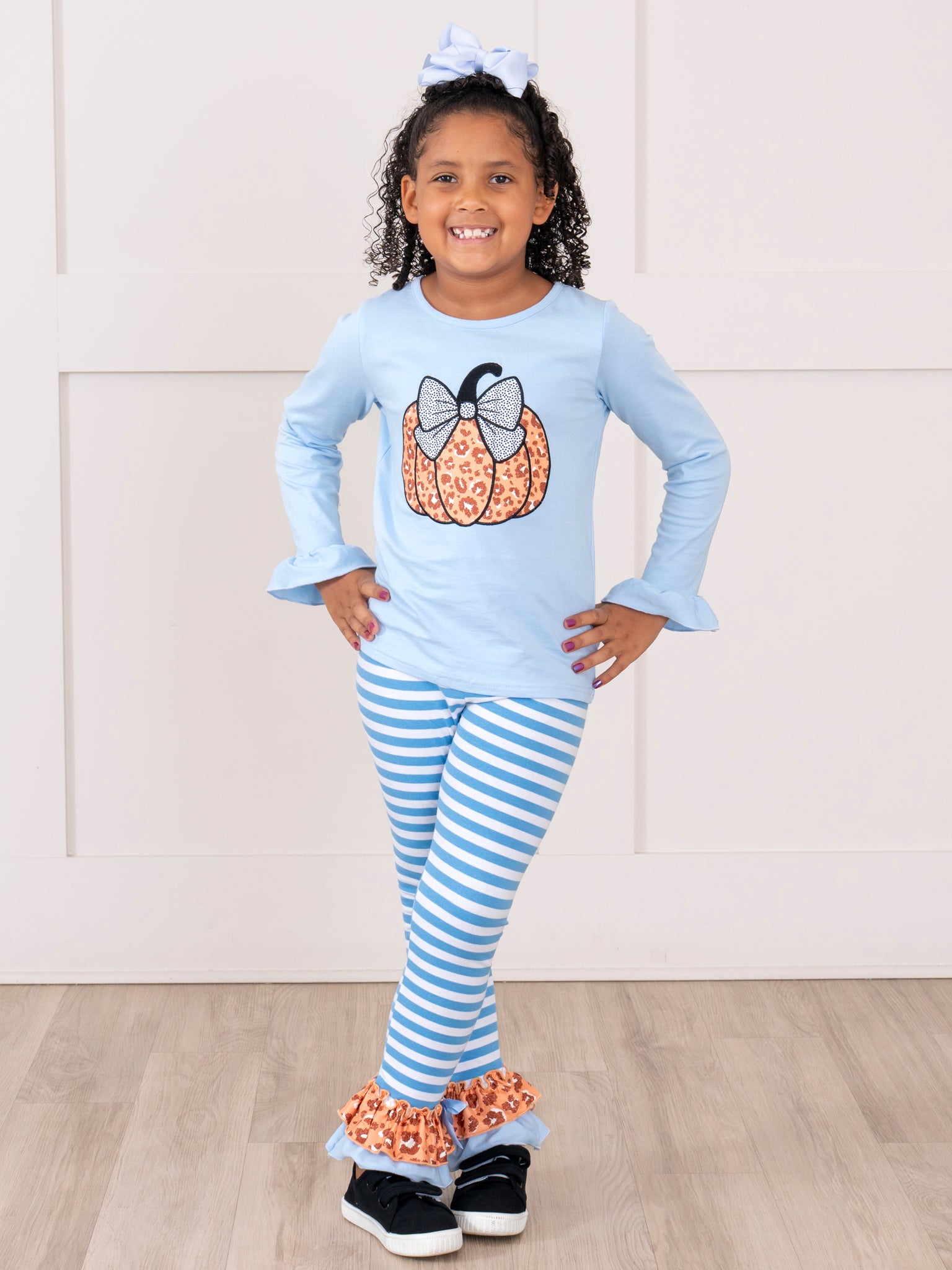 Leopard Pumpkin Embroidered Ruffle Outfit