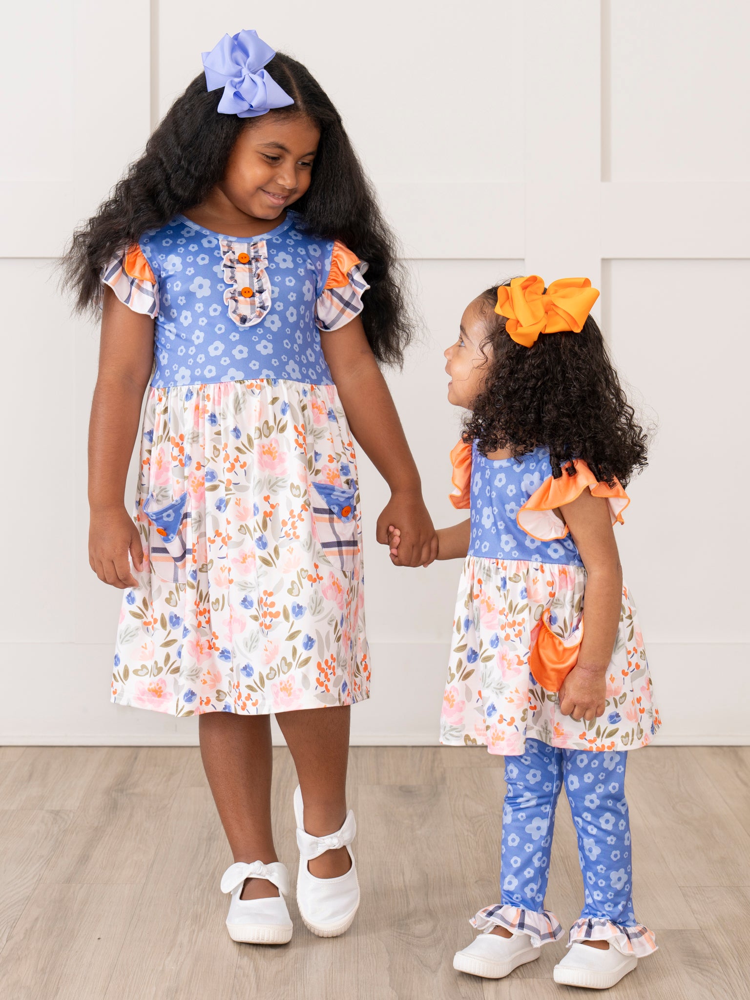 The Harvest Moon Floral Dress is a warm and charming choice that’s perfect for crisp autumn days and festive gatherings. Featuring rich fall floral prints and soft ruffle accents, this dress from Marie Nicole Clothing blends seasonal elegance with cozy comfort. Made from breathable, lightweight fabric, it’s ideal for pumpkin patch visits, family celebrations, and picture-perfect fall moments.