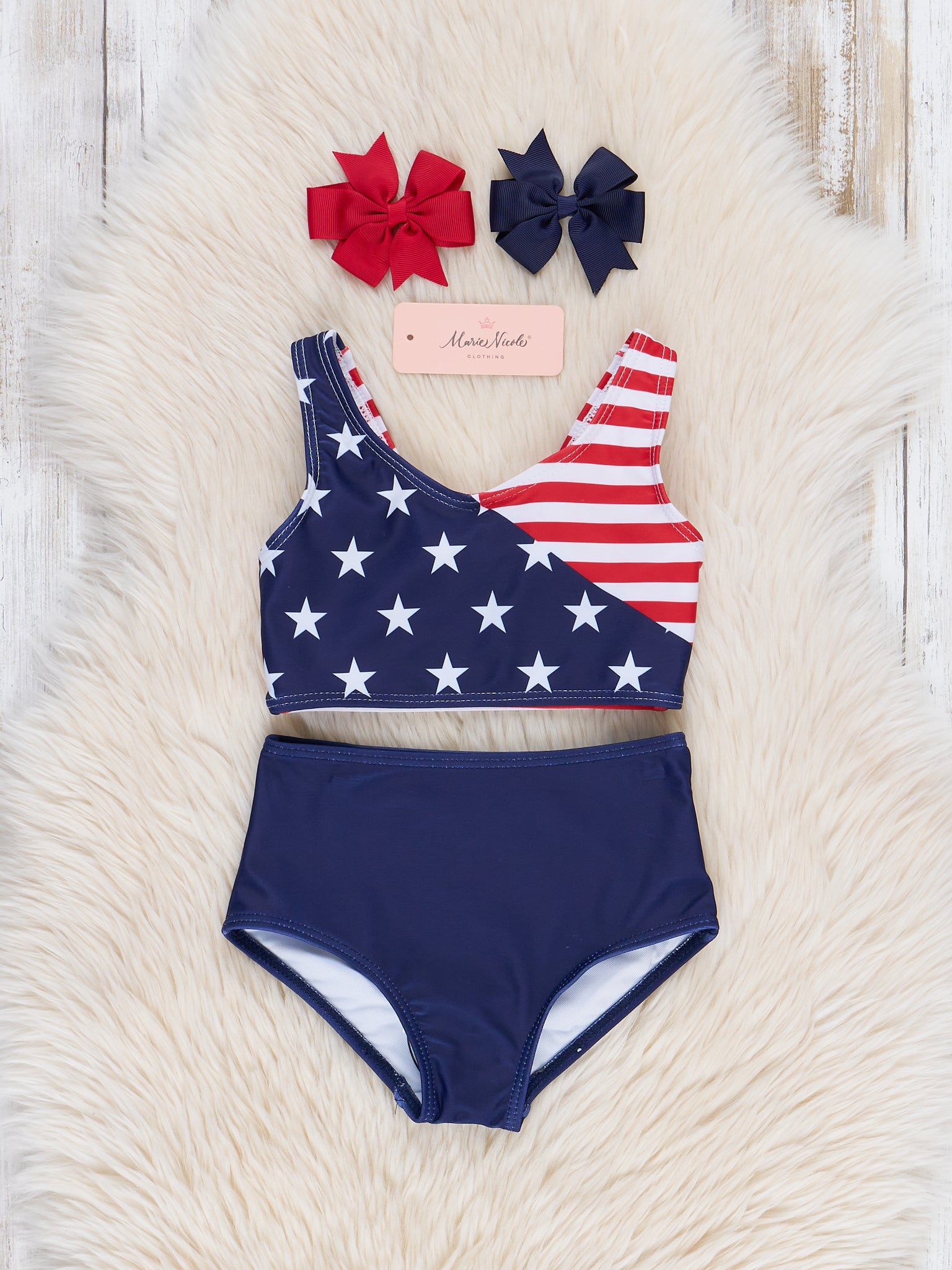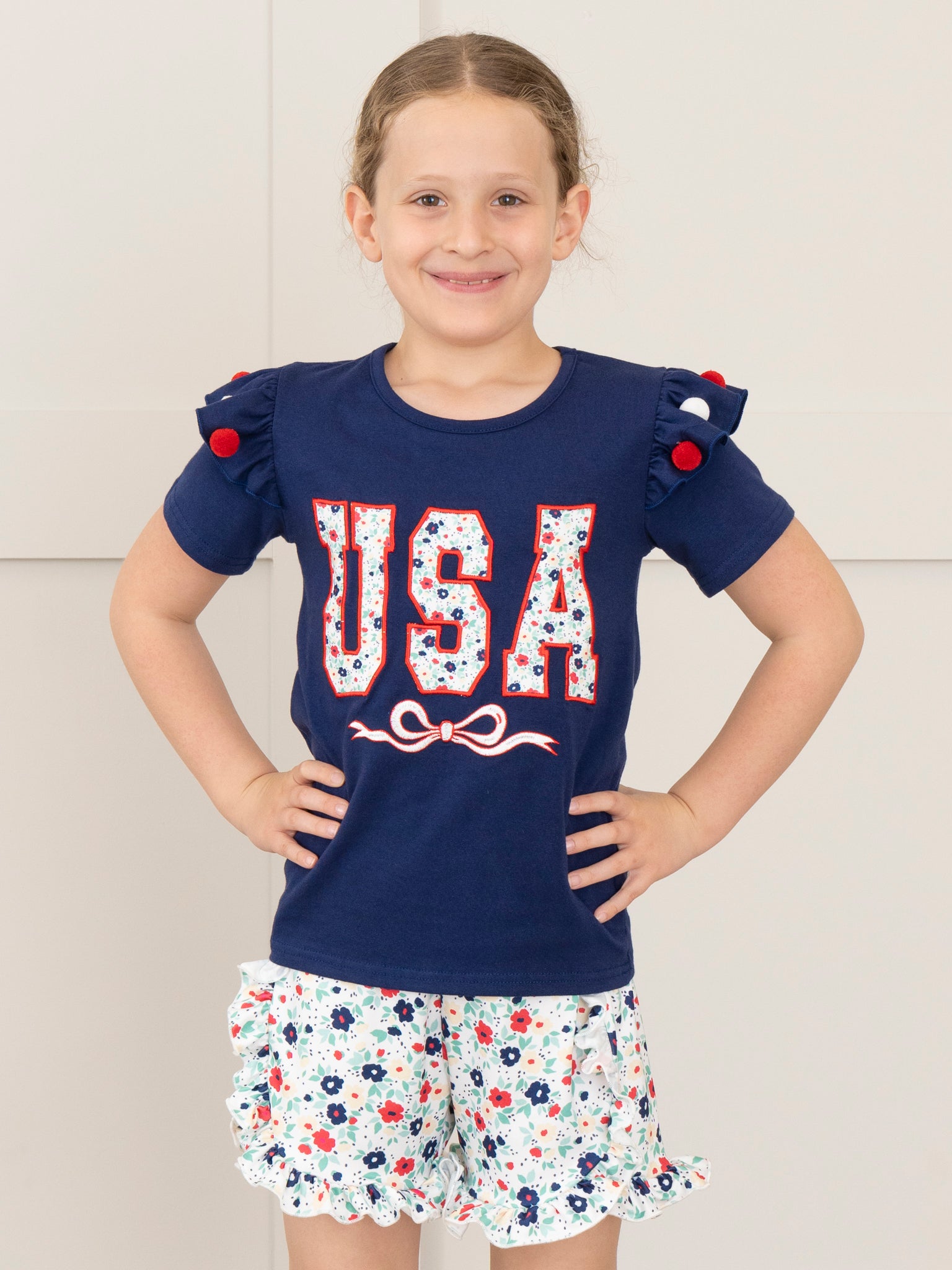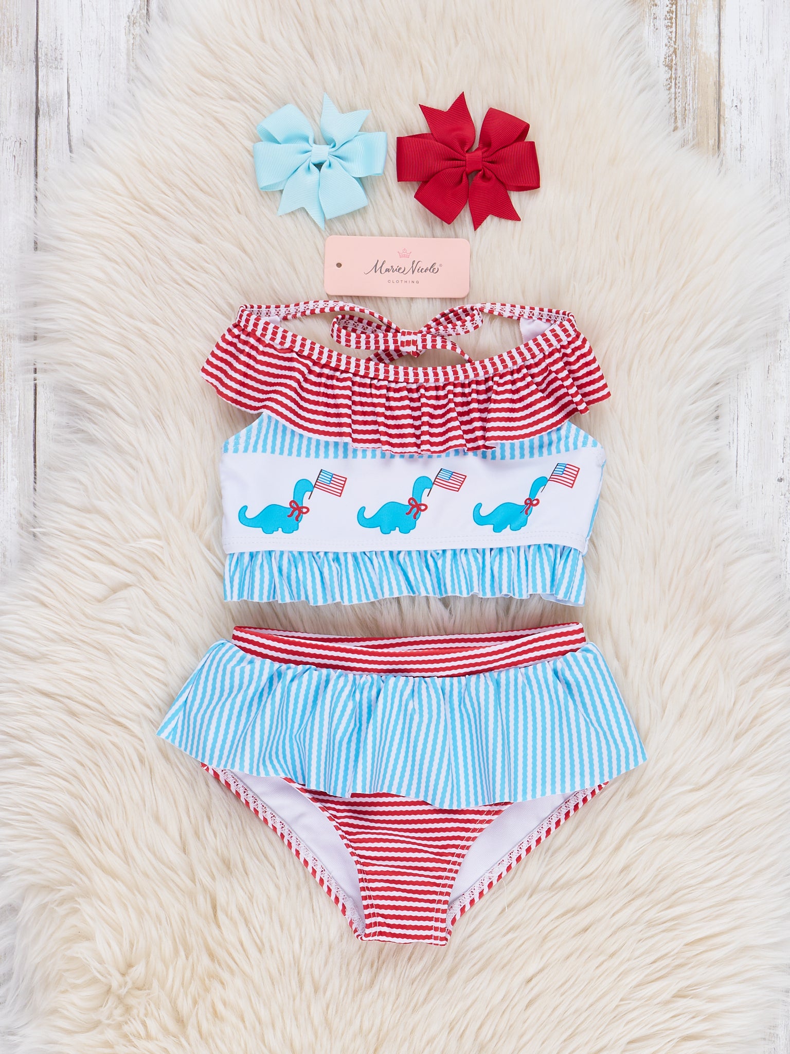 Cool Patriotic Cow Embroidered Ruffle Bubble