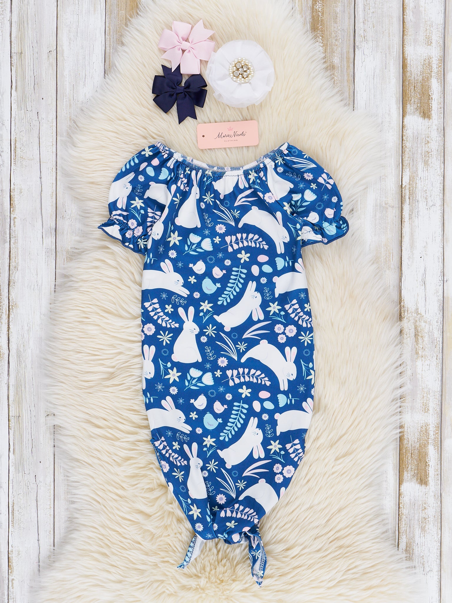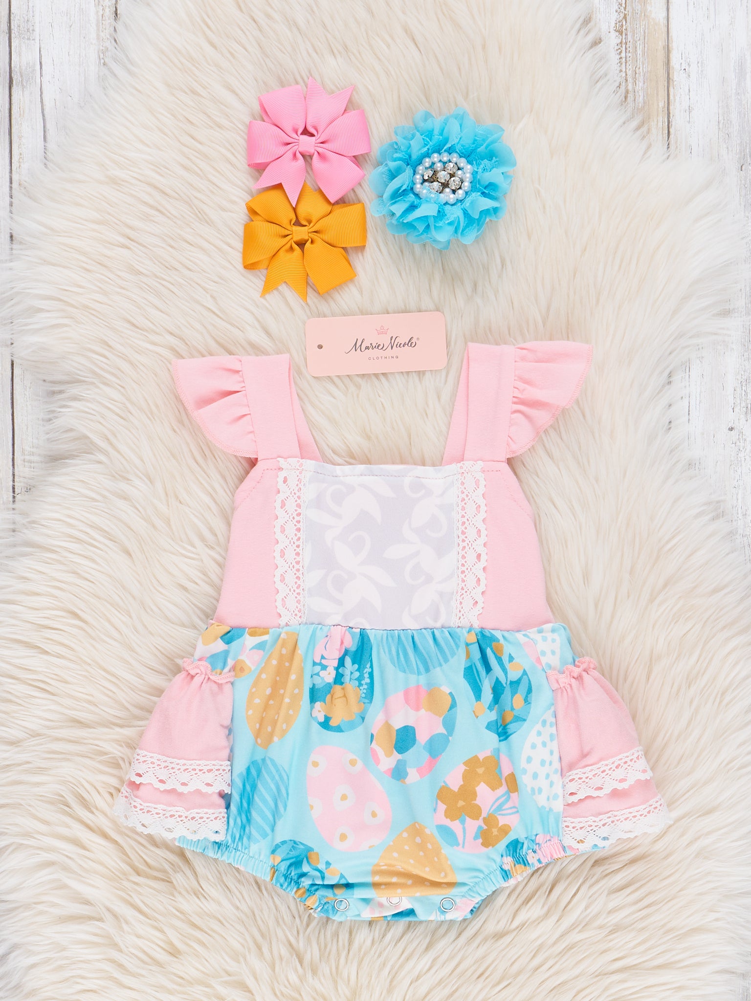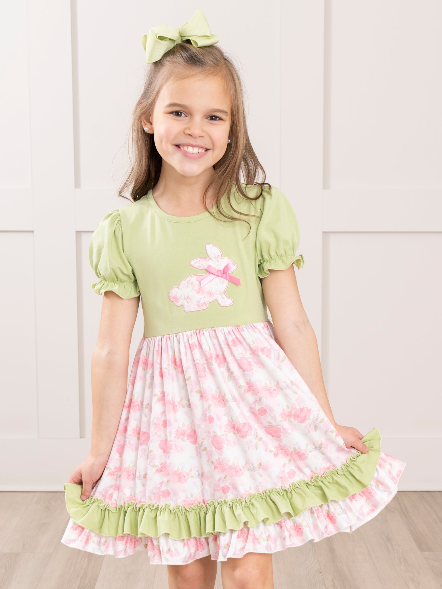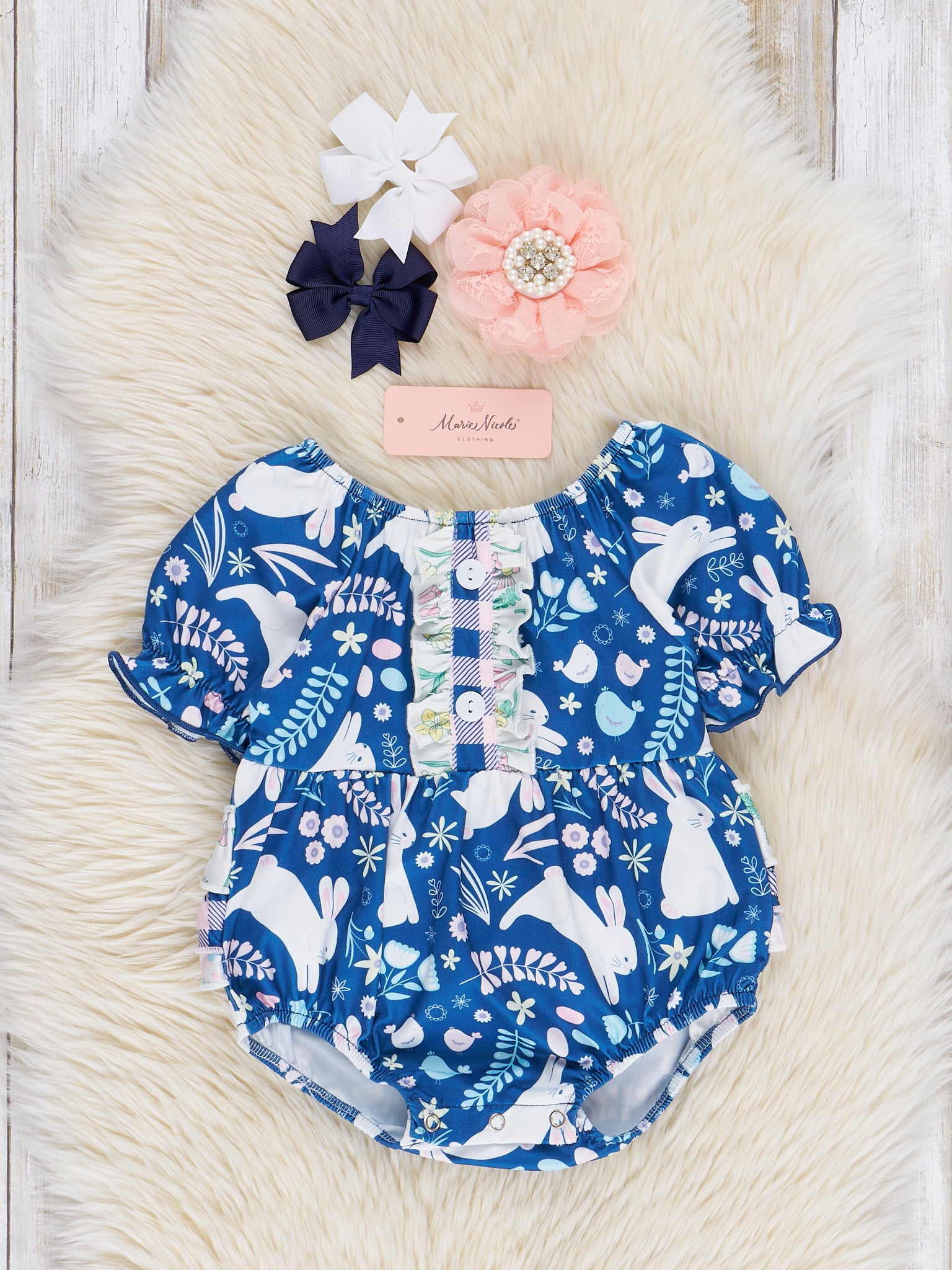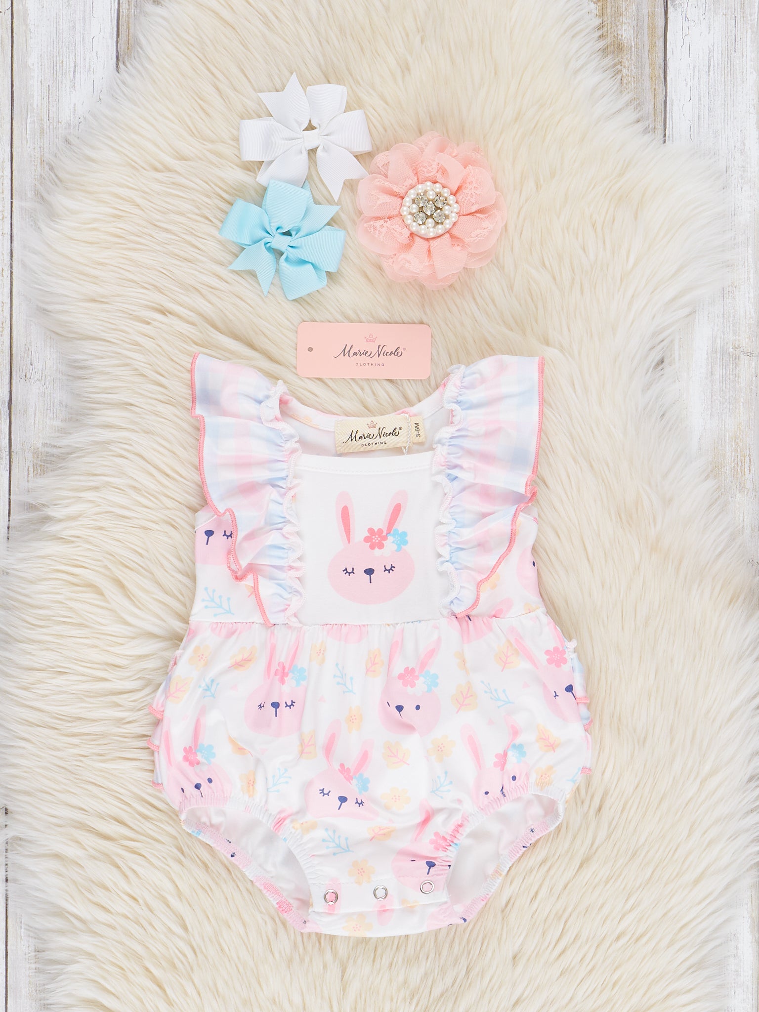 Green Embroidered Bunny Gingham Ruffle Bubble
