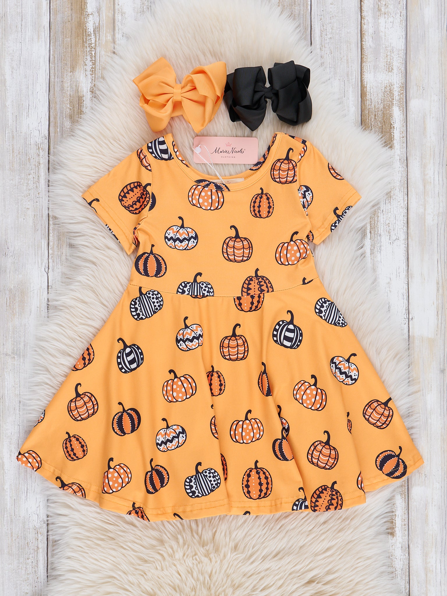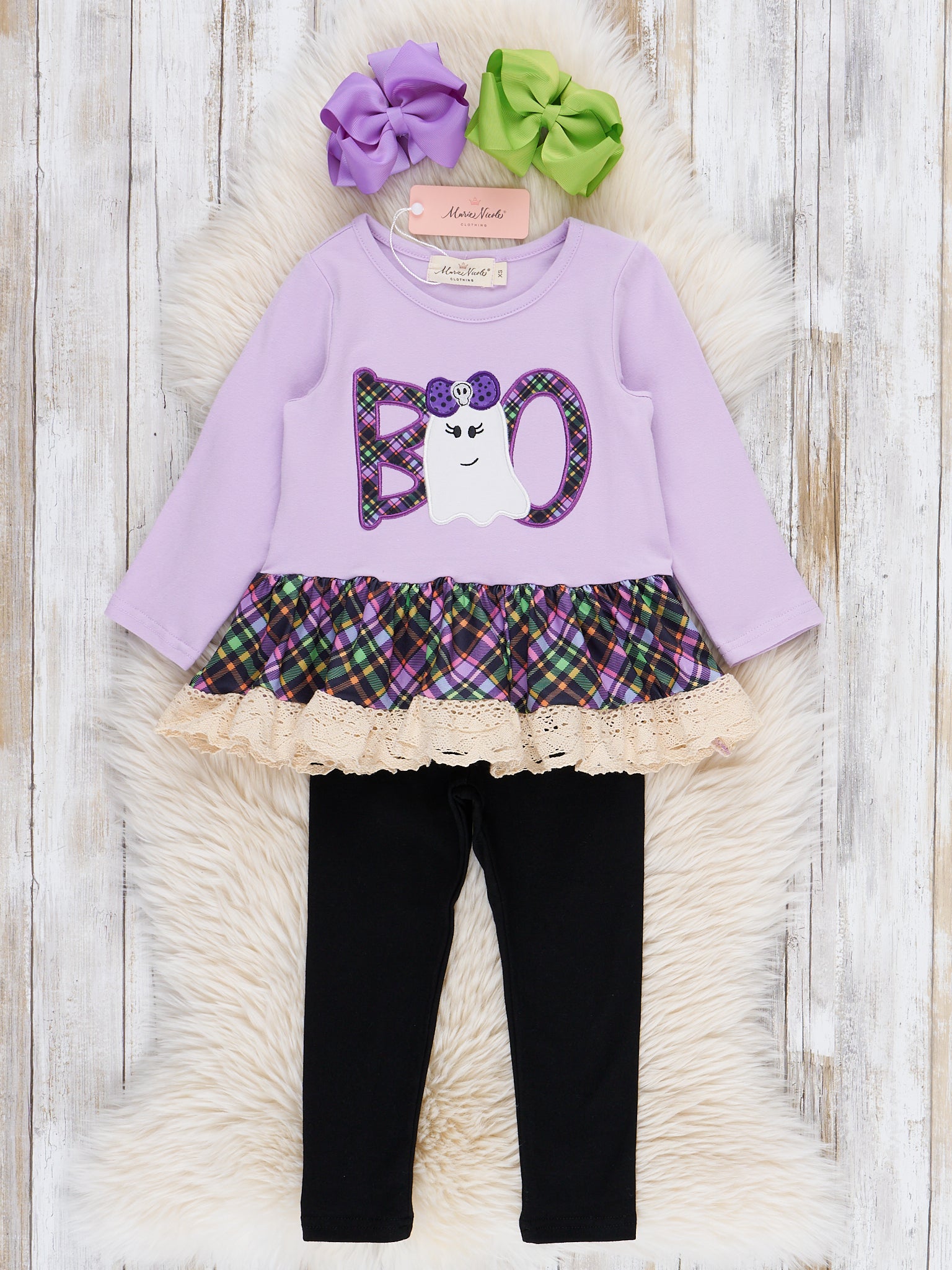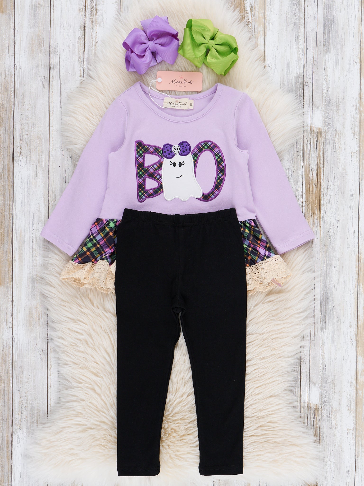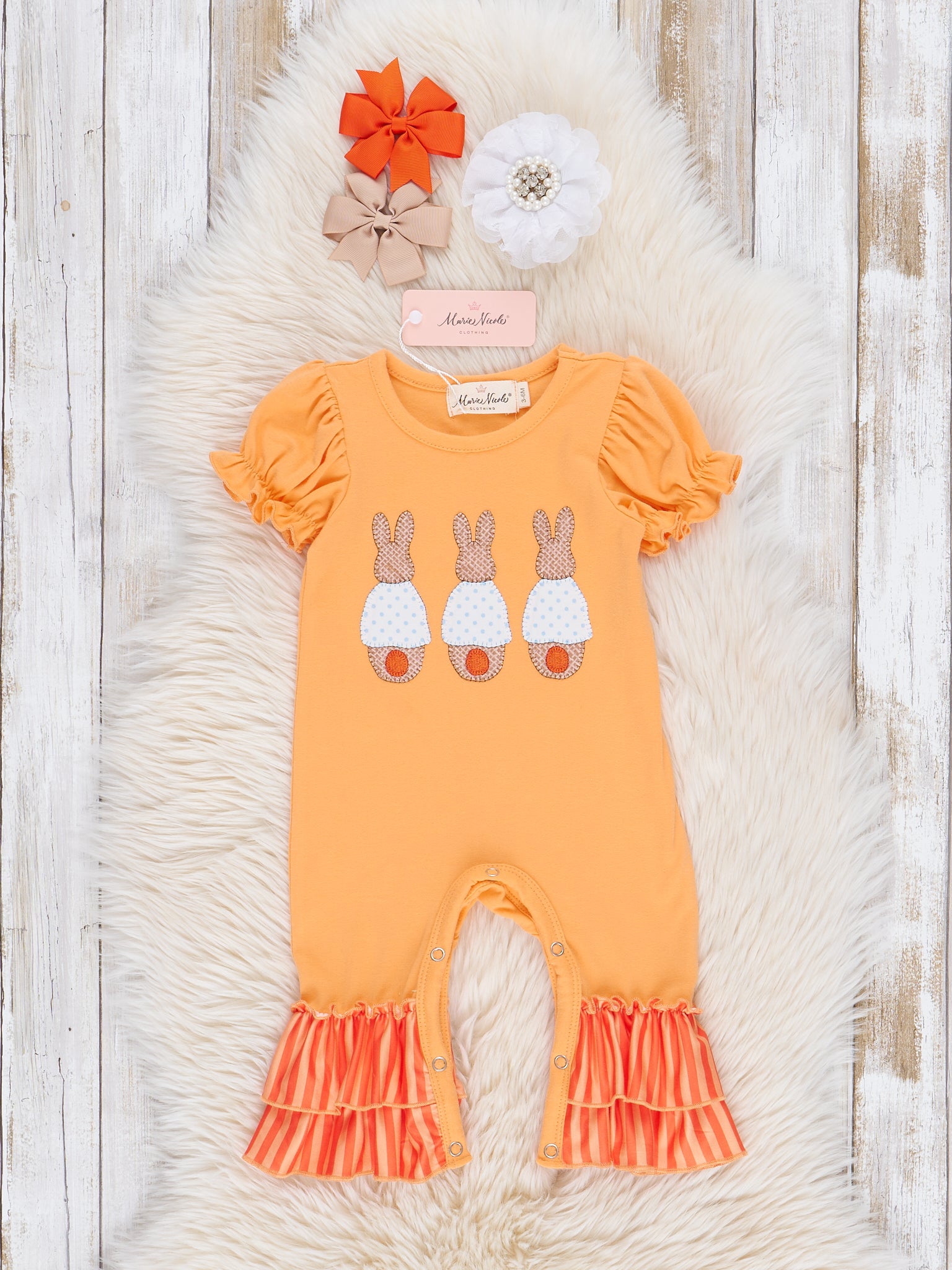 Striped Boo & Pumpkin Embroidered Ruffle Romper