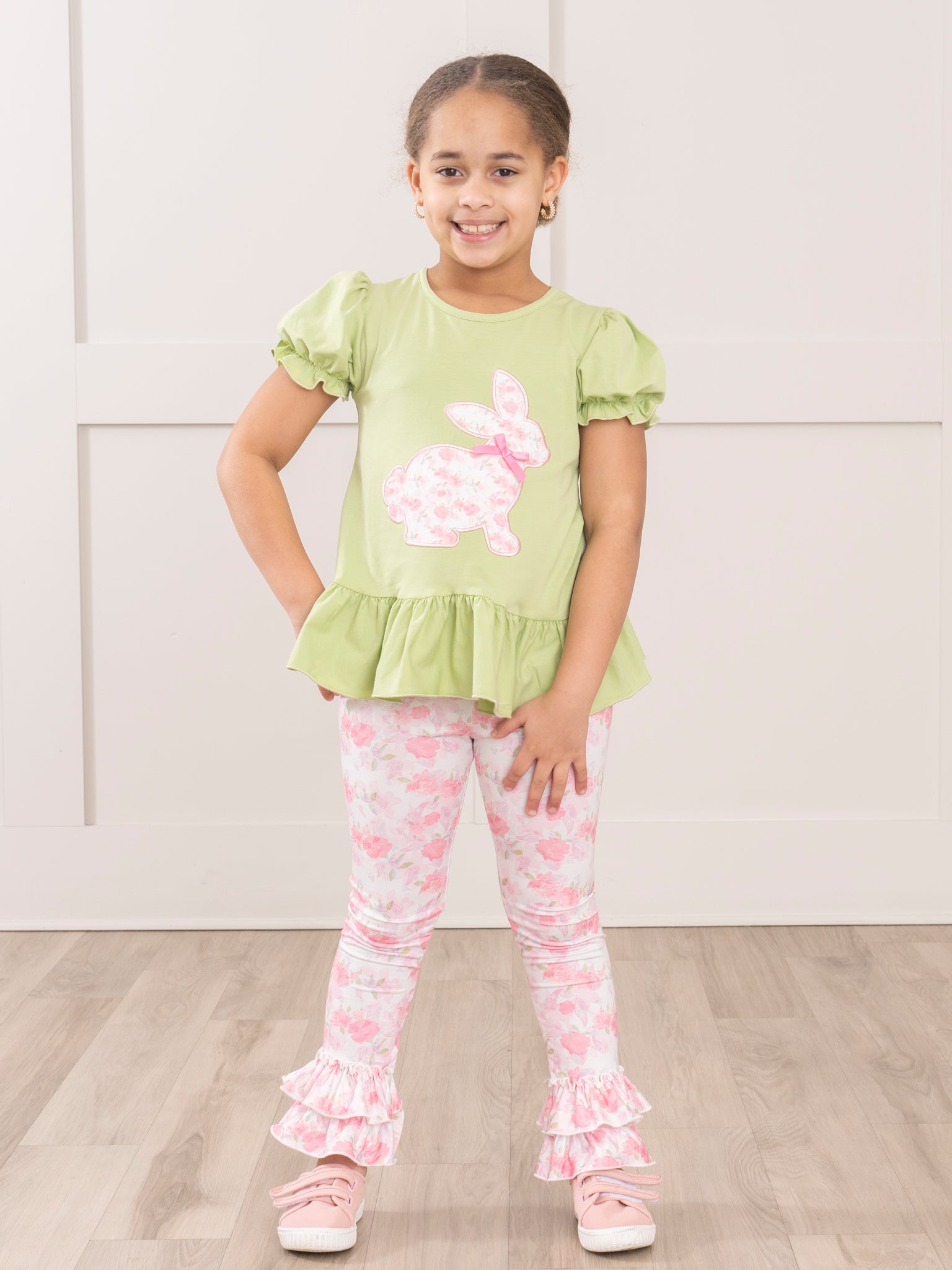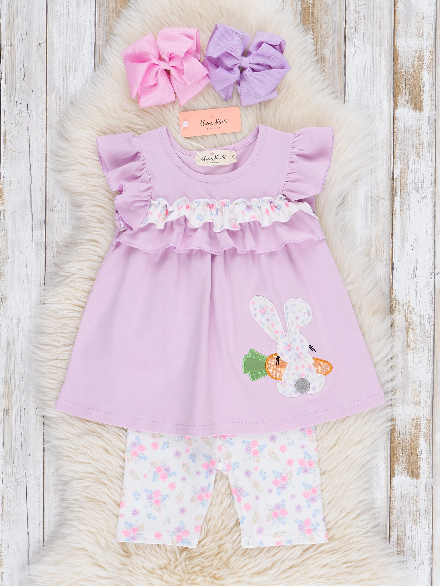 Purple Embroidered Floral Bunny Ruffle Outfit