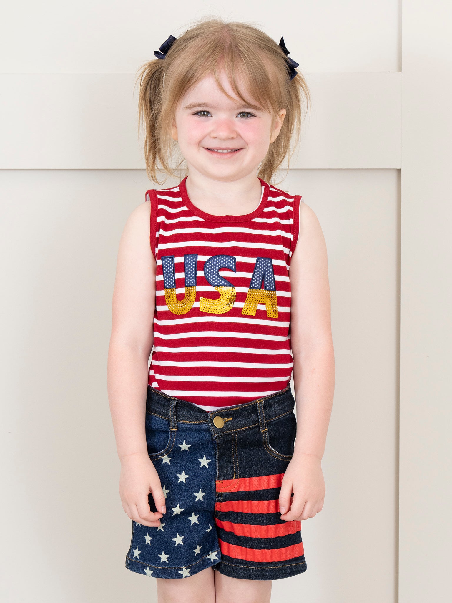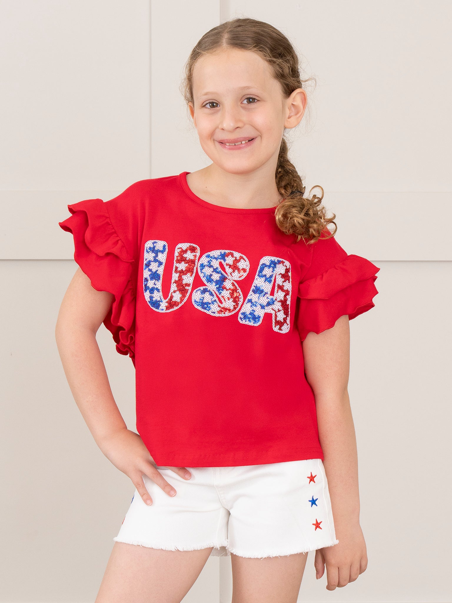 Embroidered Stars Ruffle Denim Shorts Outfit