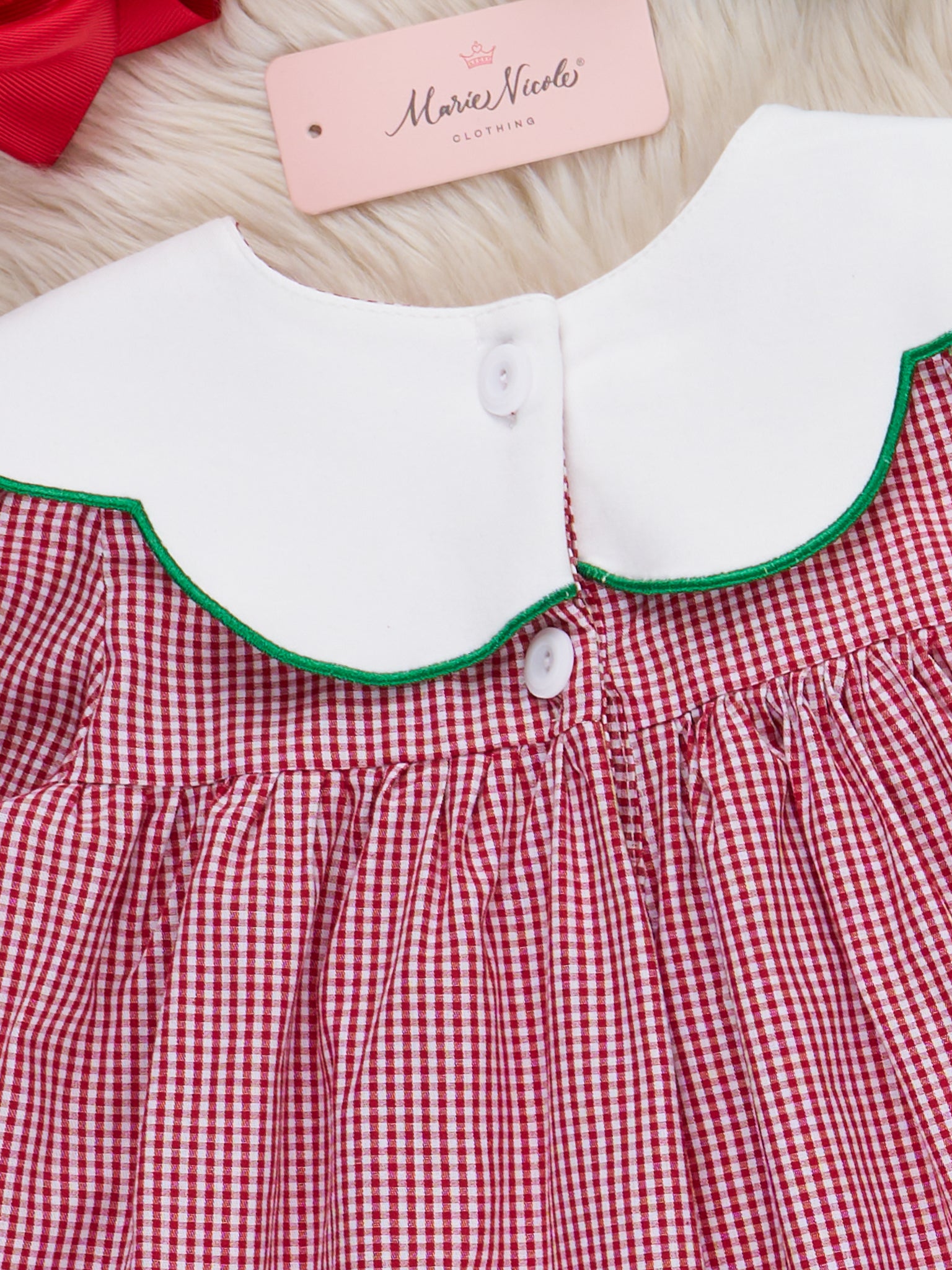 Red & Green Smocked Christmas Tartan Ruffle Dress