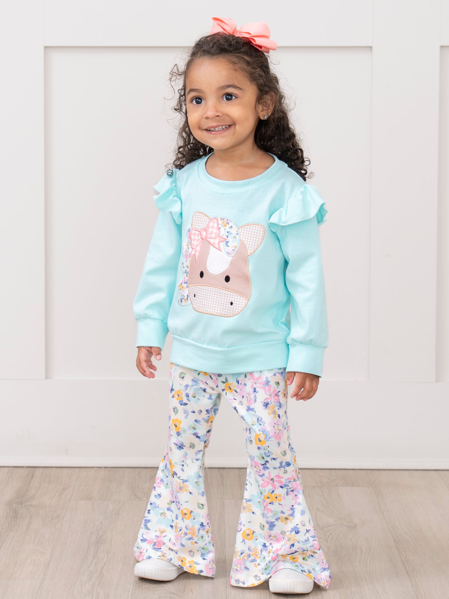 Palomino Dreams Embroidered Ruffle Bell Bottom Outfit