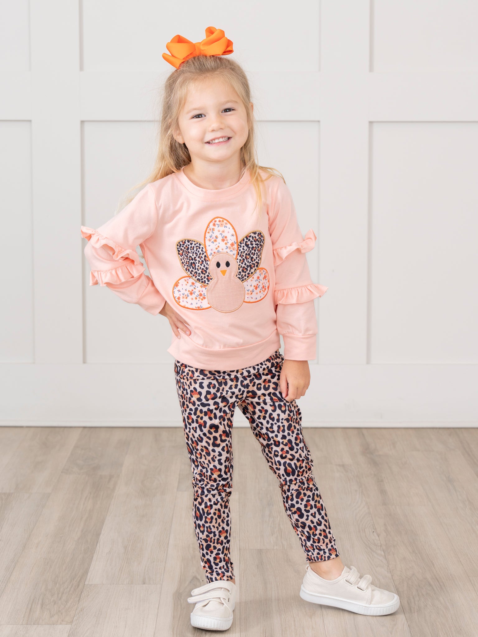 "Thankful" Embroidered Leopard Bell Bottom Outfit