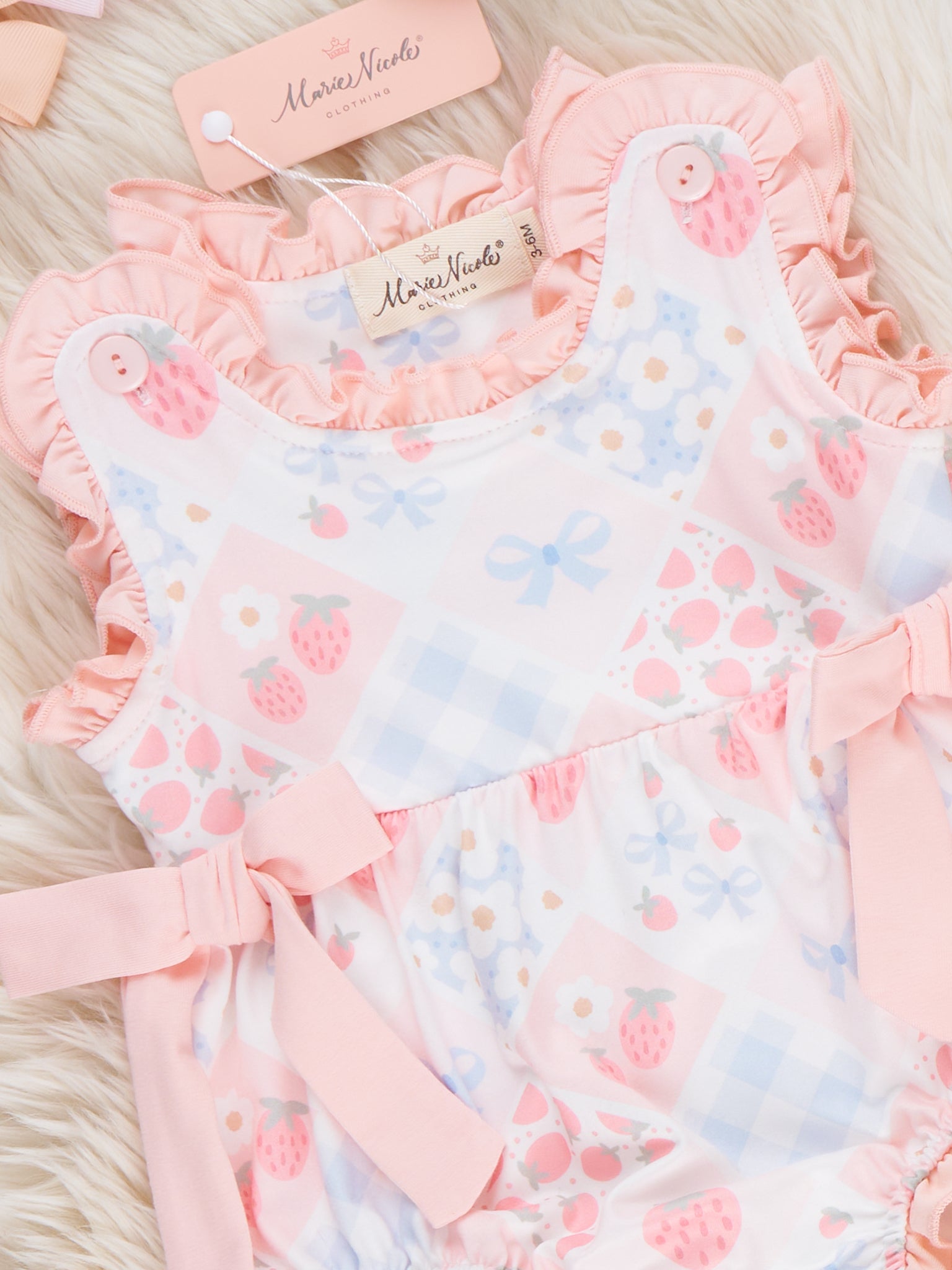 Strawberry Bow Embroidered Ruffle Bubble