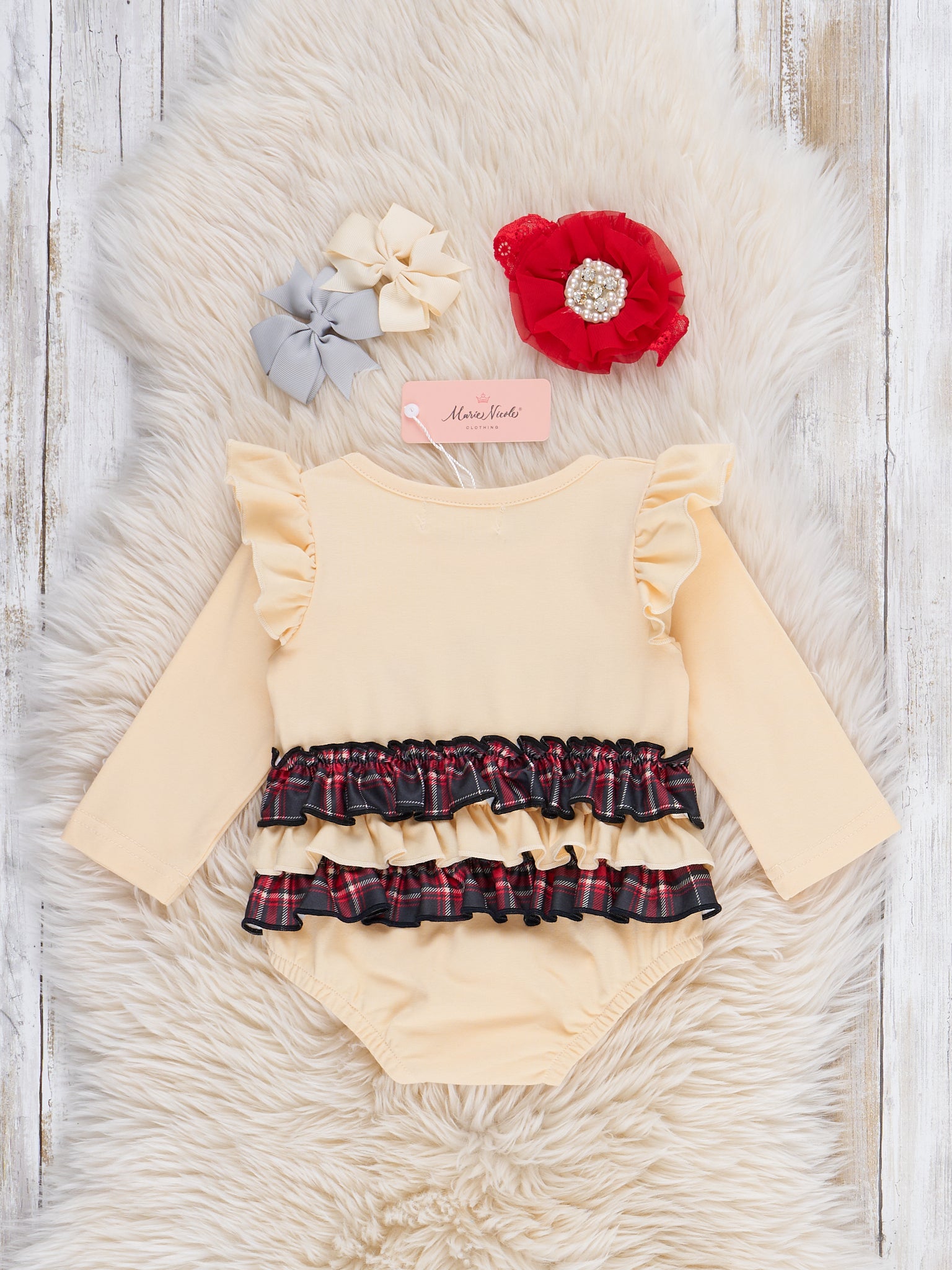 "Happy New Year" Plaid Embroidered Ruffle Romper