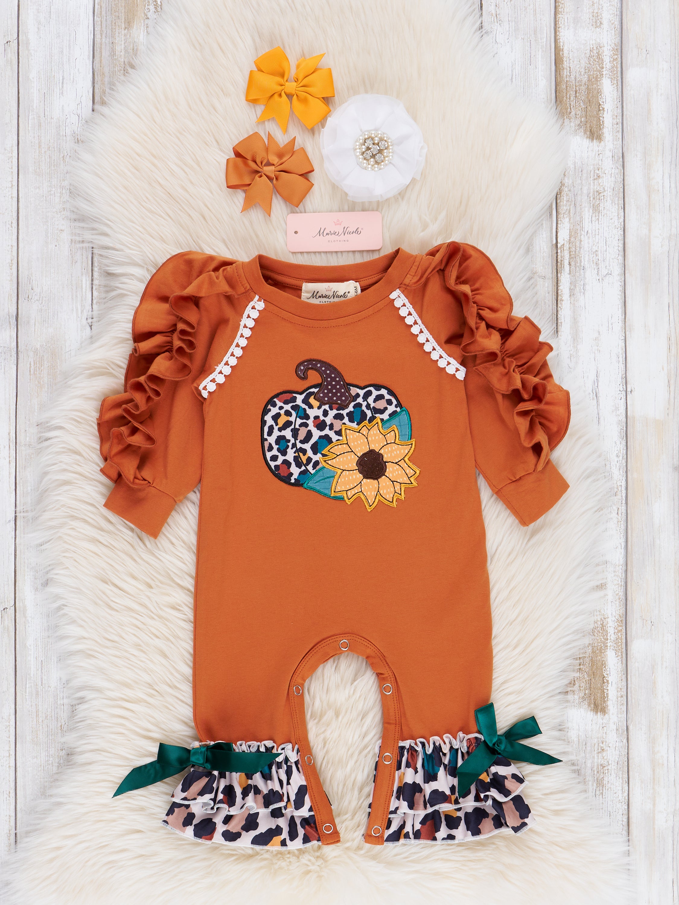 Pumpkins & Petals Ruffle Embroidered Romper