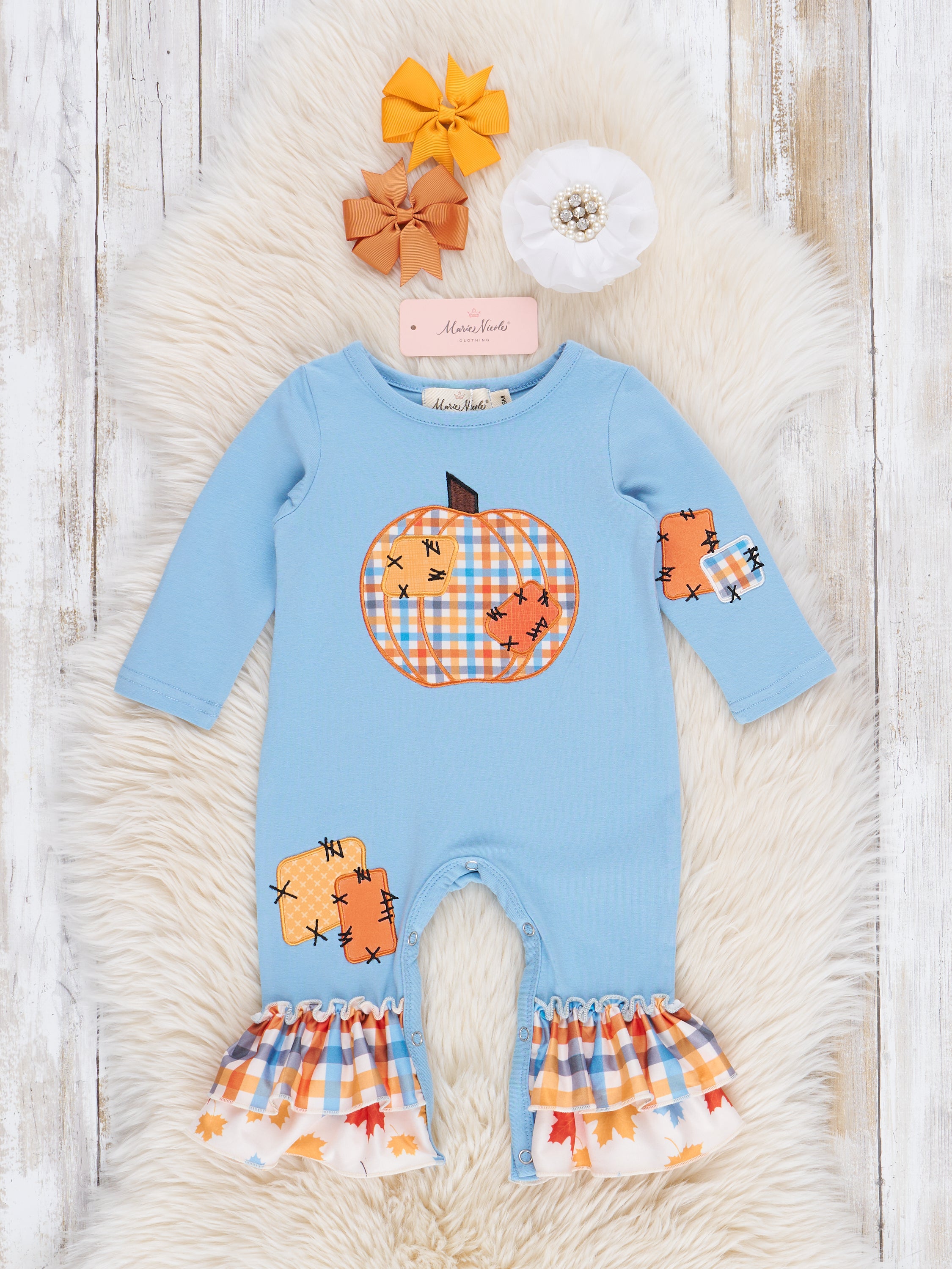 Pumpkins and Periwinkles Smocked Bow Romper