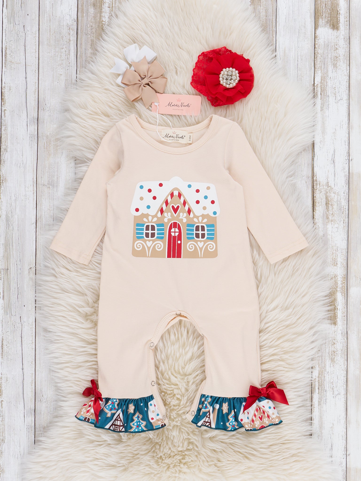 Gingerbread Village Ruffle Romper