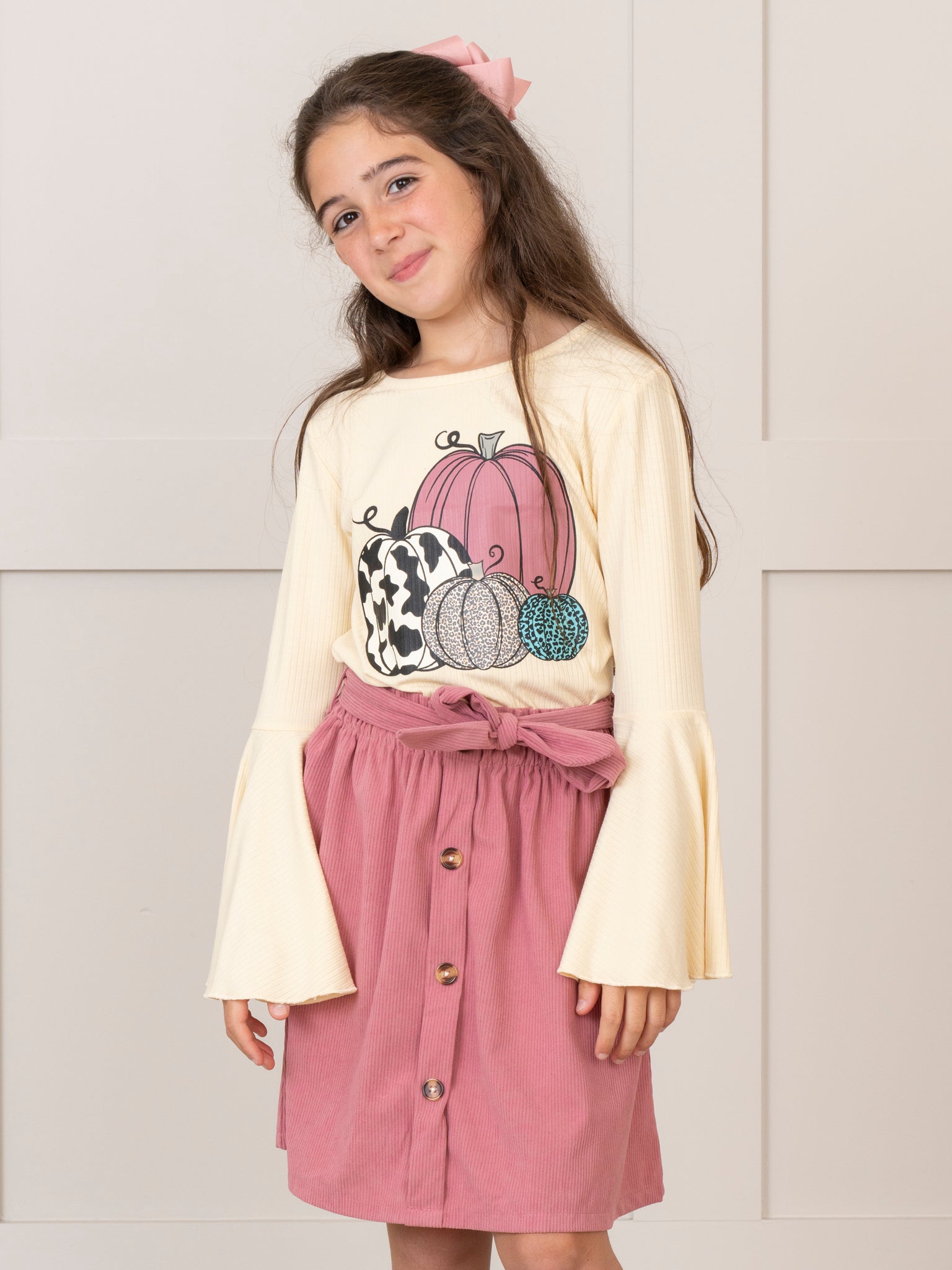 Plum Pumpkin Patch Corduroy Outfit w/ Skirt