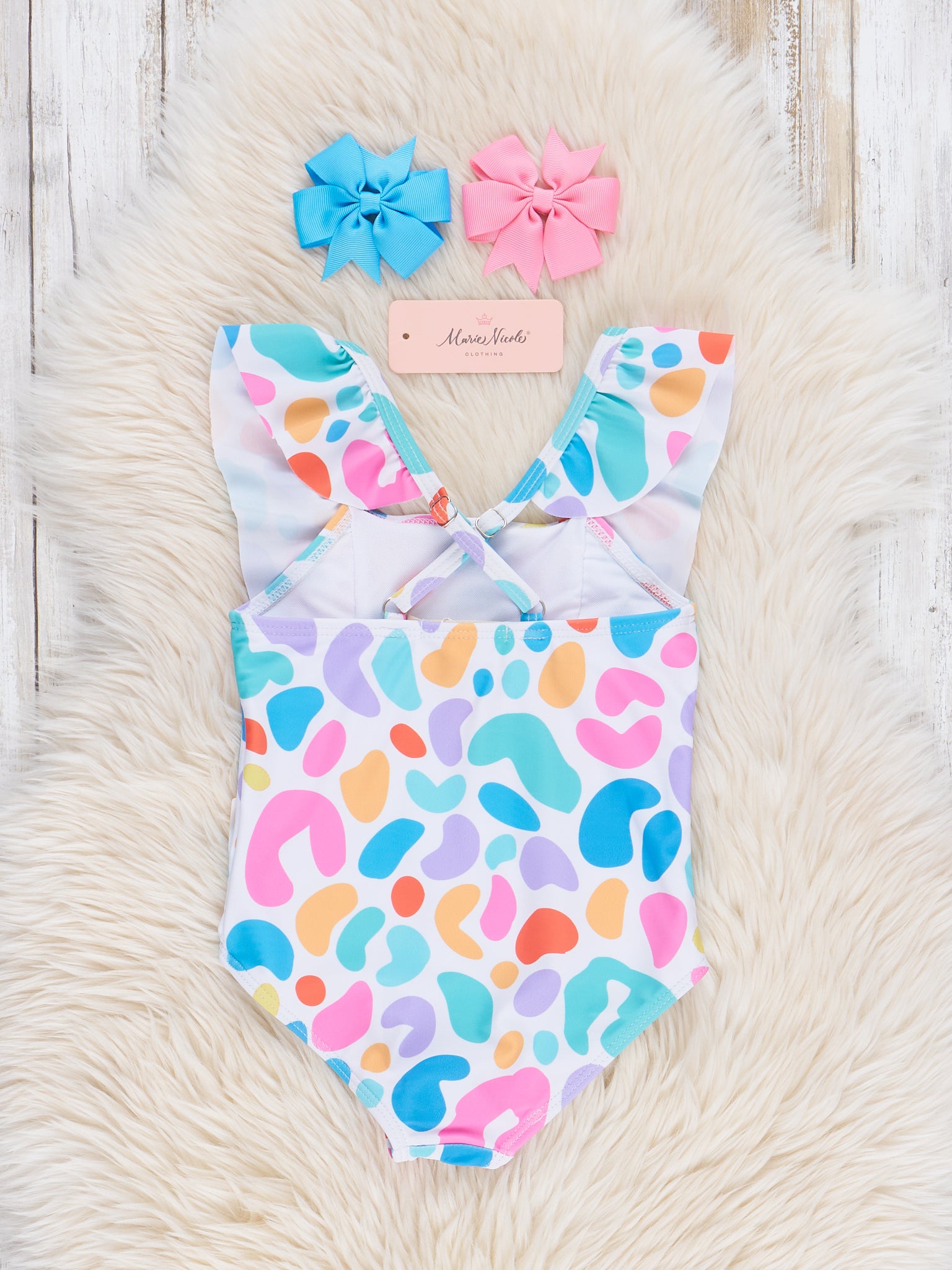 Rainbow Holographic Tulle Ruffle Swimsuit