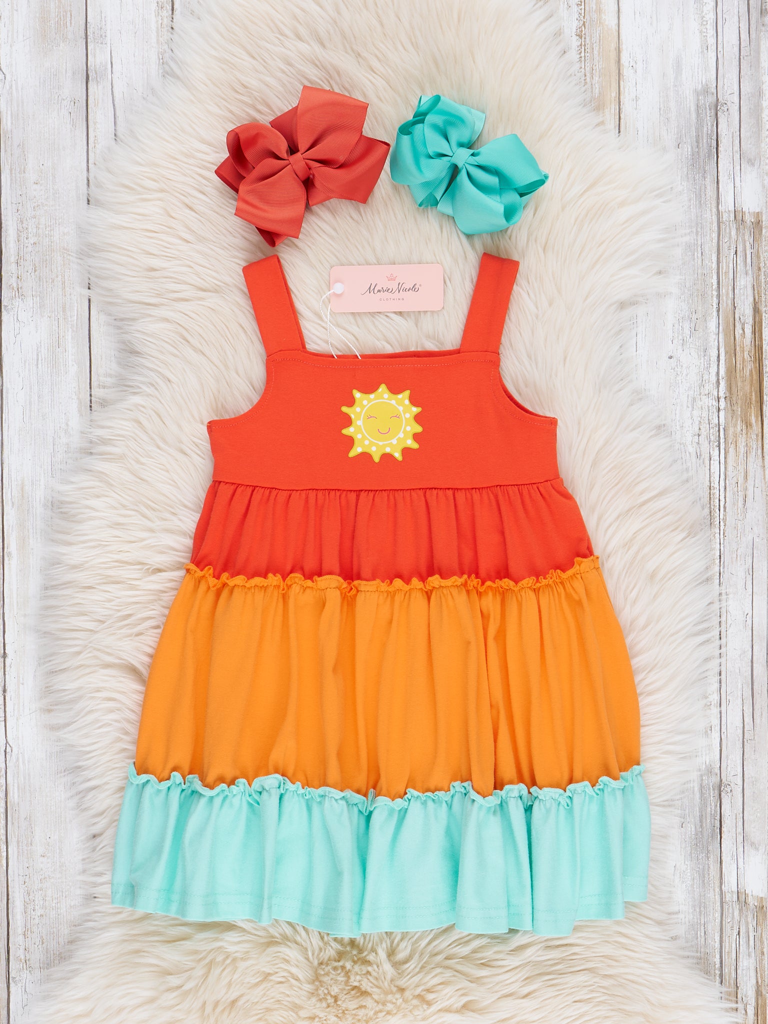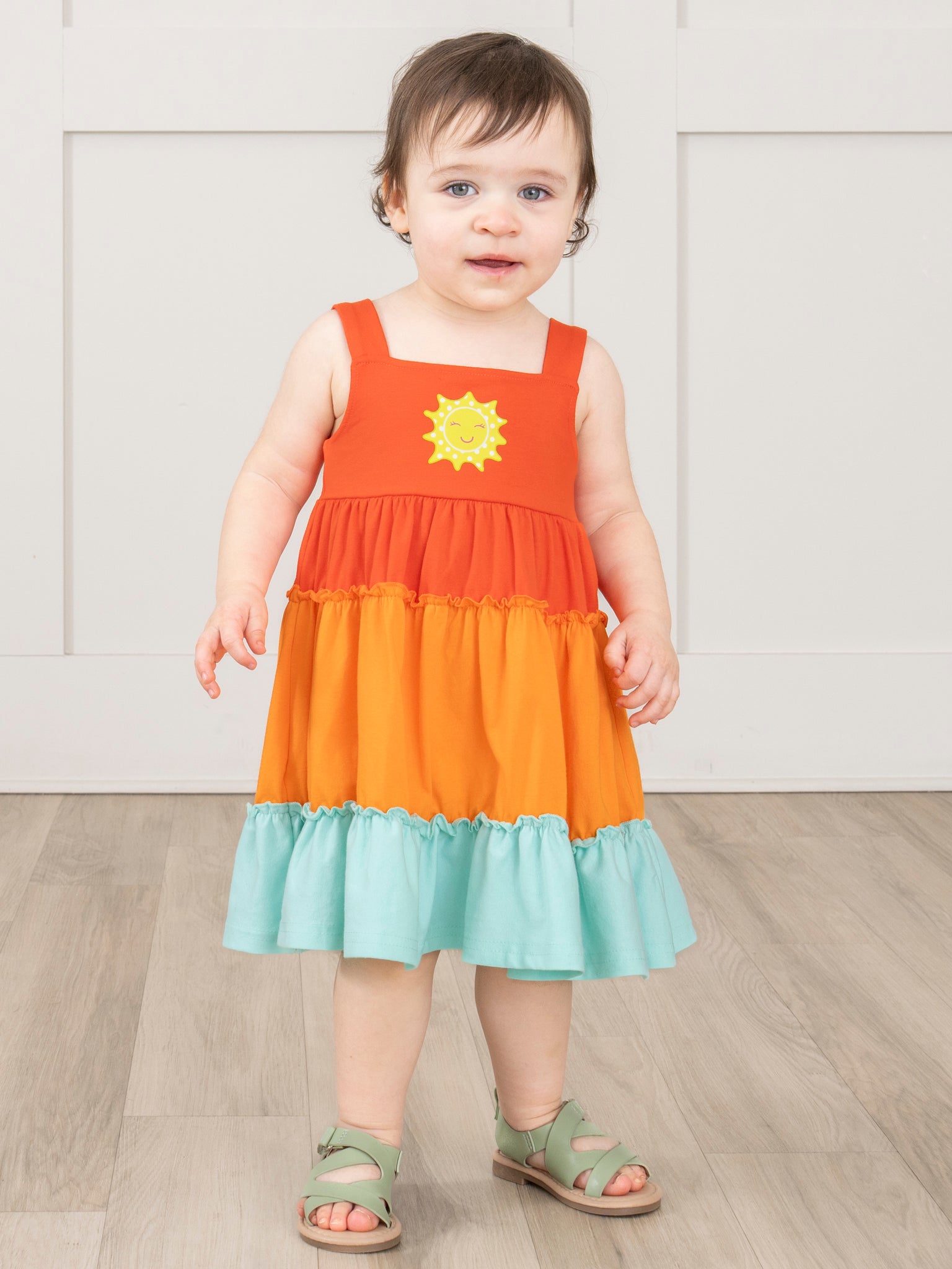 Periwinkle & Yellow Painted Blooms Ruffle Dress
