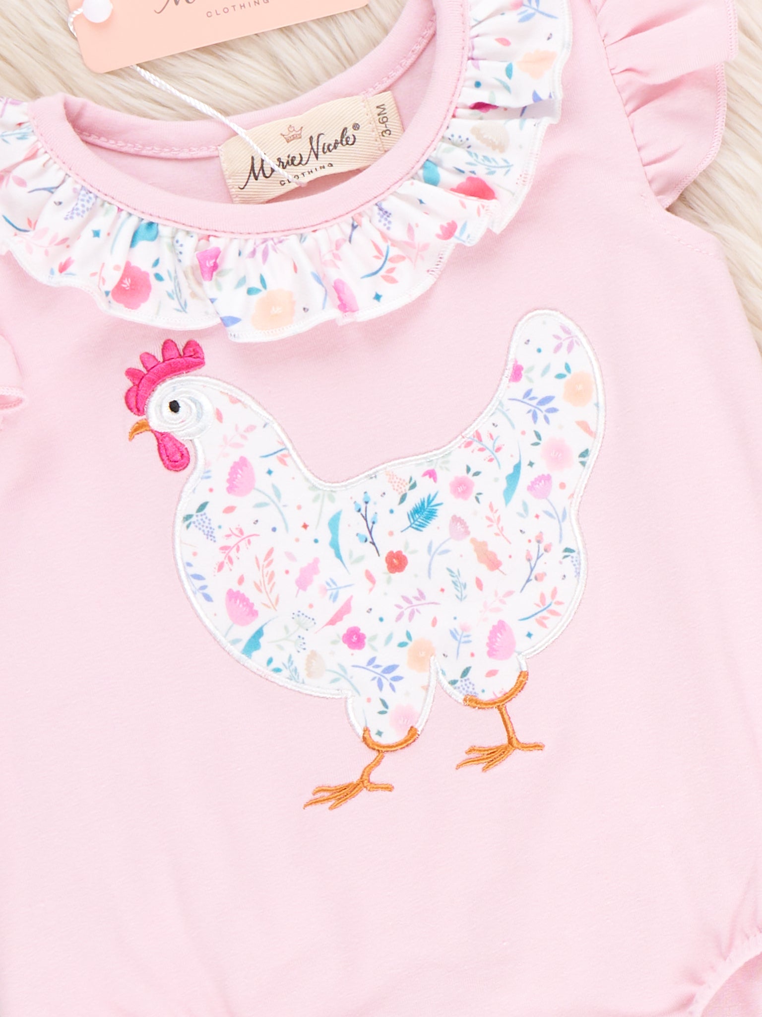 Country Chicken Blossoms Embroidered Ruffle Bubble