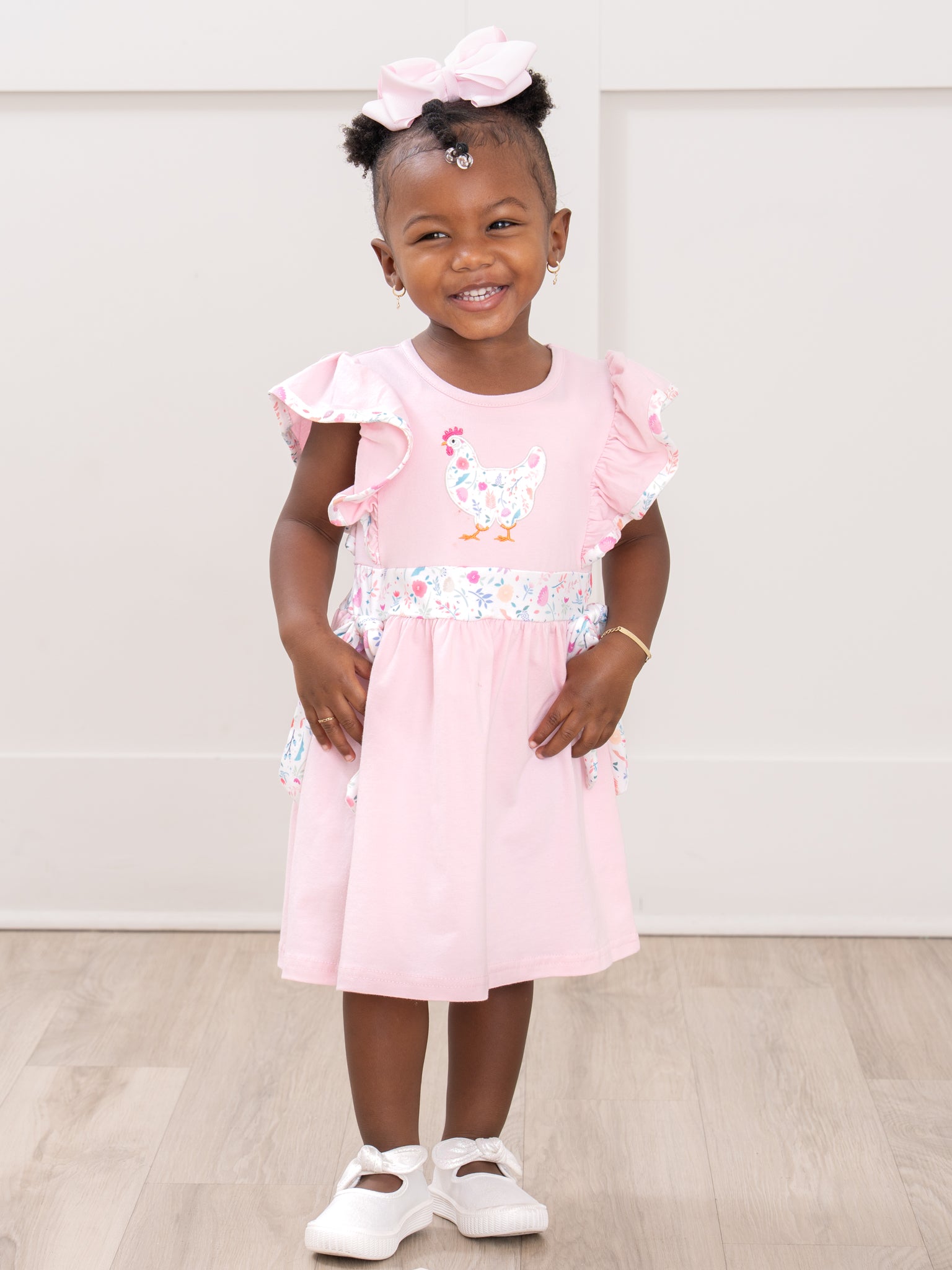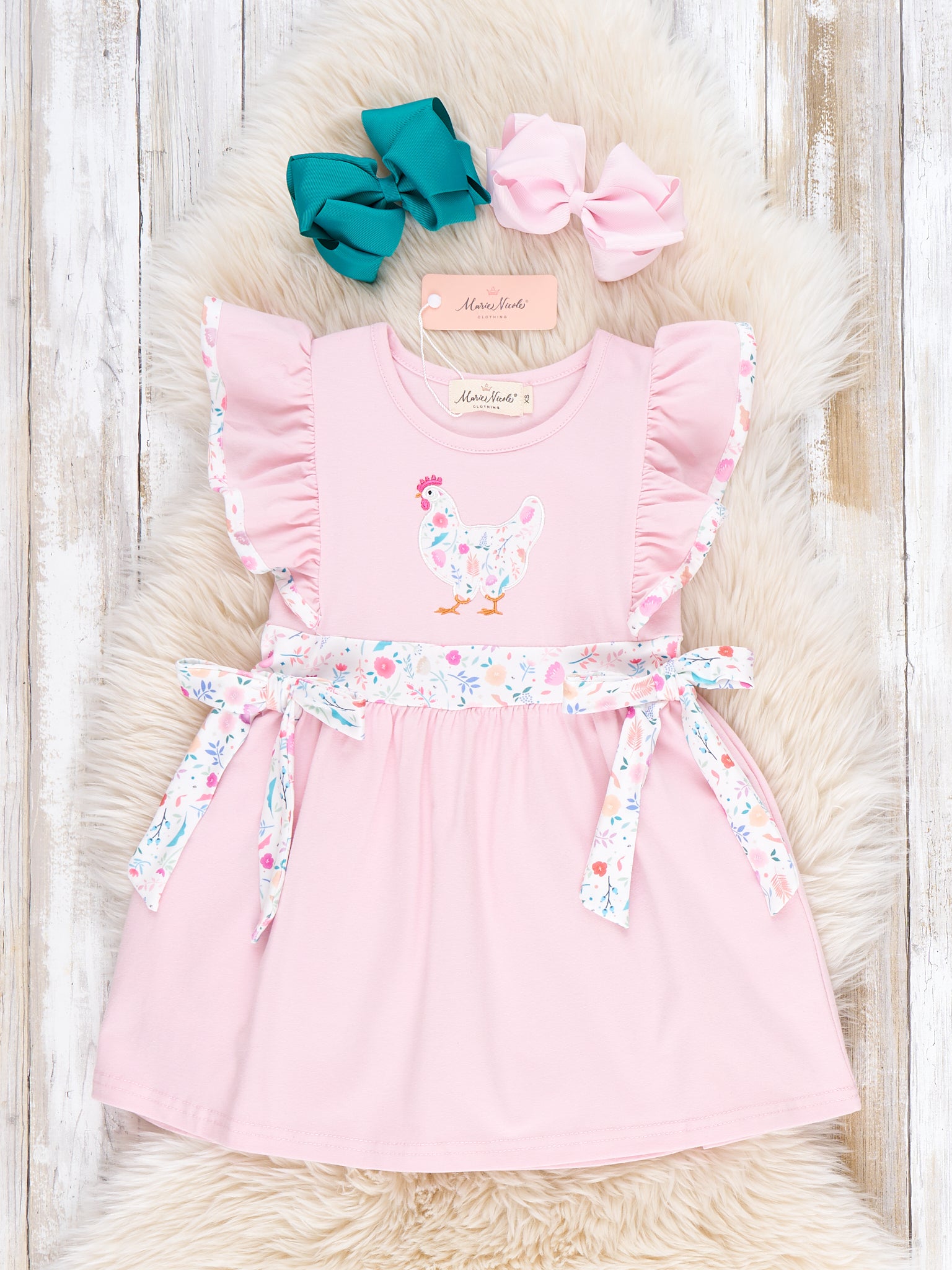 Country Chicken Blossoms Embroidered Ruffle Dress