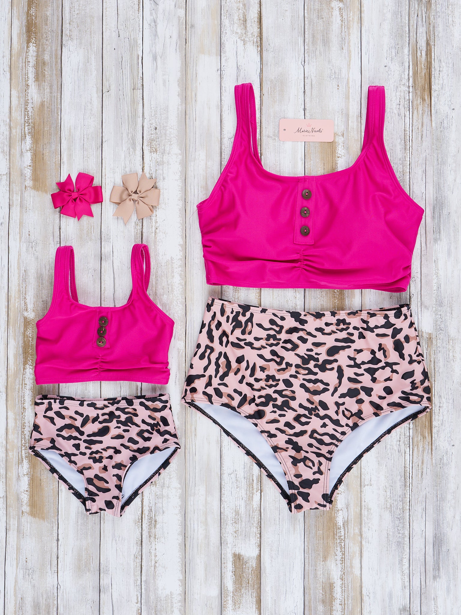 Mom & Me Magenta & Leopard Swimsuit