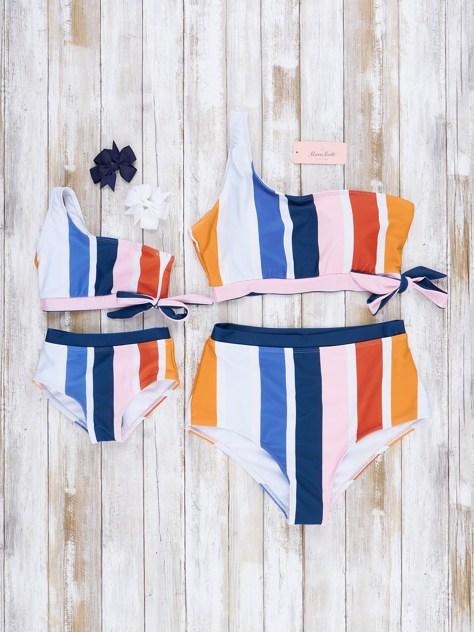 Mom & Me One Shoulder Mod Stripes Swimsuit