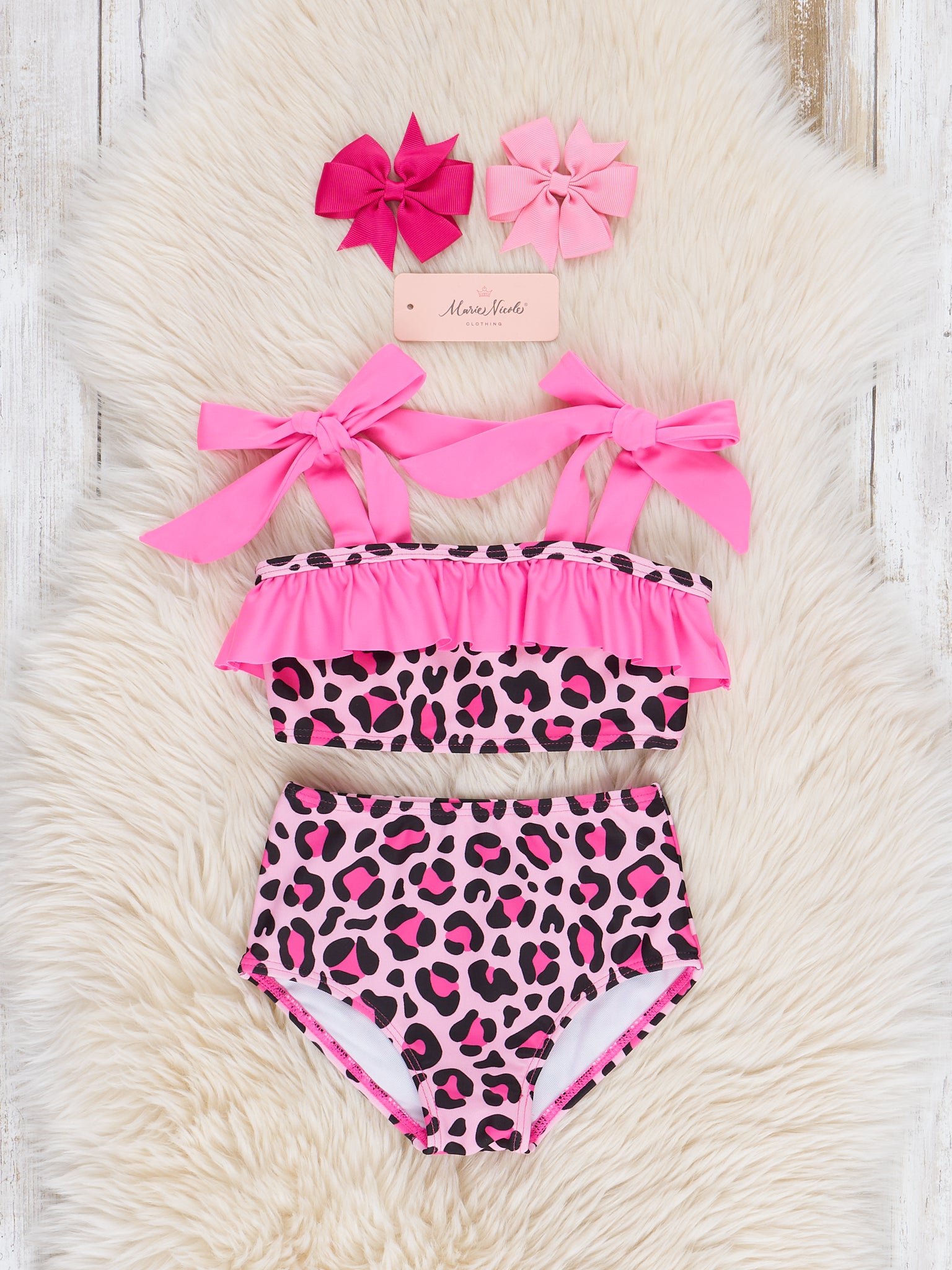Hot Leopard Tie Ruffle Two-Piece Swimsuit