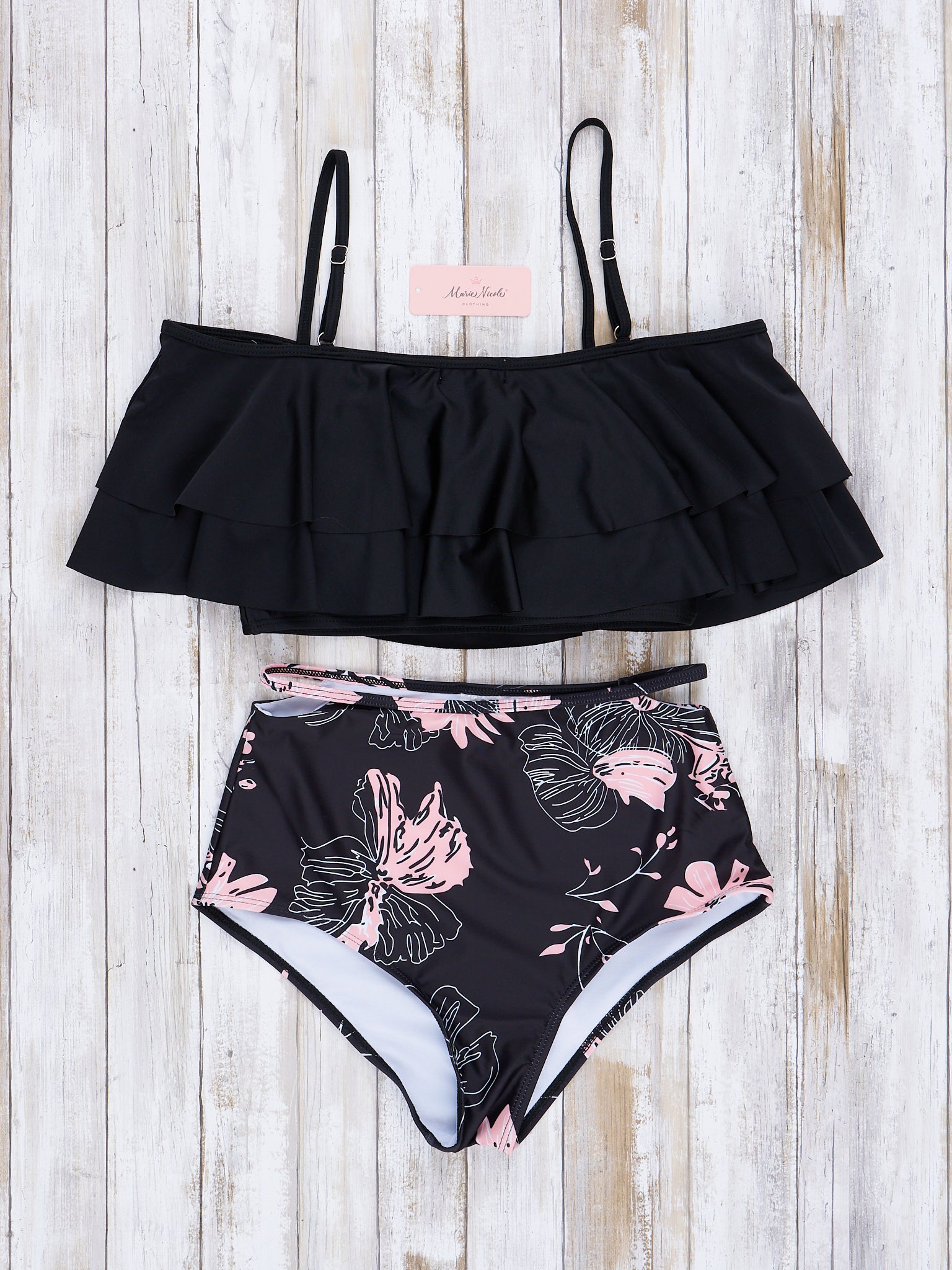 Delicate Floral Ruffle Peplum Swimsuit