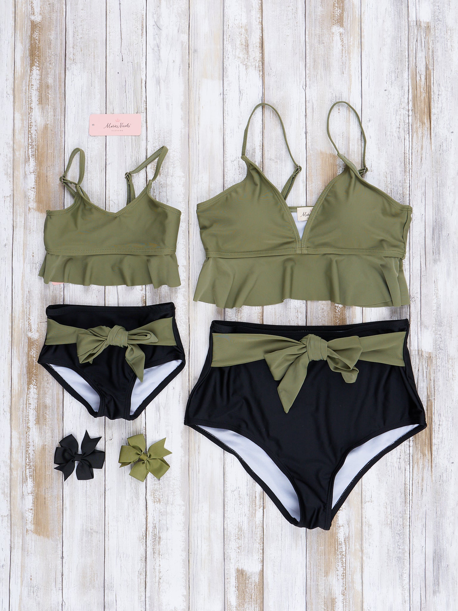 Mom & Me Olive Tie Waist Swimsuit