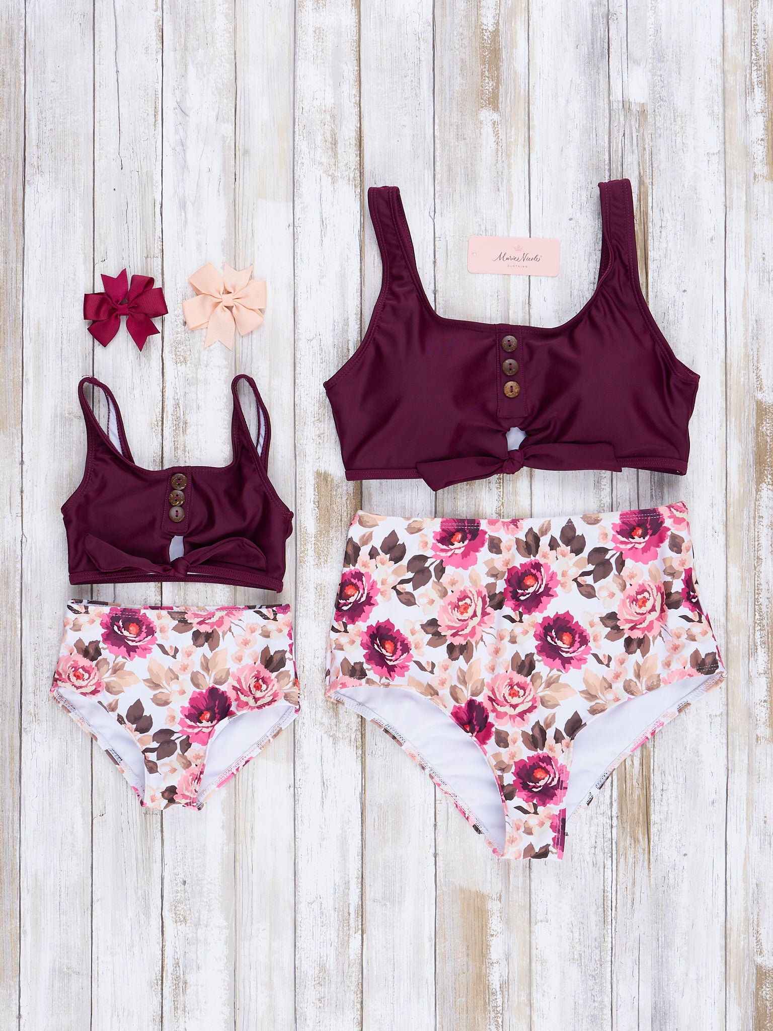 Mom & Me Burgundy Florals Swimsuit