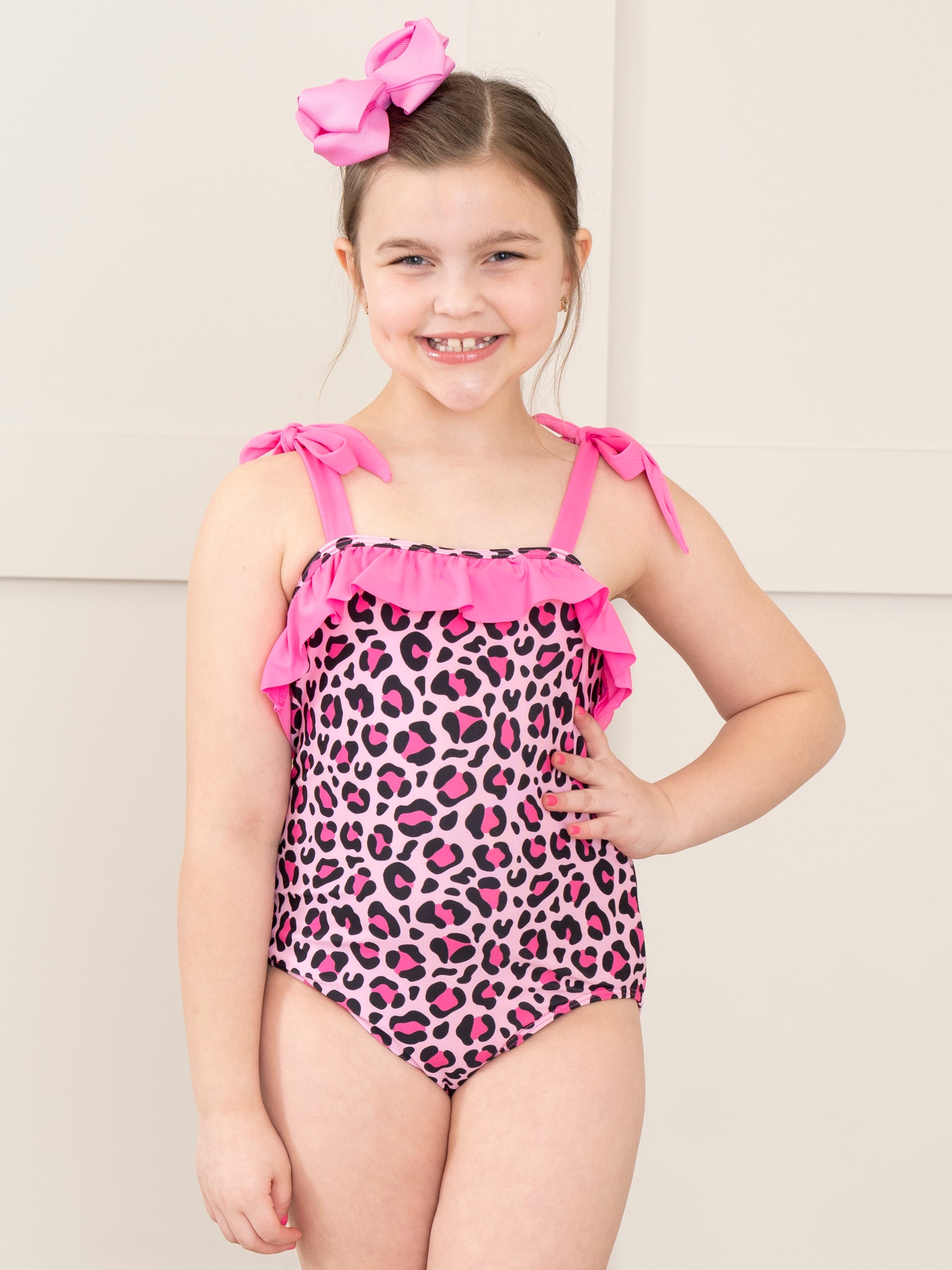 Hot Leopard Tie Ruffle Swimsuit