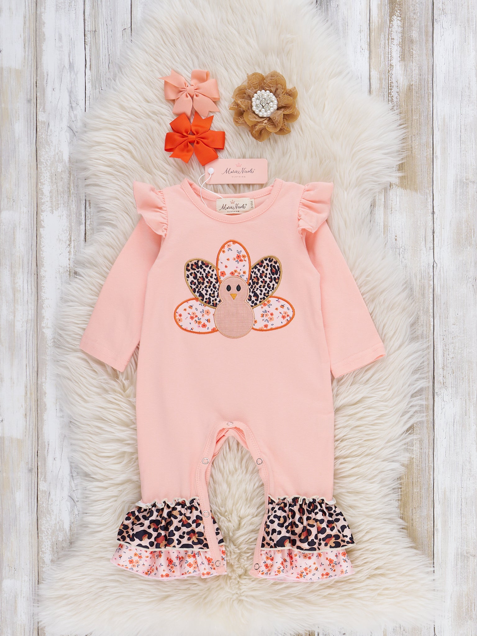 Orange & Brown Embroidered Turkey Ruffle Romper