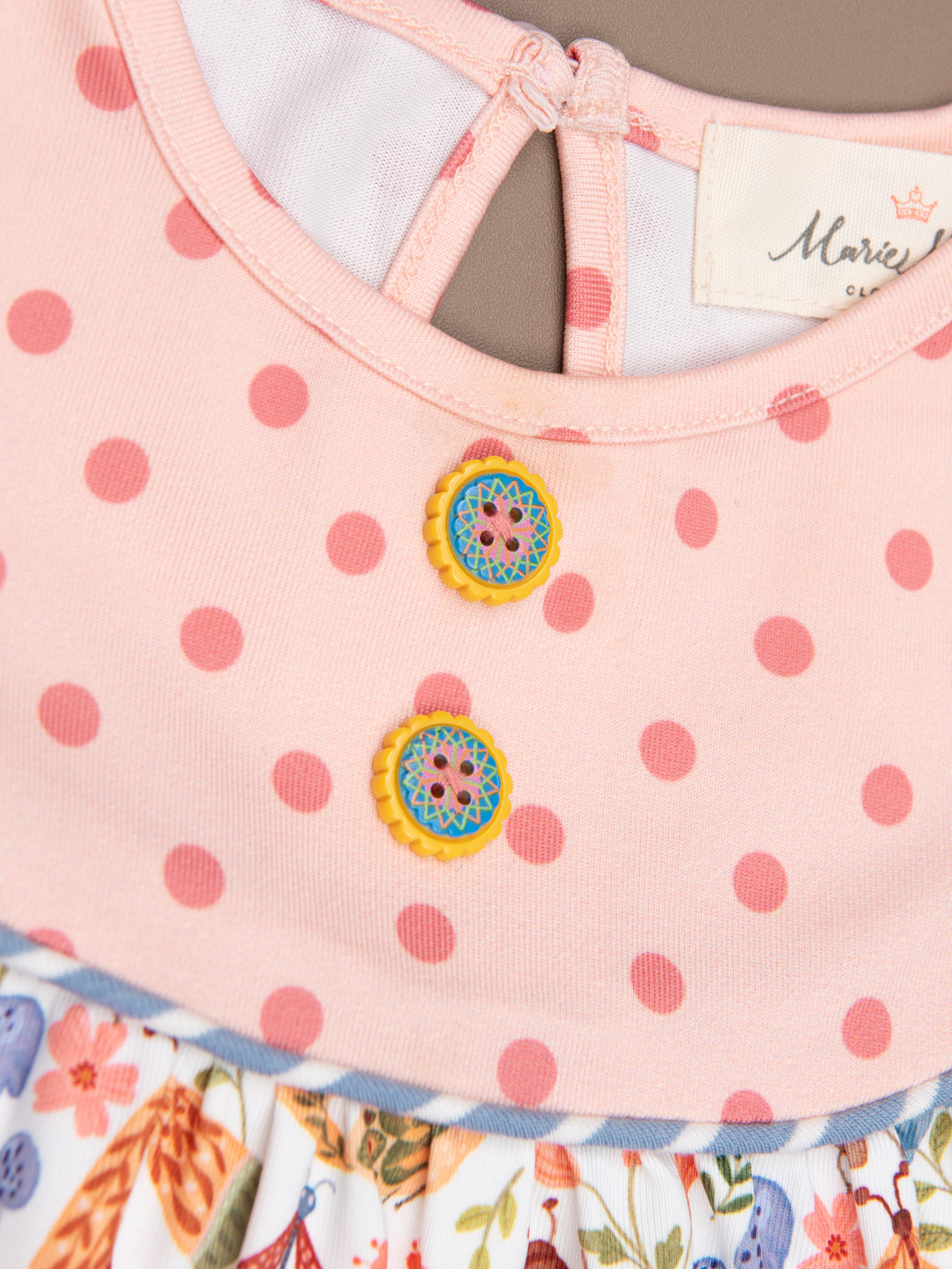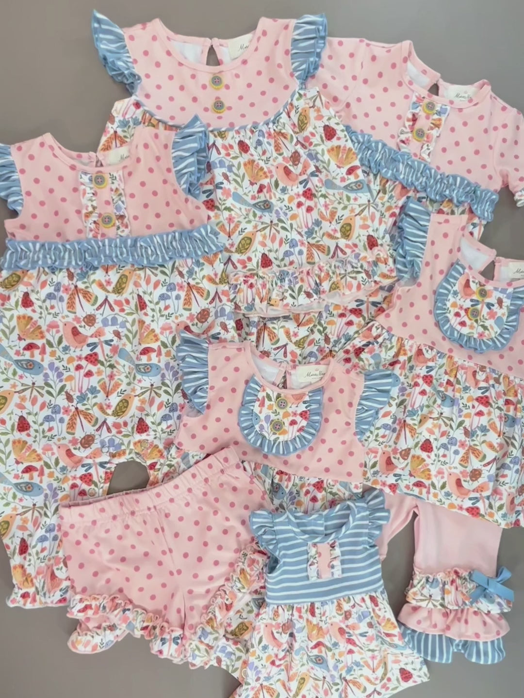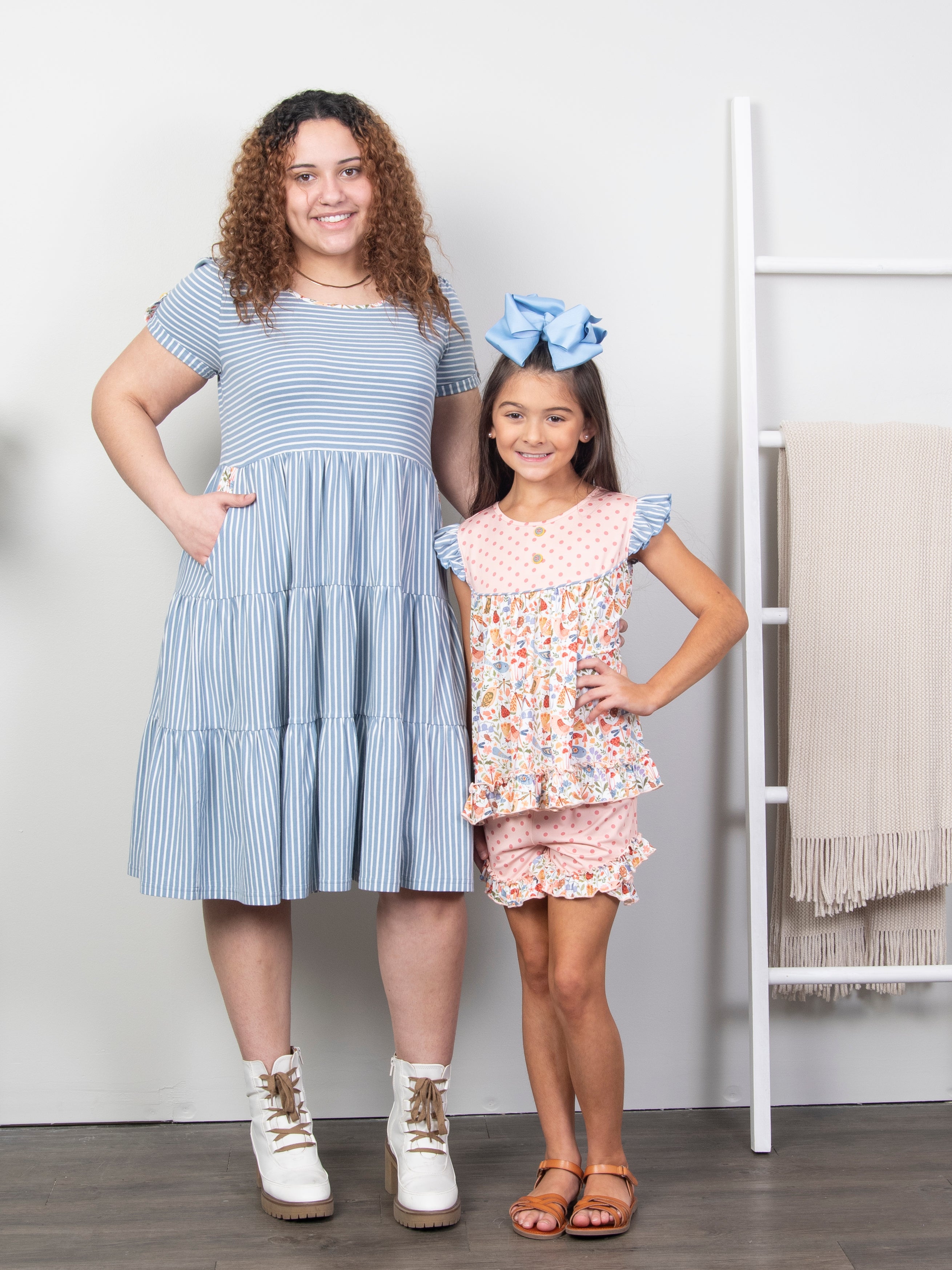 Springtime is just around the corner & this MNC exclusive collection is a MUST-HAVE this season! This high-quality collection has the softest material & is made to grow with your little one! This tunic features our Tennessee Garden print, polka dots, striped ruffle trim, detailed decorative buttons, & a keyhole at the nape of the neck.