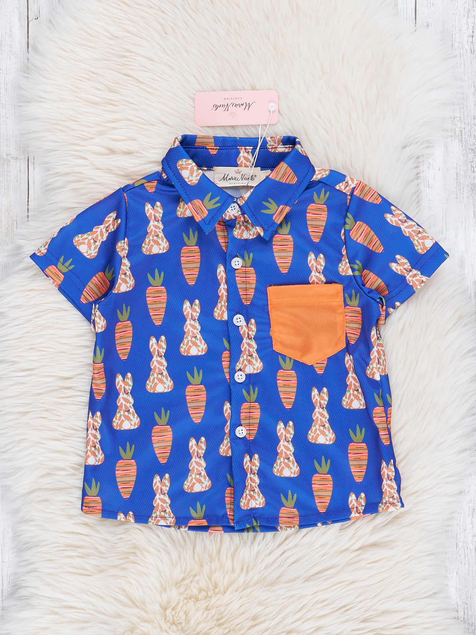 Blue & Orange Rabbit Food Pocket Shirt
