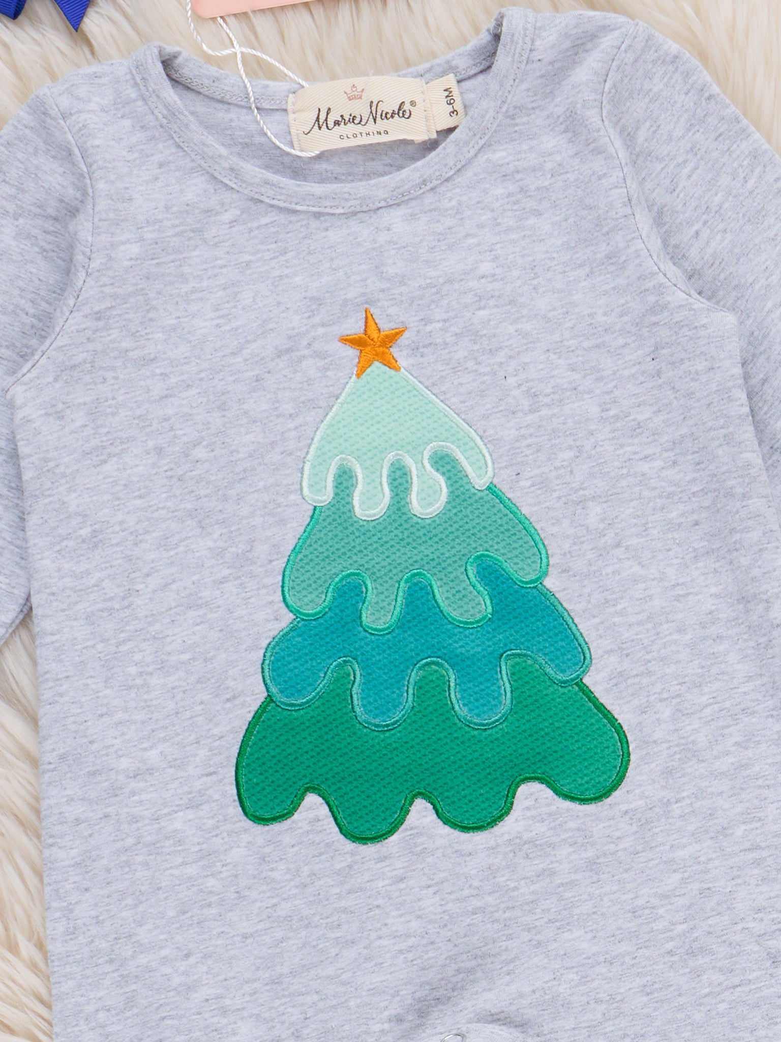 The Christmas Cheer Tree Embroidered Romper is a festive one-piece with a charming embroidered tree on the bodice, ruffle-trimmed legs, and playful bow details. Designed by Marie Nicole Clothing for ultimate comfort and style, this romper is a delightful choice for special holiday gatherings, festive photos, and capturing magical seasonal memories.