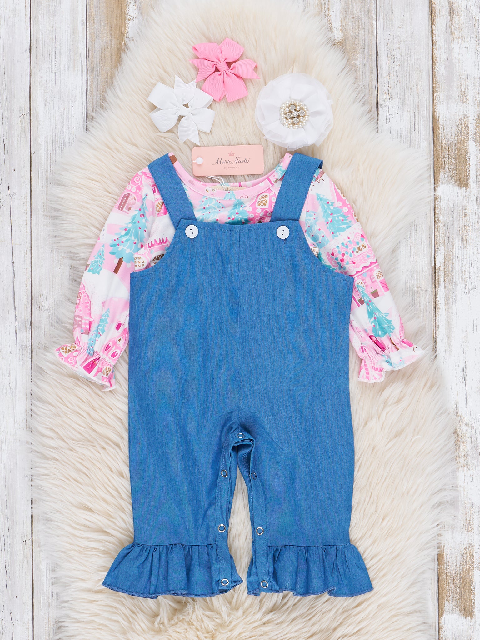 Christmas Trees Embroidered Corduroy Skirtall Outfit
