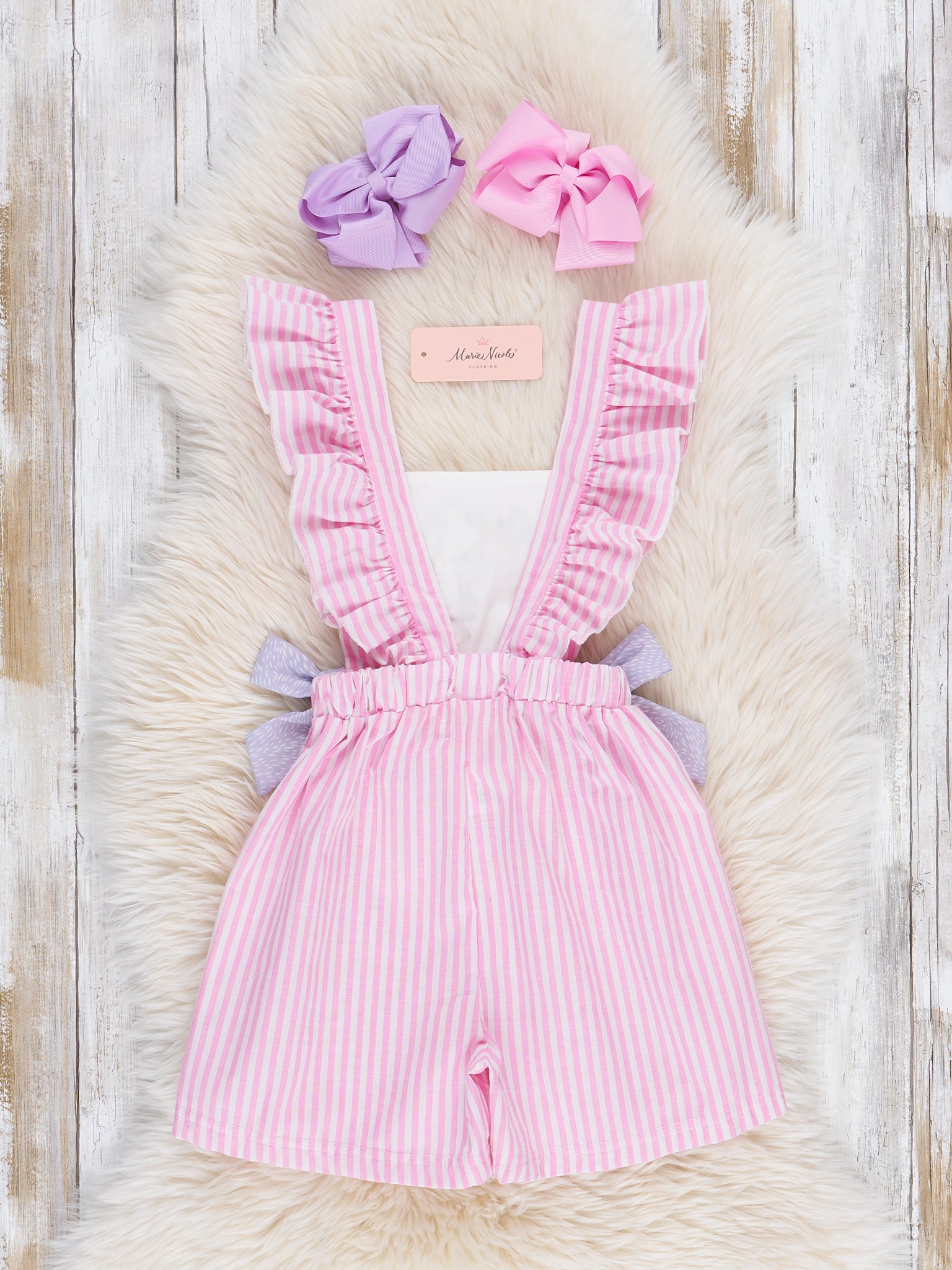 Pink Pinstriped Bunny Ruffle Jumpsuit