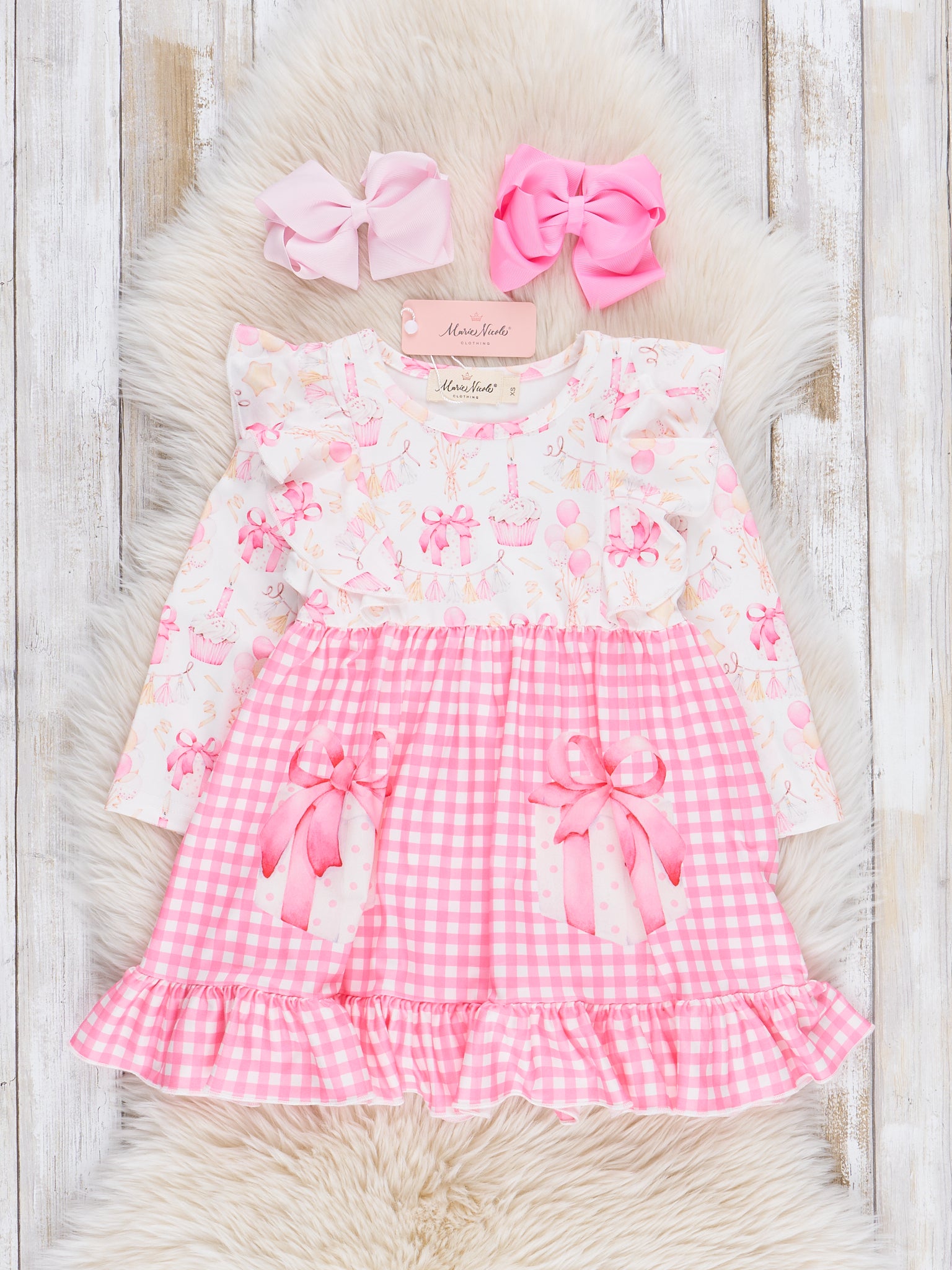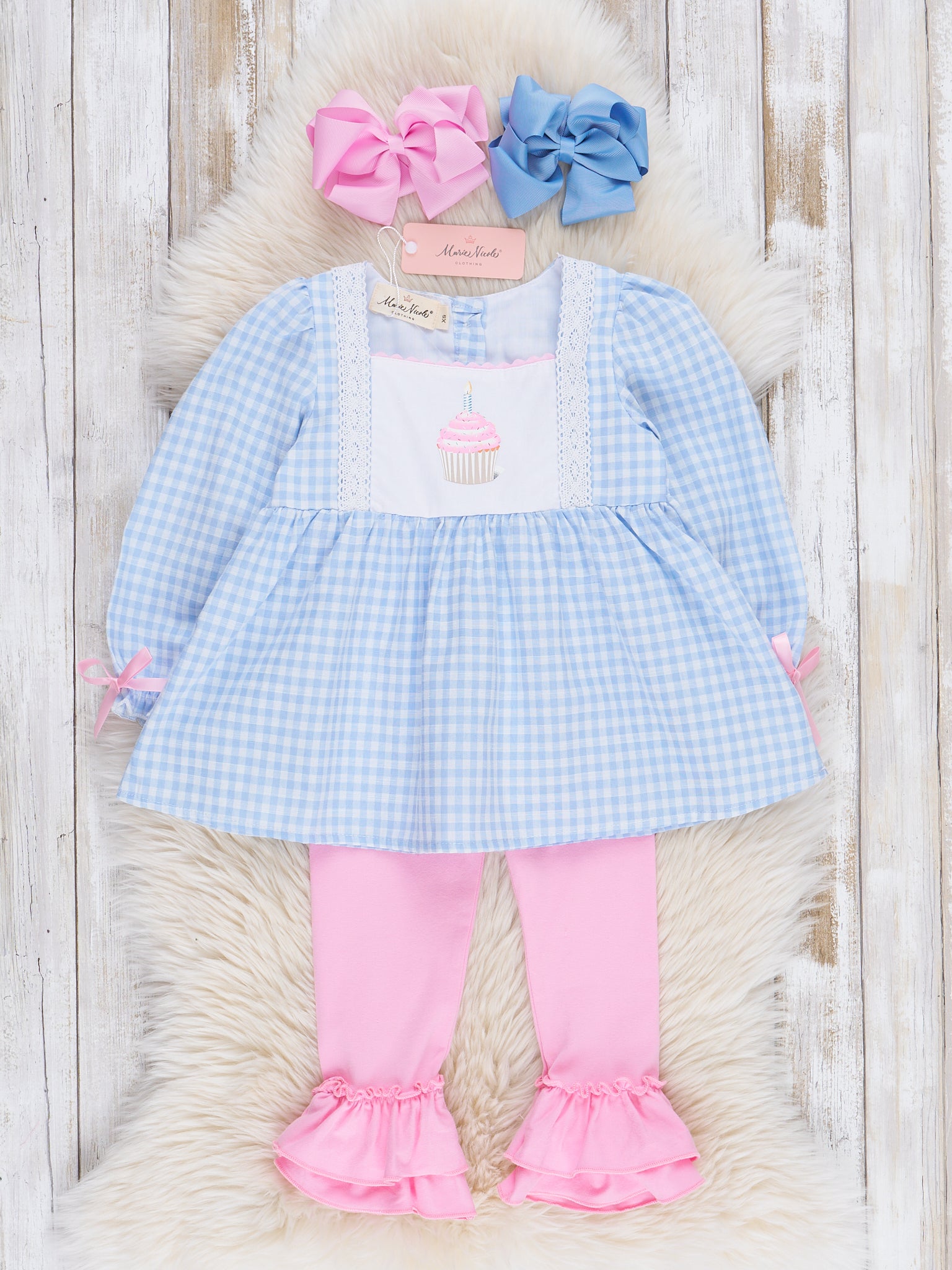 Blue Gingham Birthday Cupcake Ruffle Outfit