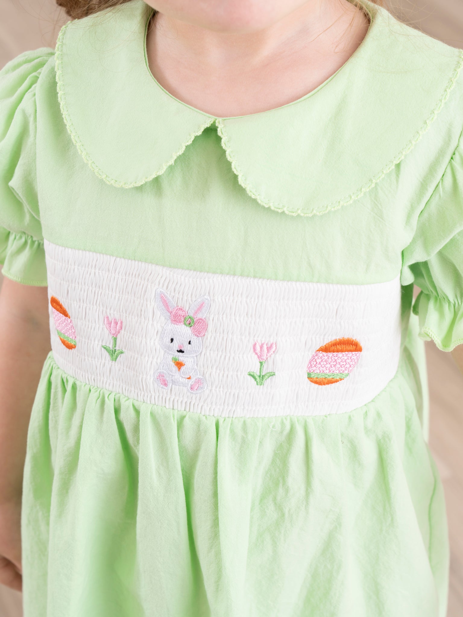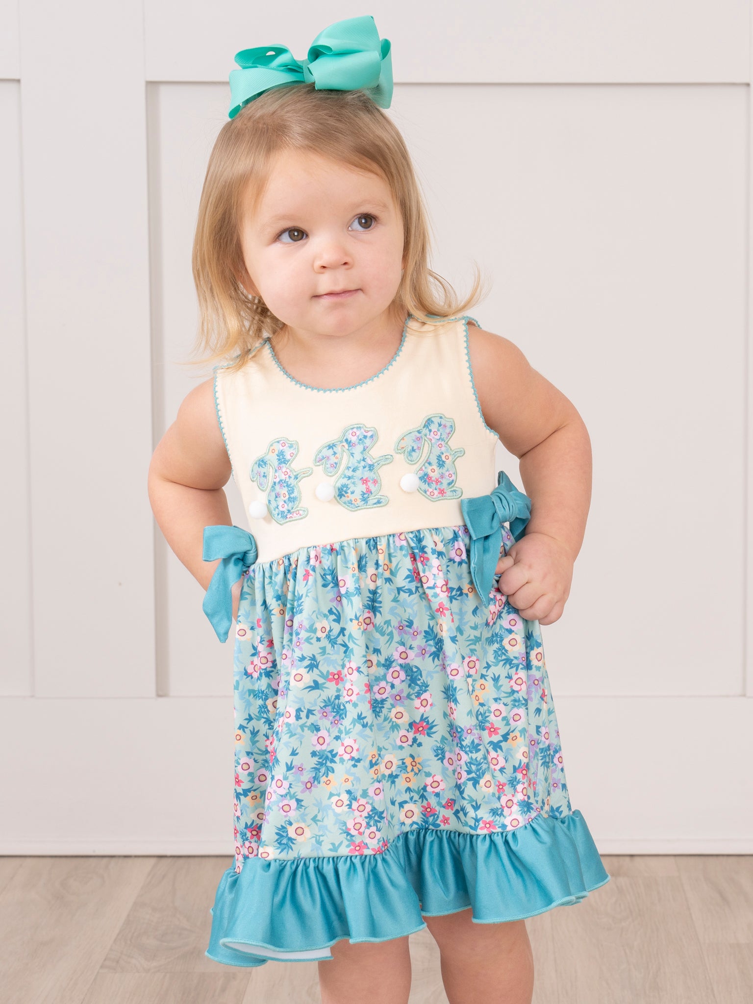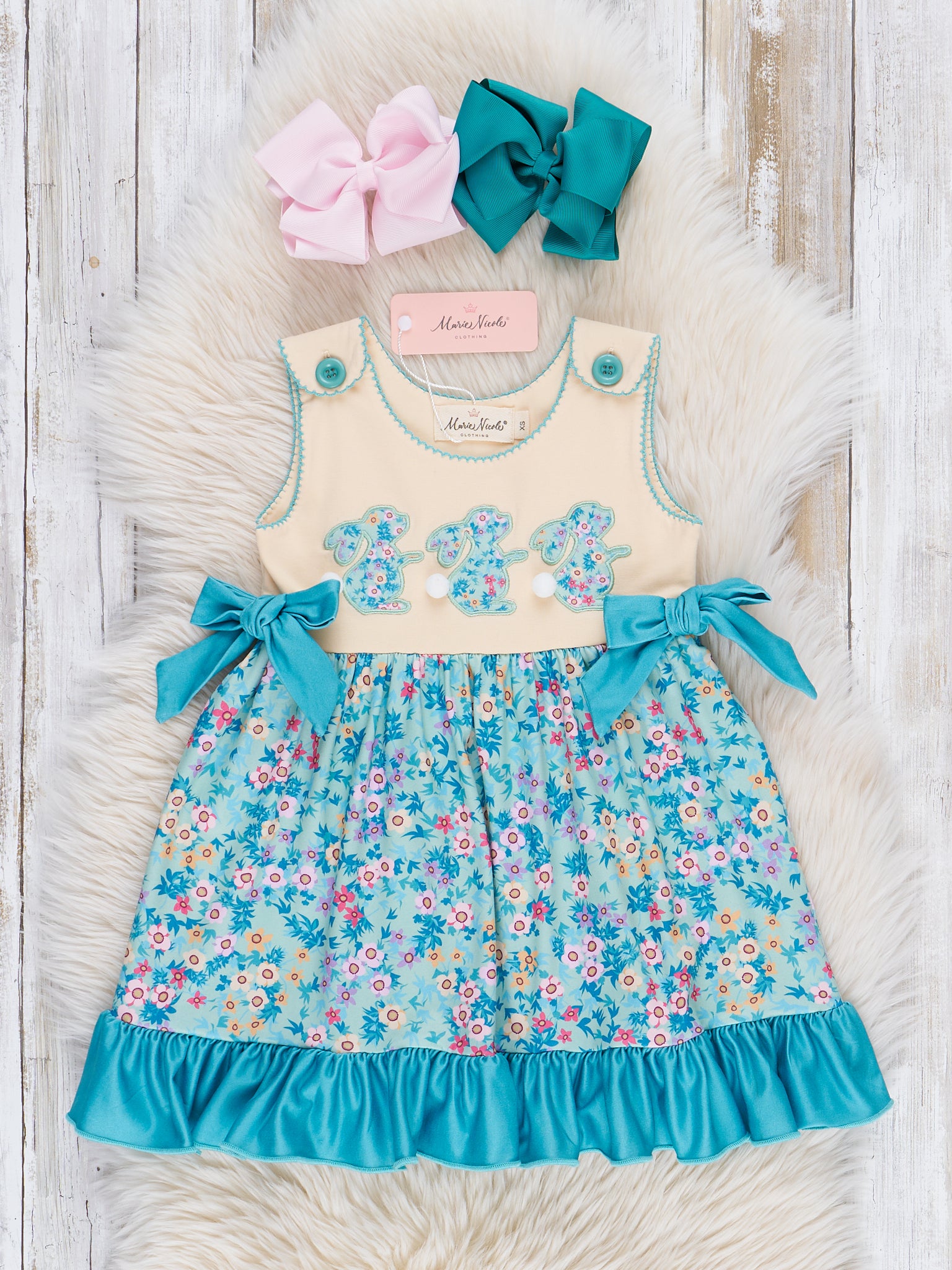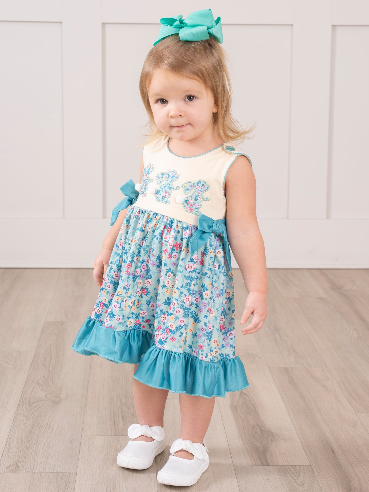 Turquoise Embroidered Floral Bunny Ruffle Dress