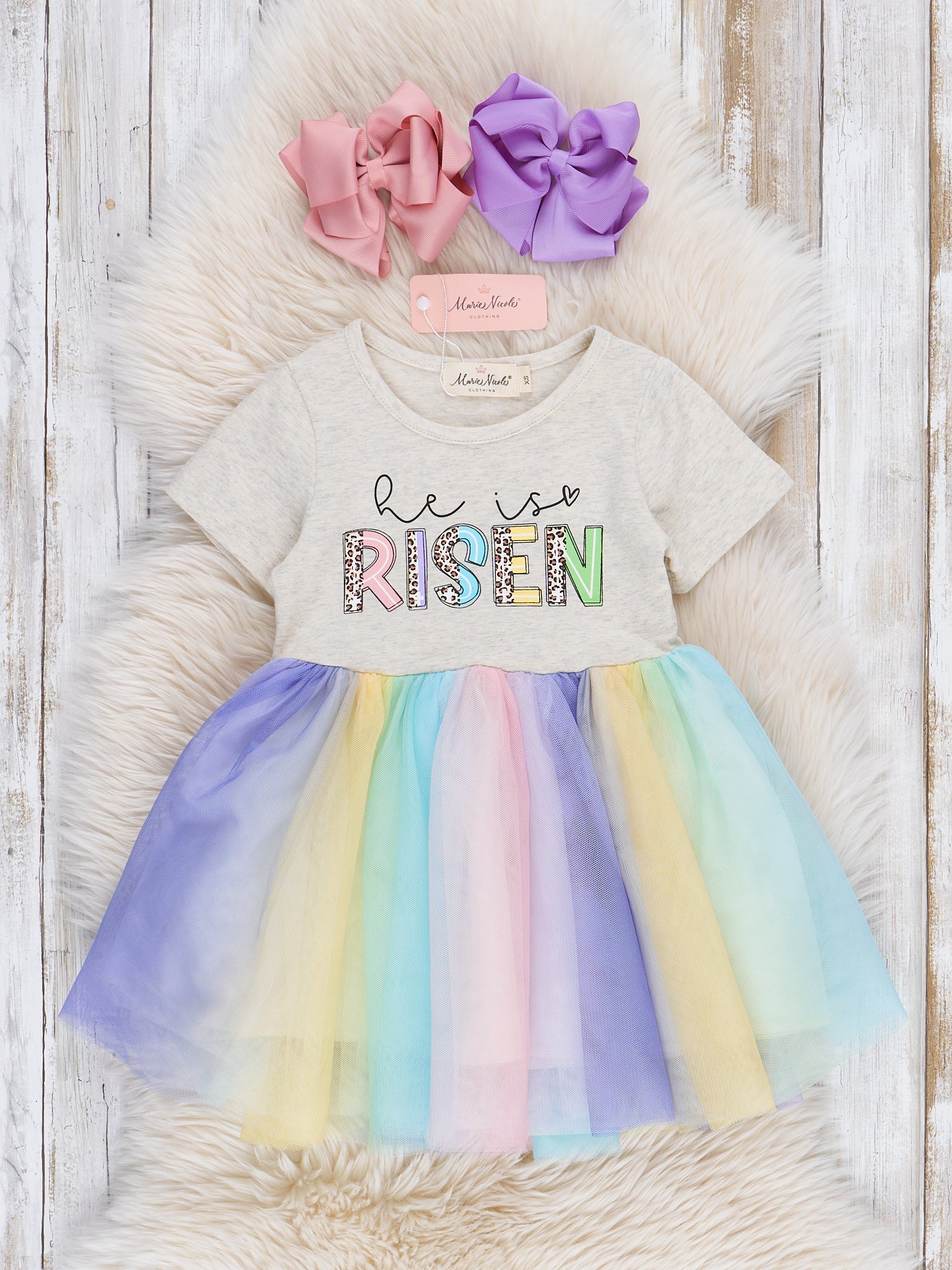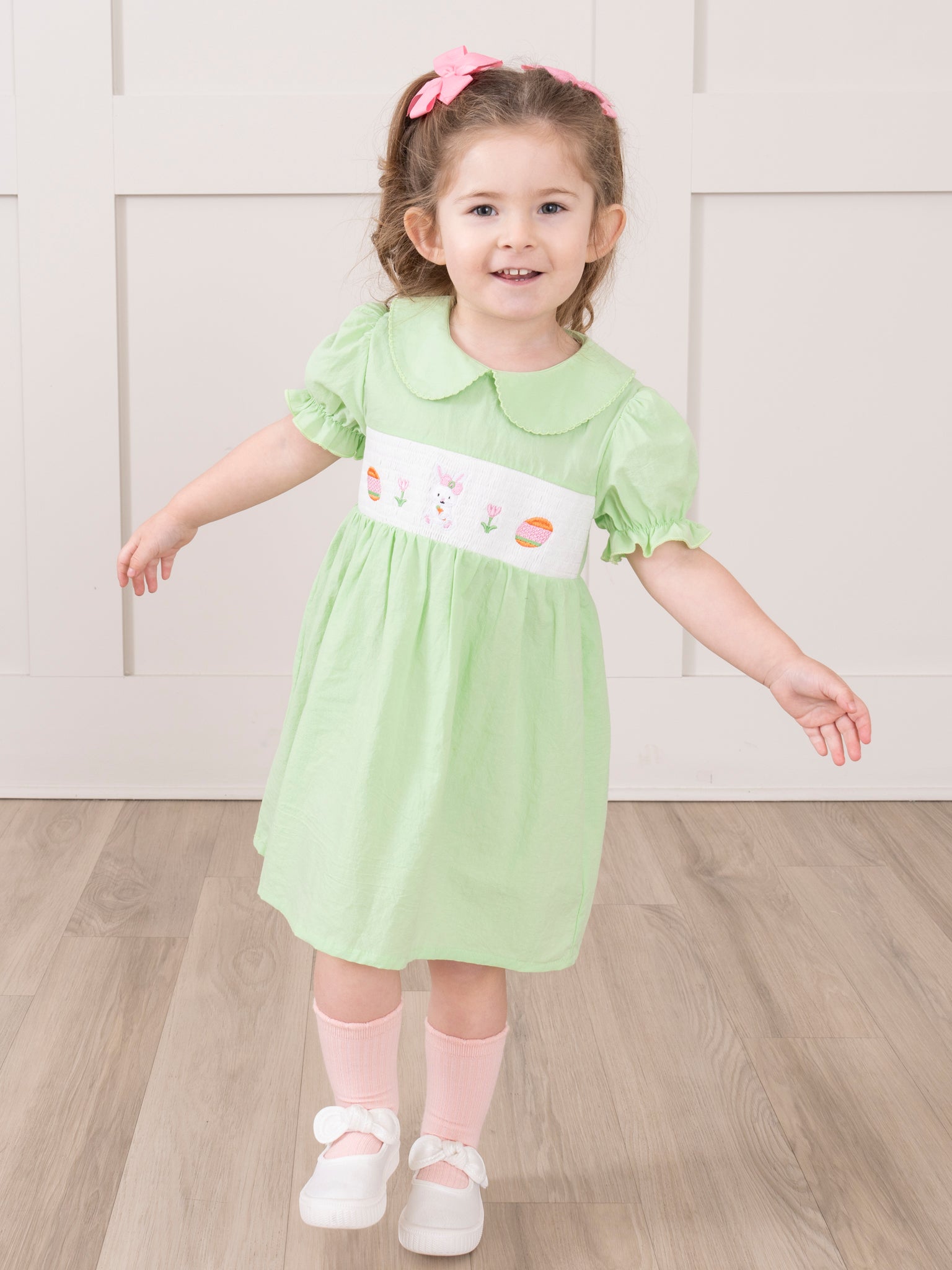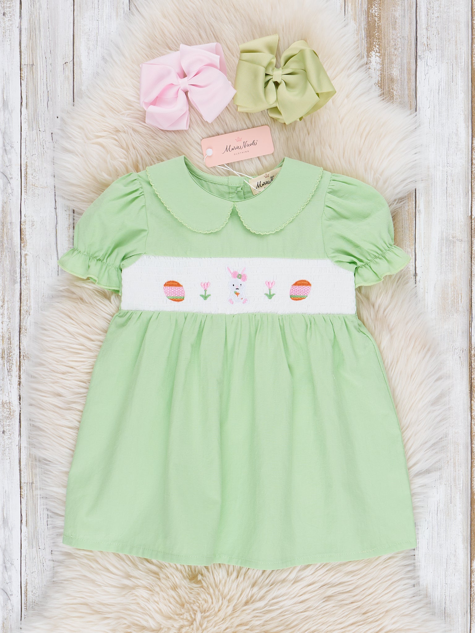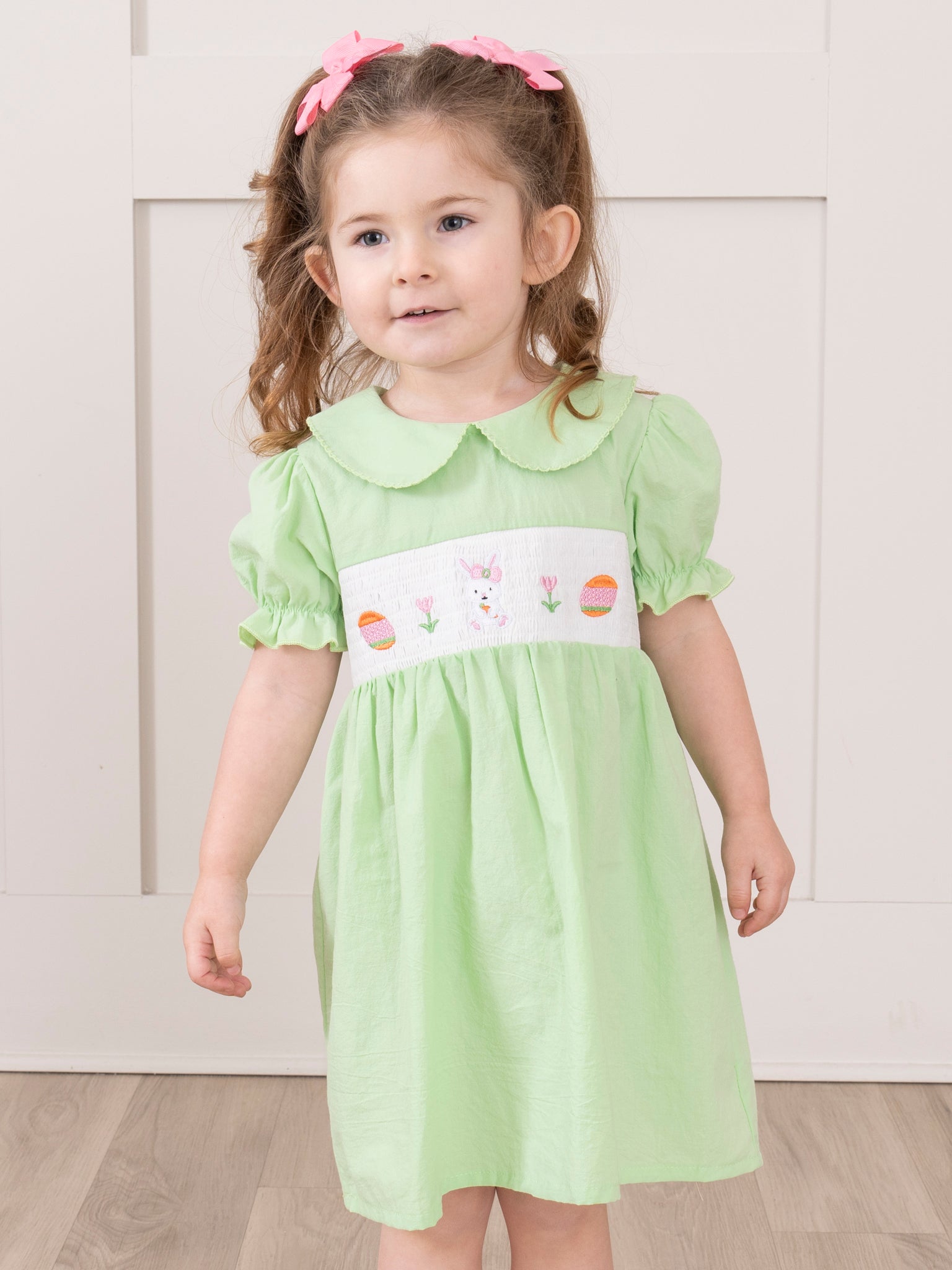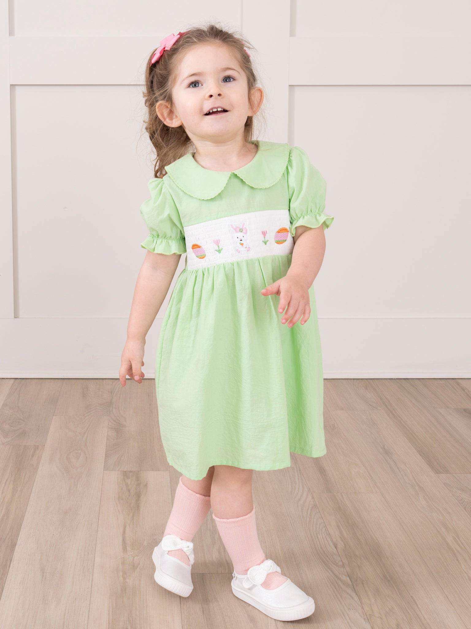 Turquoise Embroidered Floral Bunny Ruffle Dress