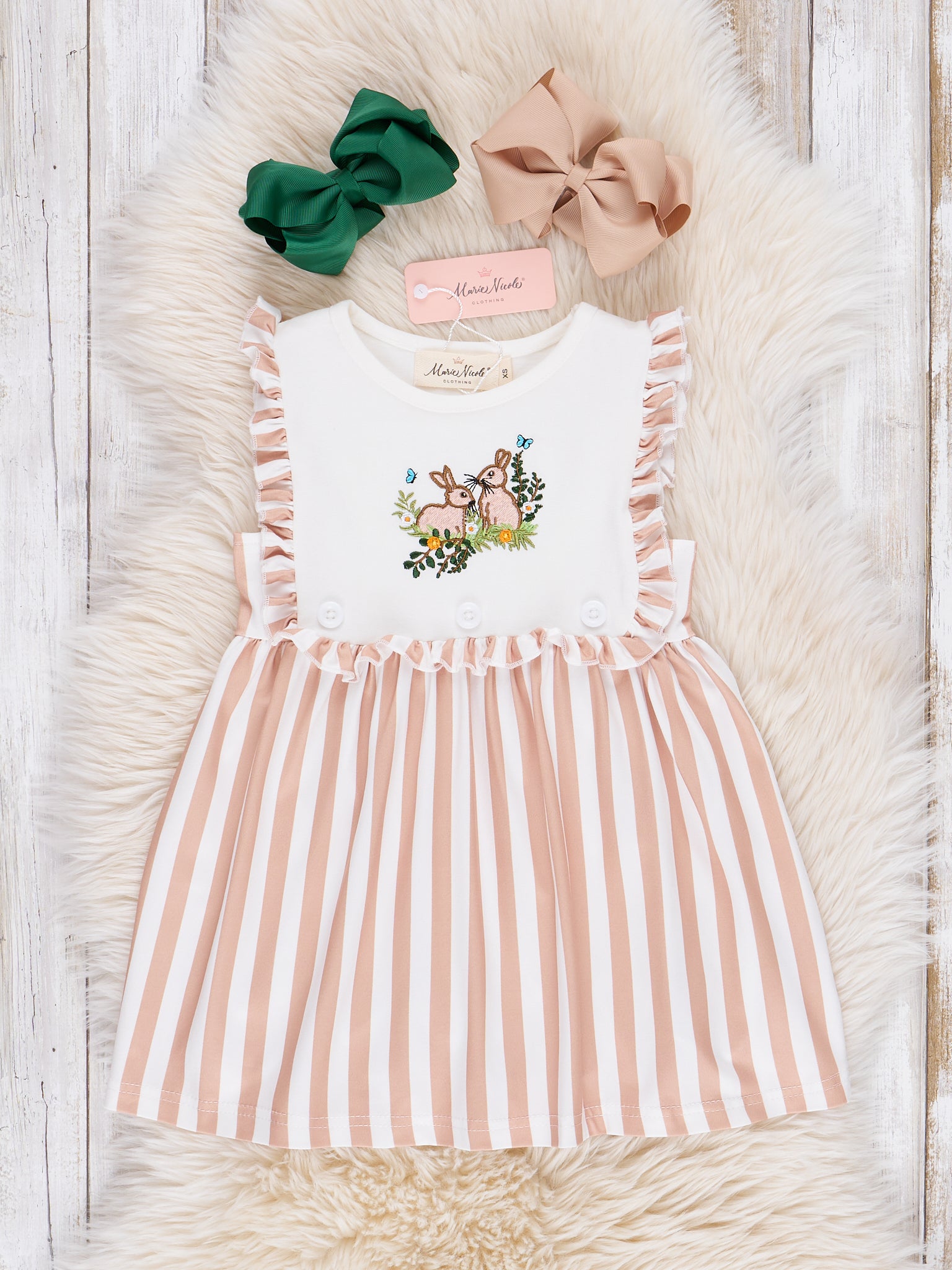 Blue & Red Stripes Embroidered Hearts Ruffle Dress
