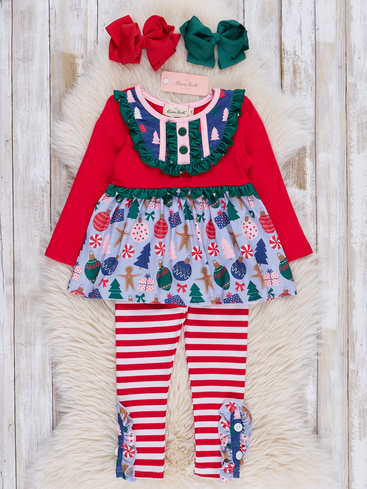 Red & Light Blue Holiday Joy Ruffle Outfit