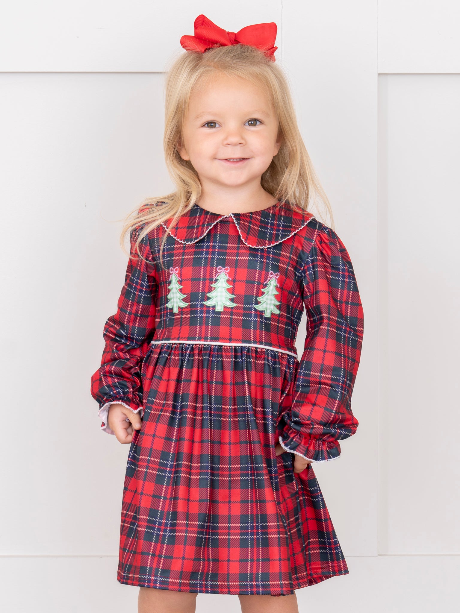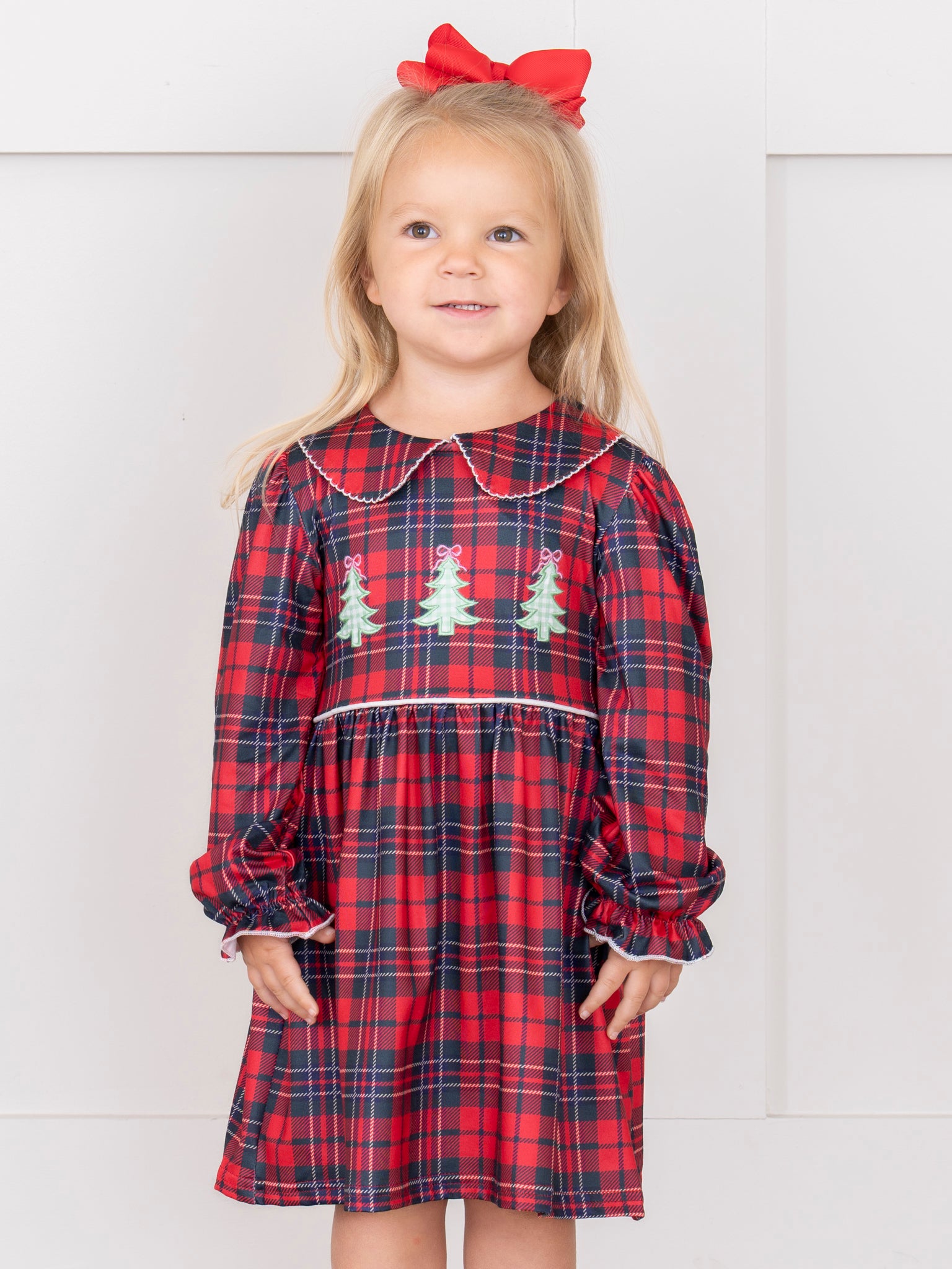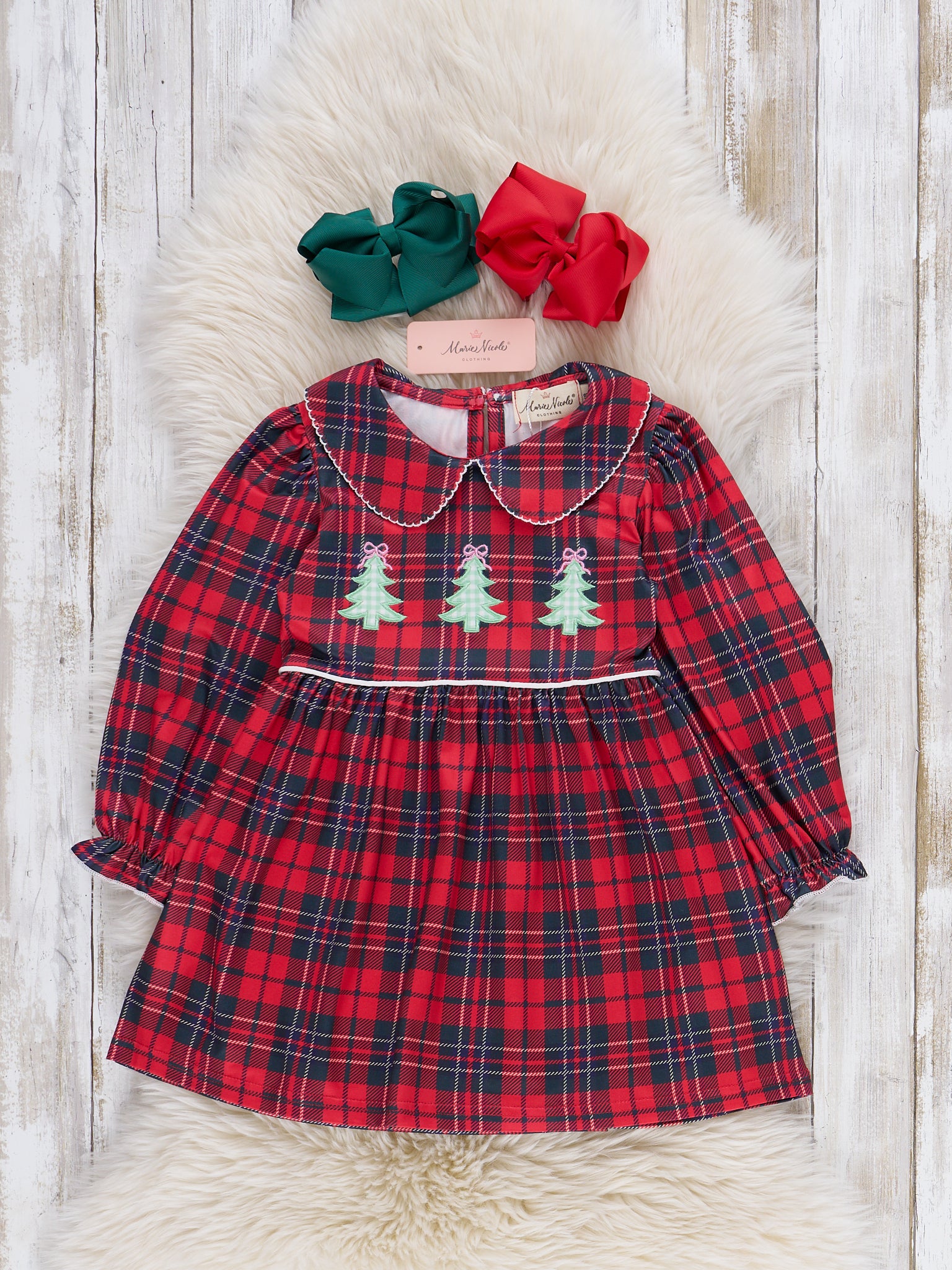 The Christmas Tree Lumberjack Embroidered Dress is ready for the holidays! This Marie Nicole Clothing piece has a flannel-style look, featuring an embroidered tree. Made with soft, stretchy fabric, this dress is perfect to wear for tree buying or decorating!