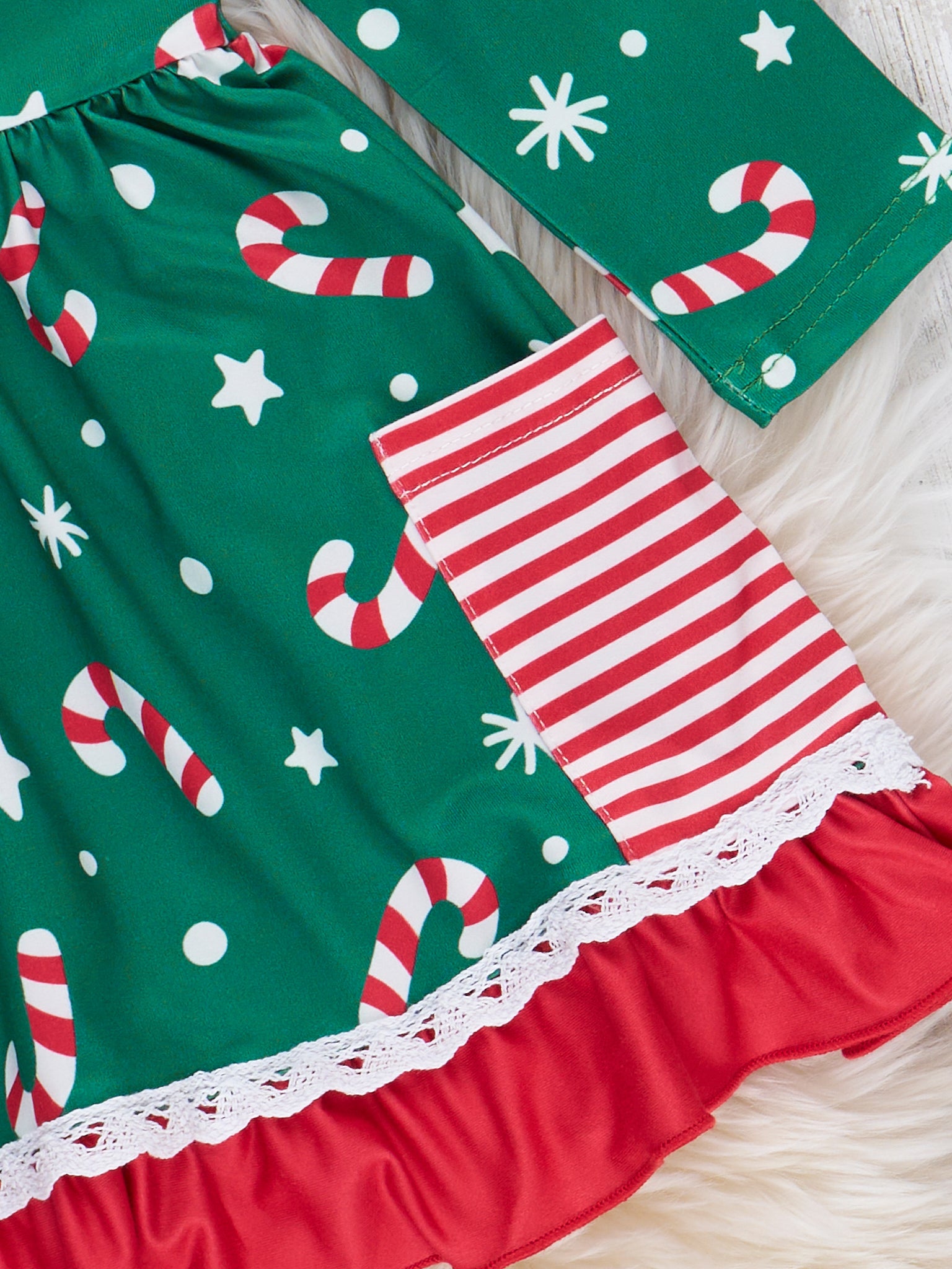 Embroidered Plaid Christmas Tree Lace Trim Outfit