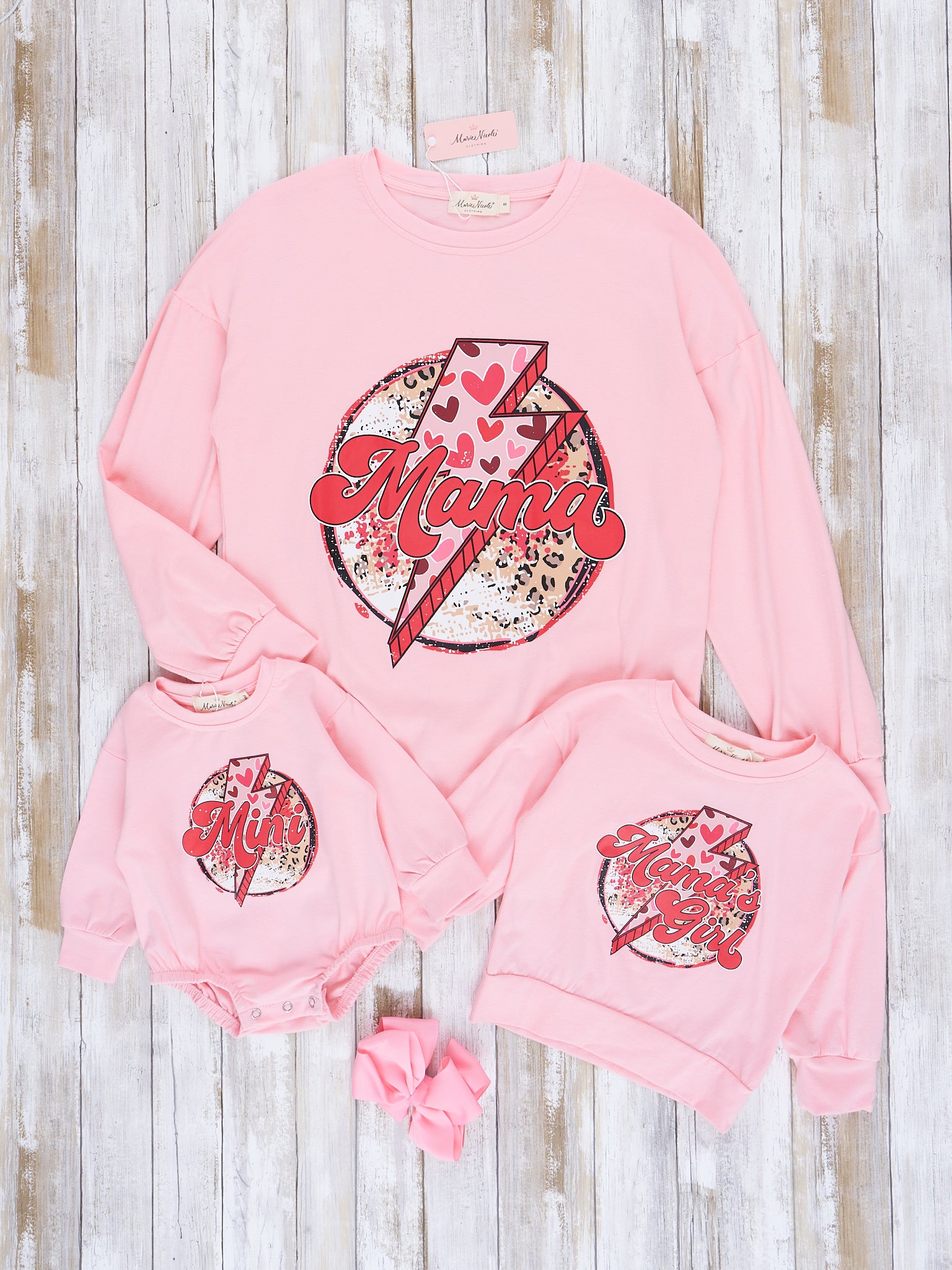 Mom & Me Pink Mama/Mini Lightning Hearts Crew Neck